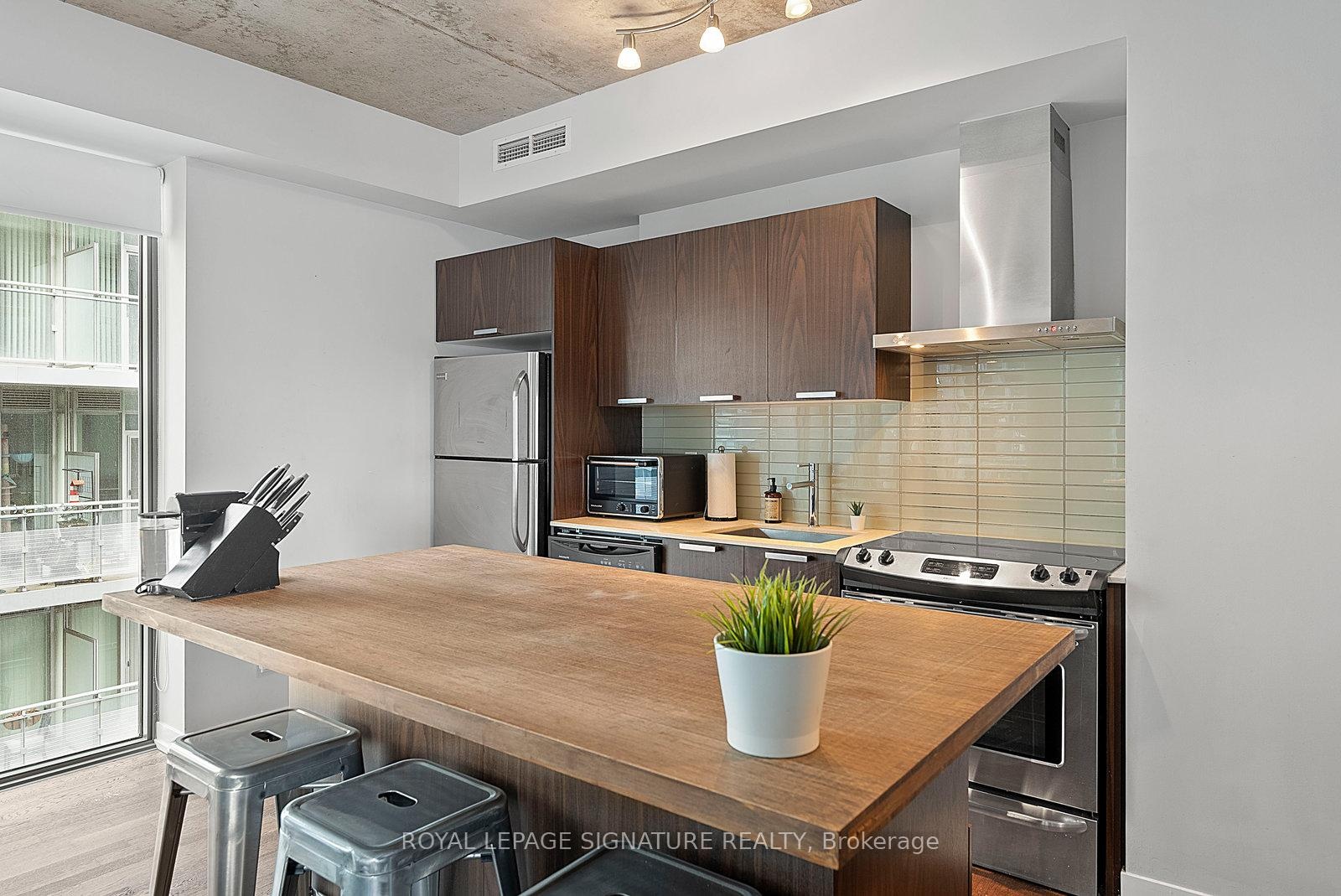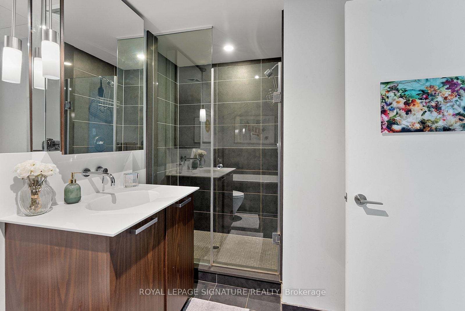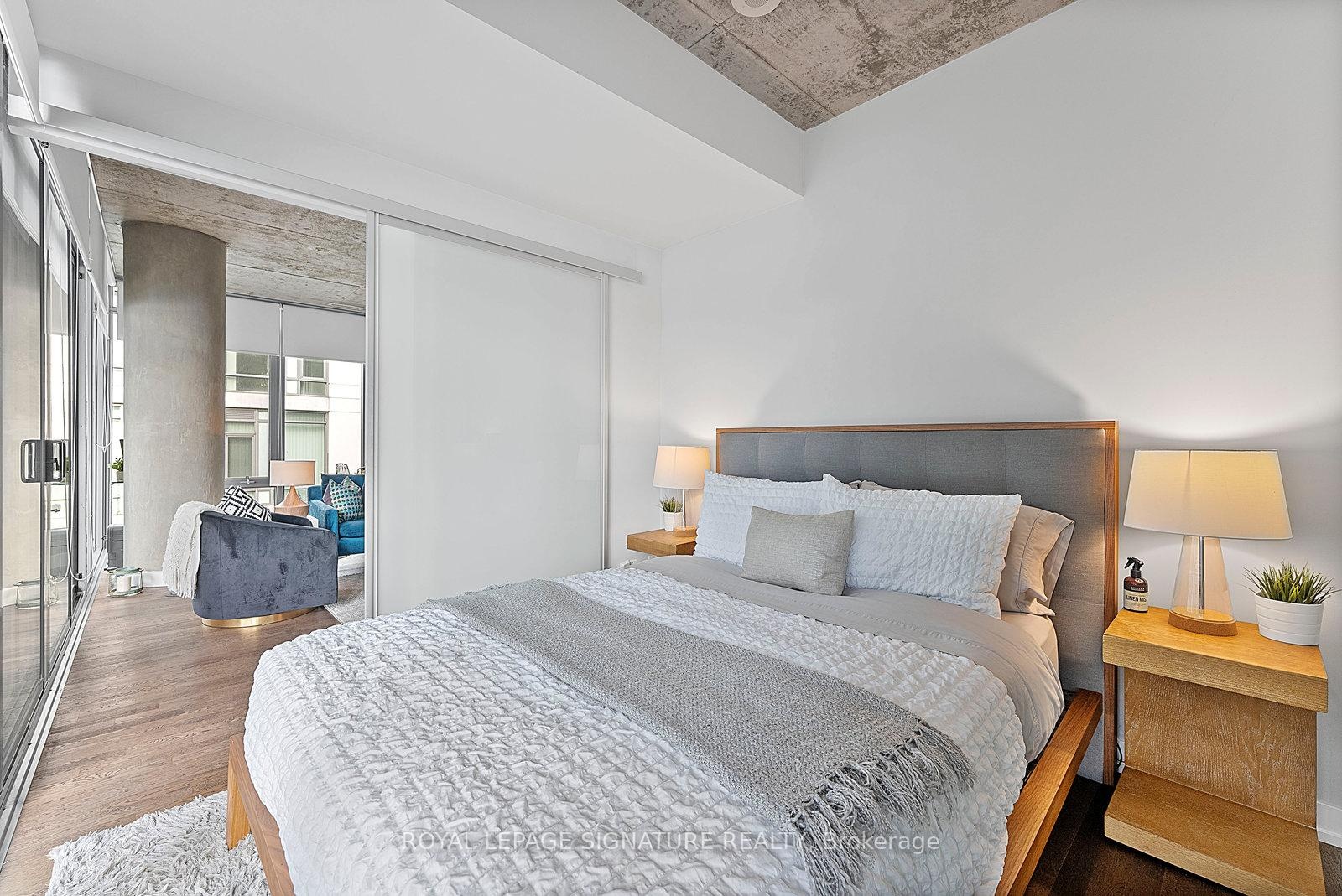 Executive fully furnished rental soft loft in the heart of King West. Just shy of 700 sq.ft.this 1 bedroom corner unit has a large open concept living/dining/kitchen area with plenty of room to include a home office. Well appointed with just about everything you could need including a truly fully equipped kitchen, art, accessories, linens, bedding, household appliances, etc. Includes utilities and reliable Beanfield 1 Gbps internet. Engineered woodflooring throughout. The bathroom has a separate soaker tub and shower, making it great for couples. Balcony lined with high grade artificial grass for comfort. BBQs permitted. This is not an average furnished rental. See it in person to truly appreciate it! Ideal location near the restaurants, cafes and nightlife of King West and a short walk to Queen West's shopping district. Easy T.T.C. access with 2 transit lines. Walking distance to the Financial District, sporting venues, Lake Ontario, parks, library, grocery stores and much more.
