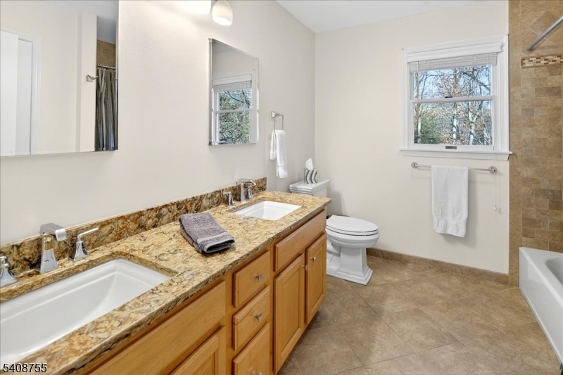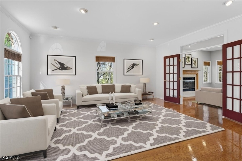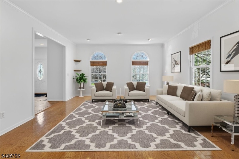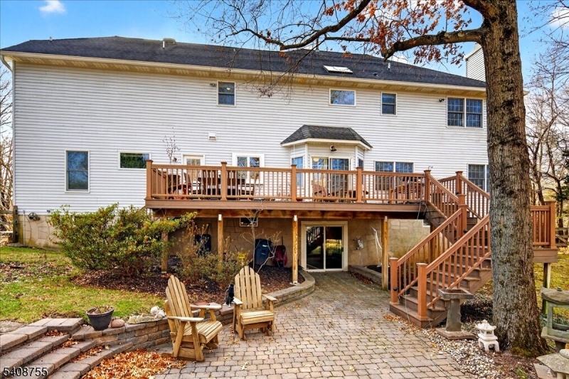 Stately five bedroom brick colonial with stunning inground pool, deck, pond and lush gardens.