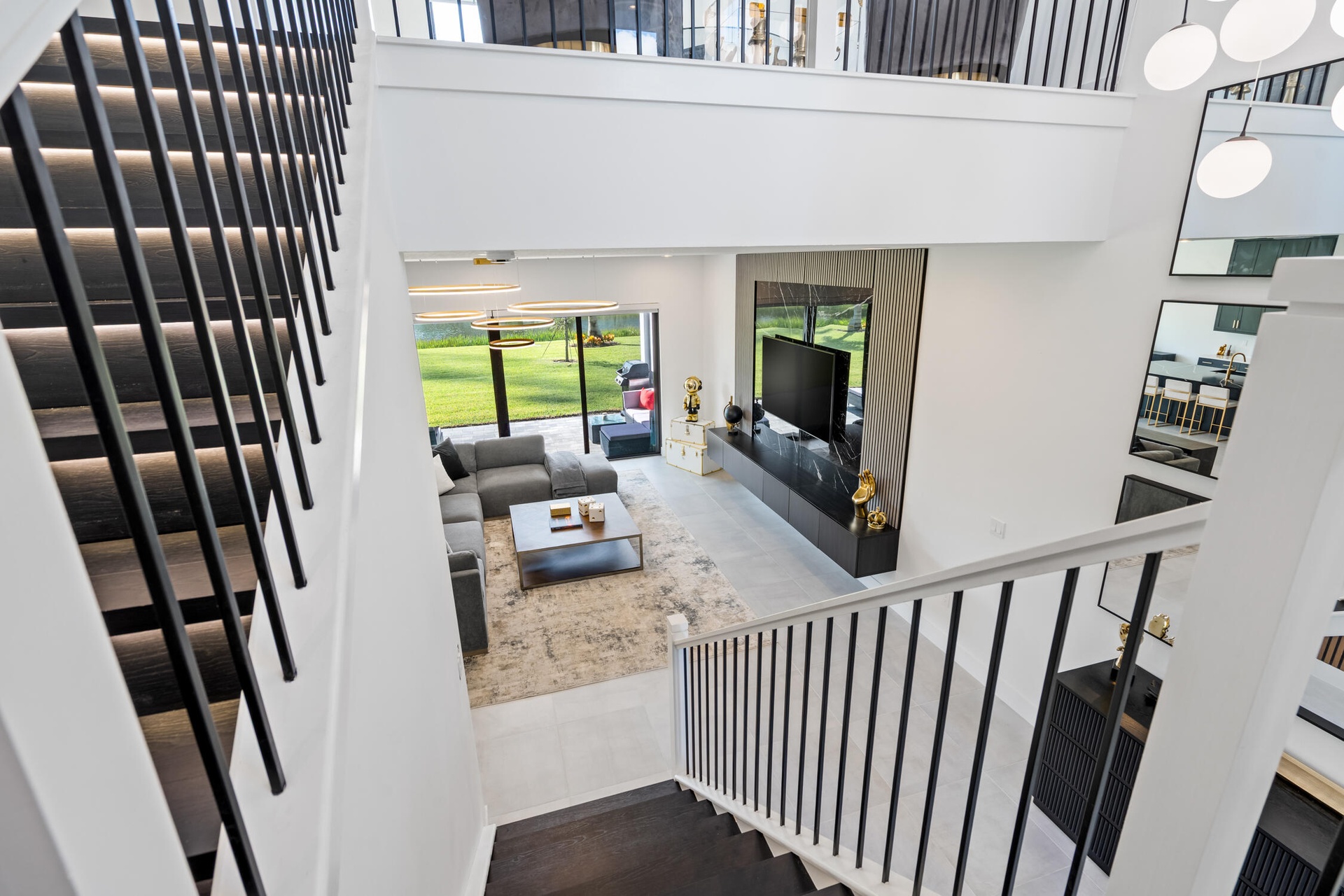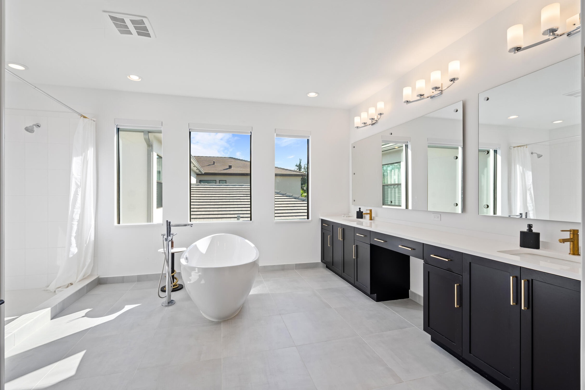Upstairs, the versatile loft provides the perfect space for a media room, office, or lounge. Each of the five bedrooms includes luxurious bathrooms with elevated finishes inclusive of a rare black laminate flooring.