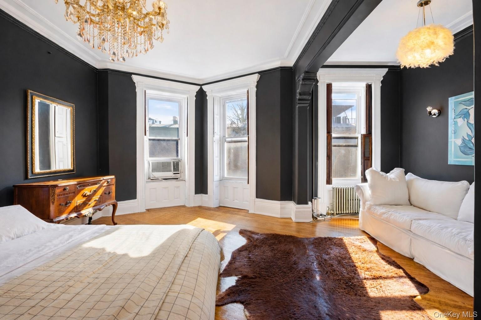 Exceptional 1899 Brownstone two-family on pristine tree-lined block in the heart of Stuyvesant Heights Historic District. This meticulously maintained 3,648 SF brownstone offers incredible versatility and income potential with 4 spacious bedrooms, easily expandable to 6-7 bedrooms for growing families or maximizing rental income. Fully renovated chef's kitchen features granite countertops, stainless steel appliances, custom cabinetry, and subway tile backsplash. Original architectural details lovingly preserved throughout including carved lintels, ornate cornices, soaring ceilings, rich hardwood floors, and intricate period moldings. Each unit features generous room sizes with abundant natural light and updated systems. Huge finished basement offers endless possibilities - additional living space, home gym, recreation room, storage, or professional office space. Private backyard garden sanctuary provides rare outdoor oasis perfect for al fresco dining, urban gardening, entertaining, or peaceful relaxation. Currently configured as two-family generating strong rental income, perfect for owner-occupants seeking mortgage offset or investors capitalizing on Bed-Stuy's surging market.