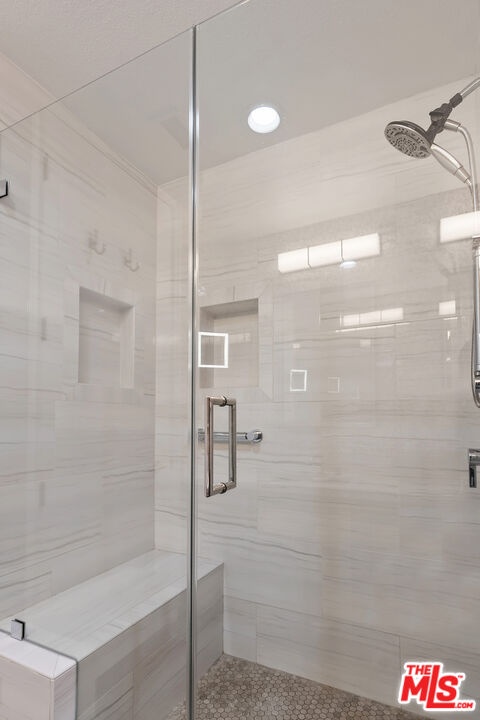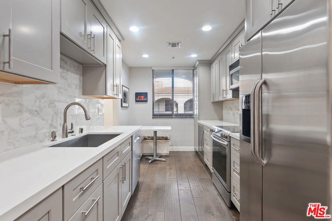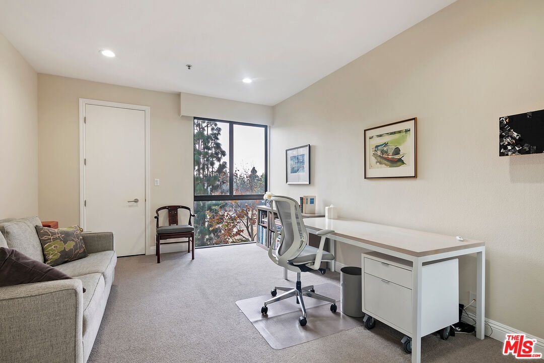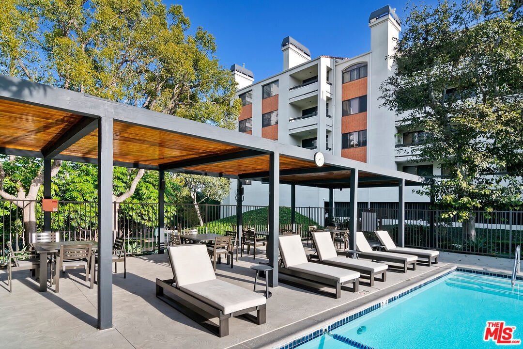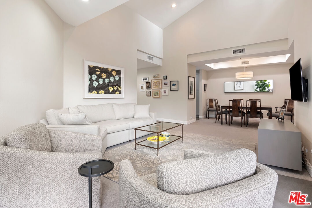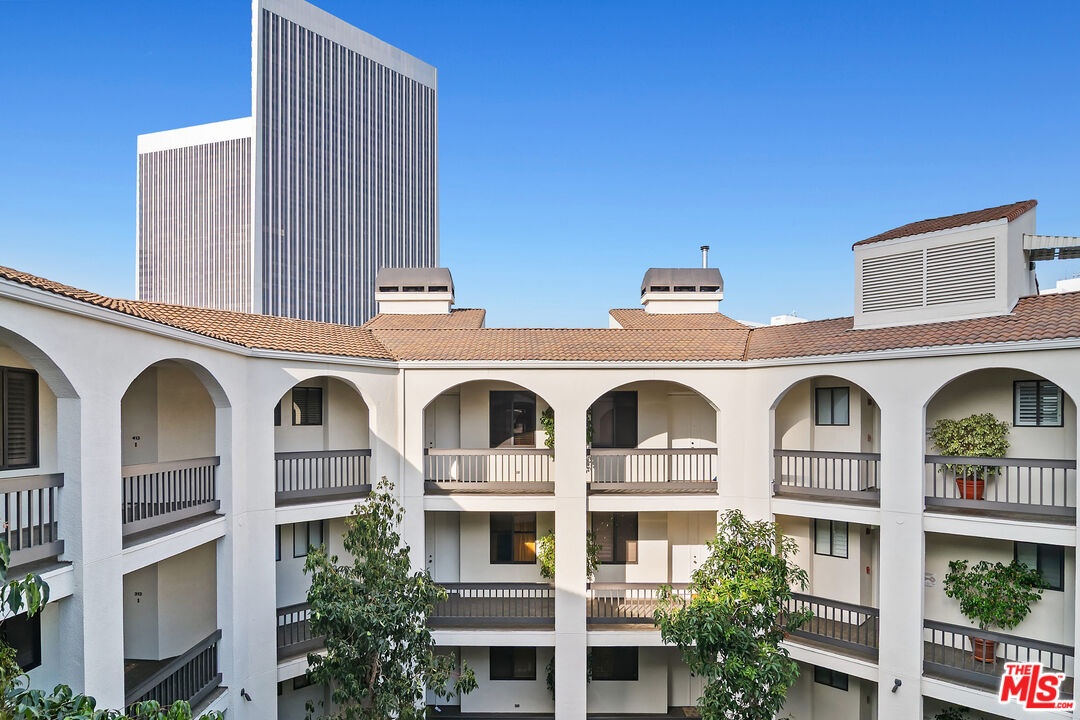 Looking for the perfect balance of comfort, luxury, architectural character, privacy, and natural light? Residence #411 delivers a refined living experience from the moment you step inside. Thoughtfully reimagined with sophisticated charm, this top floor home immediately impresses with its scale, warmth, and sense of calm. The living room and primary bedroom are defined by dramatic 21-foot vaulted ceilings, ideal for displaying large-scale art while clerestory windows flood the space with natural light. Recessed lighting and automated shades enhance both ambiance and privacy, while dark wood floors anchor the entry and kitchen with richness and contrast. A wood-burning gas fireplace creates a focal point in the living room, which opens to a private balcony, perfect for enjoying sunshine, sunsets, and quiet moments of solitude. The kitchen is beautifully appointed with newer appliances, a wine refrigerator, custom built-ins, pull-out storage, and a window that encourages excellent airflow throughout the residence. The second bedroom is thoughtfully separated from the primary suite and offers both a walk-in closet and an additional wardrobe closet. The primary suite is a true retreat, featuring vaulted ceilings, a generous built-out walk-in closet, and sliding-door access to the balcony. Both bathrooms have been elegantly renovated with marble finishes and high-end fixtures. Additional conveniences include in-unit laundry and side-by-side parking. Located within the prestigious, 24-hour guard-gated Park Place community in the heart of Century City, residents enjoy resort-style amenities including multiple swimming pools, tennis and racquetball courts, fitness centers, spa and sauna, a party room, and on-site property management, all just moments from premier shopping, dining, and entertainment.