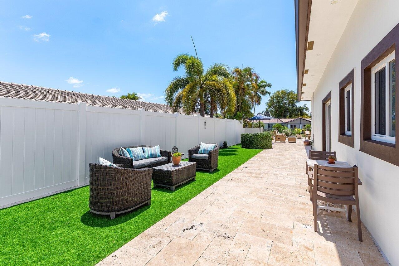 Boaters will enjoy the newer 75-foot seawall and boat dock with electric wired, ideal for a 30-foot boat. Enjoy direct ocean access with just one 15-foot fixed bridge (approx. 14 ft. clearance at low tide, 8 ft. at high tide), giving you effortless passage to the intracoastal and beyond.