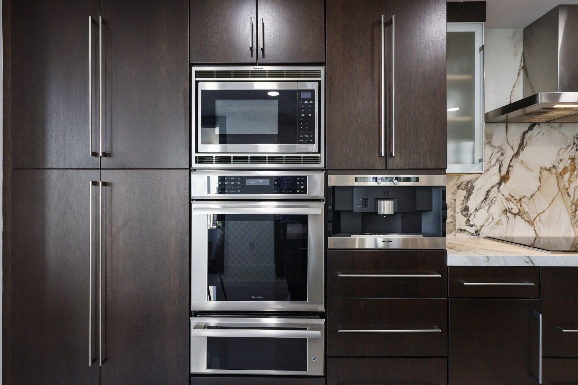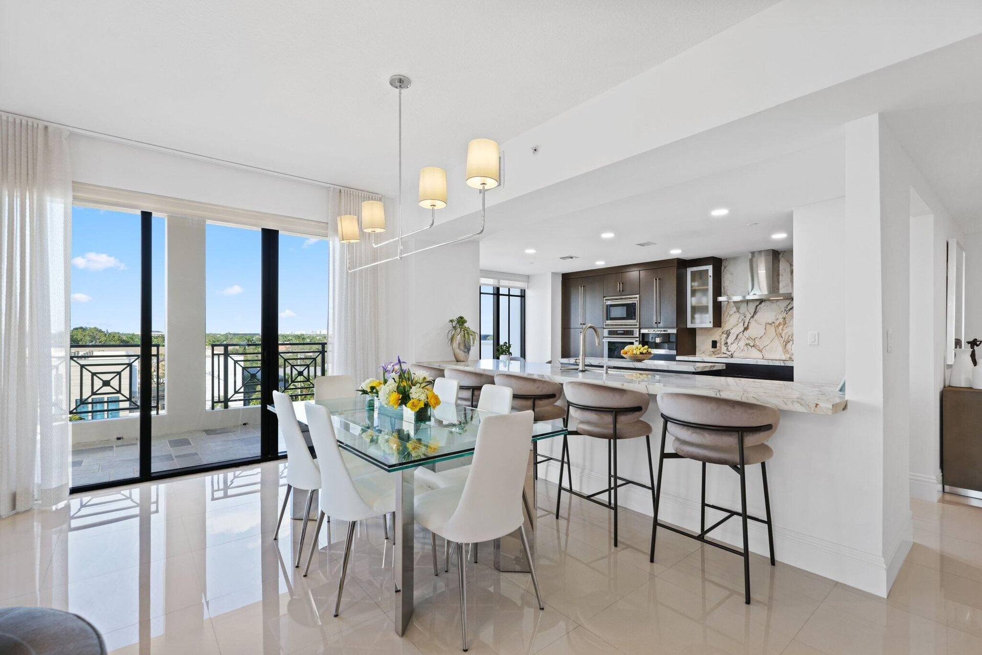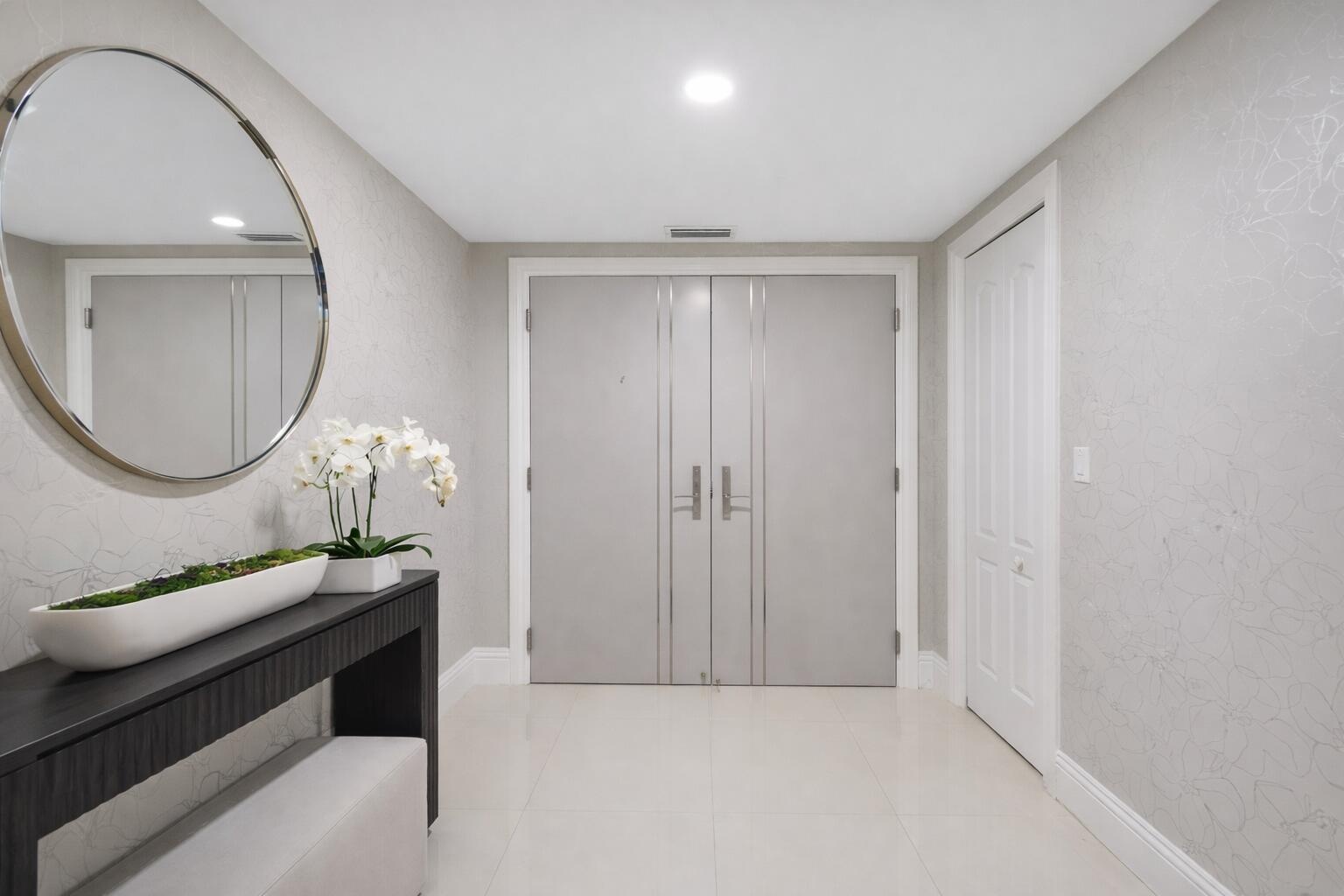 A modern, beautifully designed kitchen features rich espresso wood cabinetry, a workstation sink, induction cooktop and thick mitered-edge white porcelain countertops and backsplash accented by sweeping veins of brown, tan, and beige. Premium appliances include a Wolf induction cooktop, BEST chimney range hood, Miele built-in Nespresso system, and Sub-Zero fridge. A chic powder room makes a statement with a stunning new marble & brass vanity, a custom tiled wall with beautiful modern wall sconces mixed with elegantly appointed wallpaper. Enjoy add'l outdoor living w/ 3 covered spacious balconies offering engaging city views! 2 Pkg Spaces + 1 Stora Additional new improvements include a Hot Water Heater, A/C unit, Washer and Dryer and outdoor porcelain tile on all (3) balconies. 200 East just completed a $6M interior design / concrete restoration renovation in 2025. Ideally located just steps away from Mizner Park, Royal Palm Plaza and many of Boca's best restaurants, shopping and entertainment - Offering downtown living at its finest. 200 East offers 5-star services and amenities, including a 24/7 front desk and concierge, porte-cochère valet parking, a resort style 4th-level pool and spa deck, and an all new exercise and clubroom.