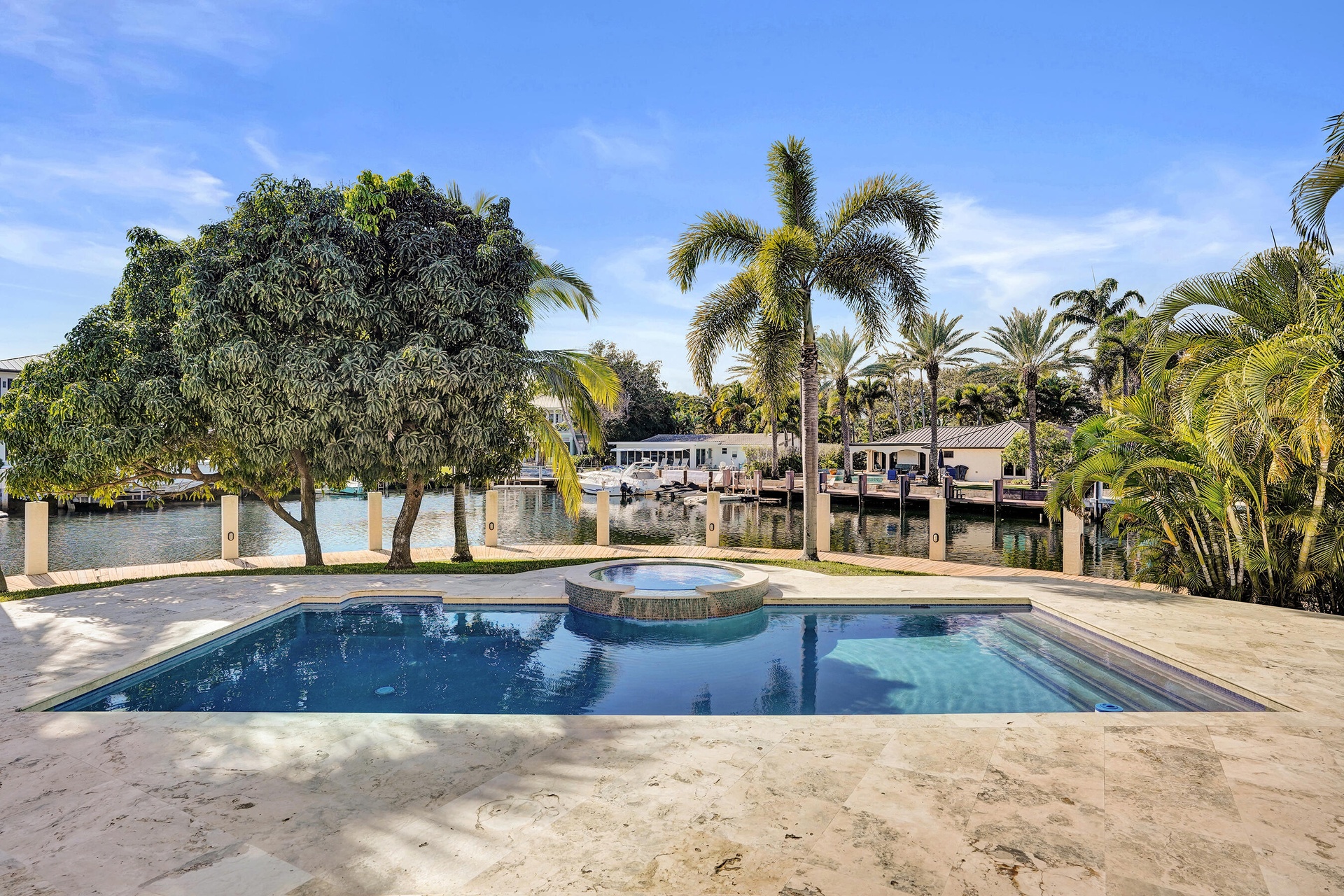 Welcome to your rarely available Gated WATERFRONT Point Lot Estate with 223' of deep water frontage! Set along one of Lighthouse Point's most coveted island streets, this 5 Bed + Office + 6 Baths + 3 Car Garage + 1 Car Carport + Pool distinguished waterfront estate presents a rare convergence of architectural refinement, privacy, and premier yachting access. This residence is thoughtfully designed for those who value seamless indoor-outdoor living and life on the water, offering an elevated coastal lifestyle defined by elegance, scale, and quiet exclusivity. A grand entry opens to a formal living room with floor to ceiling windows, coffered ceilings and fireplace, flowing seamlessly into a formal dining room with a beverage center, creating an elegant backdrop for sophisticated gathering Enjoy the TRANQUIL covered patios as the estate unfolds into a SUBSTANTIAL marble pool deck with a PICTURE-PERFECT tropical resort style pool and built in hot tub that is surrounded by lush landscaping. The oversize lot along with your private dock that wraps around the property provides SUBSTANSIAL room for you, your family, guests and pets to enjoy true South Florida waterfront living. With 223' of water frontage and dock space, there is AMPLE room for your Sportfish, Sport Yacht and Center Console. Located on a prestigious island street, moments from the Intracoastal and ocean access, this property presents a rare opportunity to secure a waterfront estate for those who live life on the water. Outdoors, the estate delivers true resort-style waterfront living, with a tropical pool and spa, expansive patio areas, and commanding water views from nearly every angle. The corner-lot orientation provides enhanced privacy, expanded dock potential, and dramatic sightlines, an exceptional advantage for yacht owners. This is a rare opportunity to own a corner lot waterfront estate in one of Lighthouse Point's most desirable island settingswhere luxury, location, and lifestyle converge.