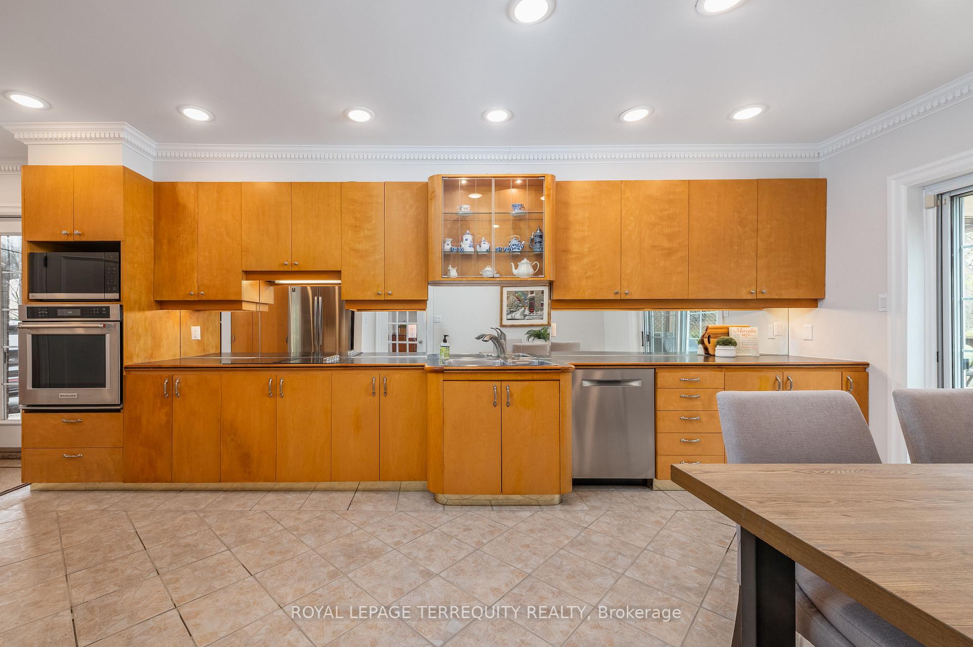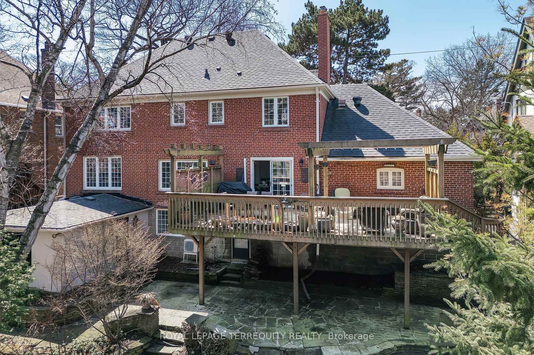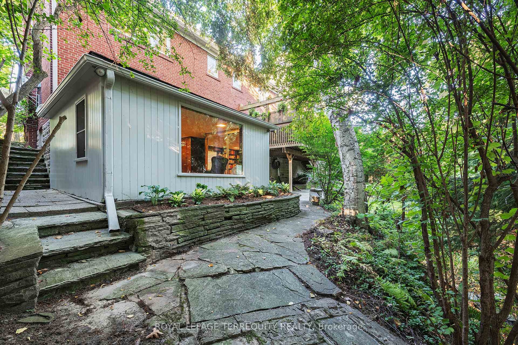 Exceptional Riverside Drive Residence. Rarely available 75' by 226' Ravine Lot. Solid Family Home with space to grow into. Gracious Living room centered around a stately open gas fireplace. Dining room with views to the wooded backyard. Mid Century modern eat-in Kitchen with access to the elevated oversized deck - perfect for morning coffee or twilight wine. Convenient powder room and covered access to the double car garage complete the main floor. Four generous bedrooms on the second - primary with a 3 piece ensuite overlooking the ravine. Wonderful potential to develop the loft attic. (Make sure to walk up the stairs and view) Above grade walk out basement to stone patio from the home office/bedroom. Full size recreation/games room - billiards anyone? Separate laundry room plus ample storage in the utility room. Steps to "Lucy Maud Montgomery" Parkette. All the above on a coveted street in Swansea with easy walking access to the Subway, Bloor West Village Shops & Restaurants, The Old Mill and Humber River Trails. 12 minutes to the financial district and minutes to the Martin Goodman Trail Boardwalk siding onto Lake Ontario. Fantastic School Districts. Move in, live and personalize at your leisure.