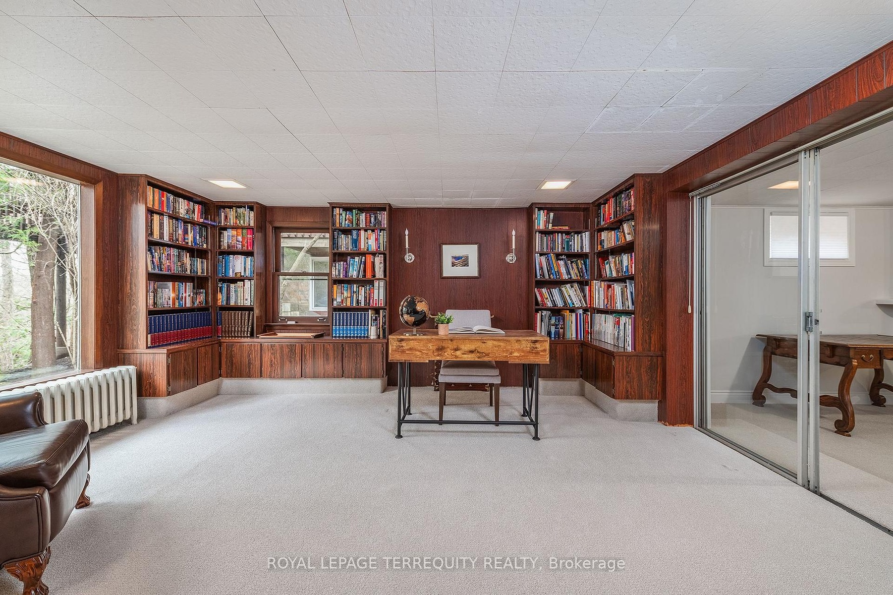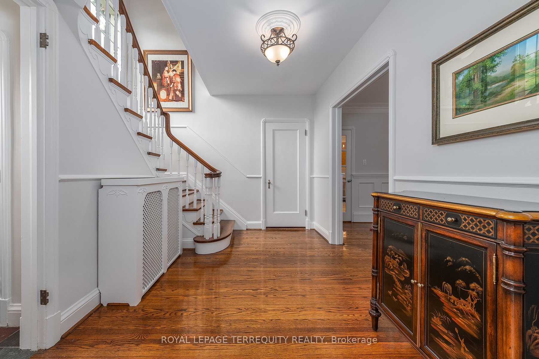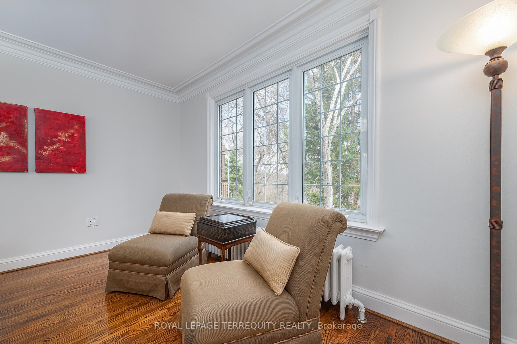 Exceptional Riverside Drive Residence. Rarely available 75' by 226' Ravine Lot. Solid Family Home with space to grow into. Gracious Living room centered around a stately open gas fireplace. Dining room with views to the wooded backyard. Mid Century modern eat-in Kitchen with access to the elevated oversized deck - perfect for morning coffee or twilight wine. Convenient powder room and covered access to the double car garage complete the main floor. Four generous bedrooms on the second - primary with a 3 piece ensuite overlooking the ravine. Wonderful potential to develop the loft attic. (Make sure to walk up the stairs and view) Above grade walk out basement to stone patio from the home office/bedroom. Full size recreation/games room - billiards anyone? Separate laundry room plus ample storage in the utility room. Steps to "Lucy Maud Montgomery" Parkette. All the above on a coveted street in Swansea with easy walking access to the Subway, Bloor West Village Shops & Restaurants, The Old Mill and Humber River Trails. 12 minutes to the financial district and minutes to the Martin Goodman Trail Boardwalk siding onto Lake Ontario. Fantastic School Districts. Move in, live and personalize at your leisure.