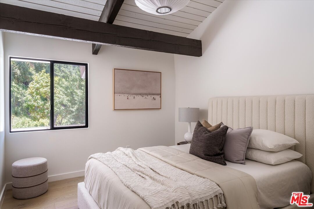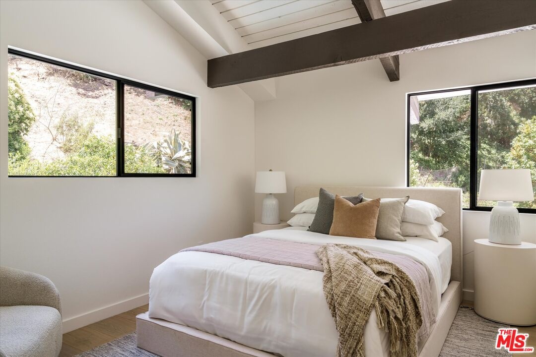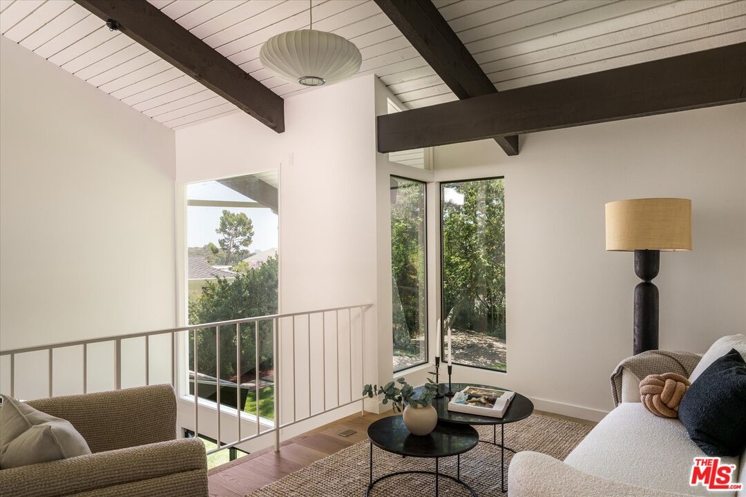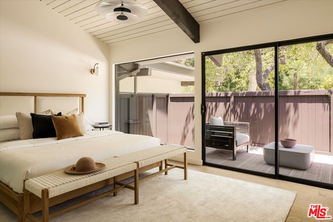 FOR LEASE for $16,900 per month OR SALE for $4,475,000! Quiet and peace is what you'll find tucked at the end of a long, gated drive on a generous flag lot in the Brentwood Hills section of Mandeville Canyon. This down-to-the-studs mid-century modern remodel is a study in quiet luxury and thoughtful living. Surrounded by hedges and flanked by your own private hillside, the property offers a sense of seclusion that's rare especially just minutes from Sunset Blvd. Vaulted ceilings create openness throughout. Two bedrooms are on the main floor, including the primary with luxurious en-suite bath and its own private patio, perfect for a morning coffee. The second features its own en-suite bath, making it an ideal guest suite, home office, or creative studio. Upstairs, three additional bedrooms & 2 full baths, plus a loft-style den create space for work, guests, study, or media. The home's scale is human, but the lot is expansive, allowing indoor and outdoor living to coexist with ease. Two large yard spaces create natural zones for entertaining. On the side, a wide flat lawn opens off the living and dining rooms, perfect for outdoor dinners, a volleyball or soccer game, or just relaxing. In the back, a totally renovated pool and patio connect to the kitchen and den, set against the hillside for added privacy. New systems including three zone HVAC, tankless water heaters, and brand new appliances by Wolf, Cove, and Sub-Zero bring comfort and convenience, while wide-plank European oak floors and clean, classic finishes keep the look grounded and timeless in mid century detail. Designer finishes and thoughtful selections throughout reflect the care that went into crafting the updated version of the home. There's ample parking both behind the gate and curbside on the neighborhood's wide streets, where underground utilities keep sightlines clear and the environment uncluttered. For those who love the outdoors, the nearby Westridge Trailhead offers a local escape with canyon paths and sweeping ocean views, perfect for morning hikes, dog walks, or just clearing your head. Within the boundaries of highly regarded public schools (Kenter Canyon Elementary, Paul Revere Middle and Palisades High School) and close to some of LA's most sought-after private campuses, this location blends the best of quiet canyon living with access to everything the Westside has to offer. Minutes from Amici, Brentwood Country Mart, the farmer's market on Graetna Green as well as the shops on Montana in Santa Monica. Originally built as the model home for the neighborhood in the early 1960s and held by the same family ever since, it's been expanded and reimagined for modern living. Though rooted in history, the home feels brand new. Only the mature trees, original MCM design, and wood-burning fireplace hint at the eras of days gone by. It's truly the best of both worlds: classic mid-century Brentwood with all the comforts and confidence of new construction. Floorplan measured by Cubi Casa. Presumed accurate but not guaranteed.