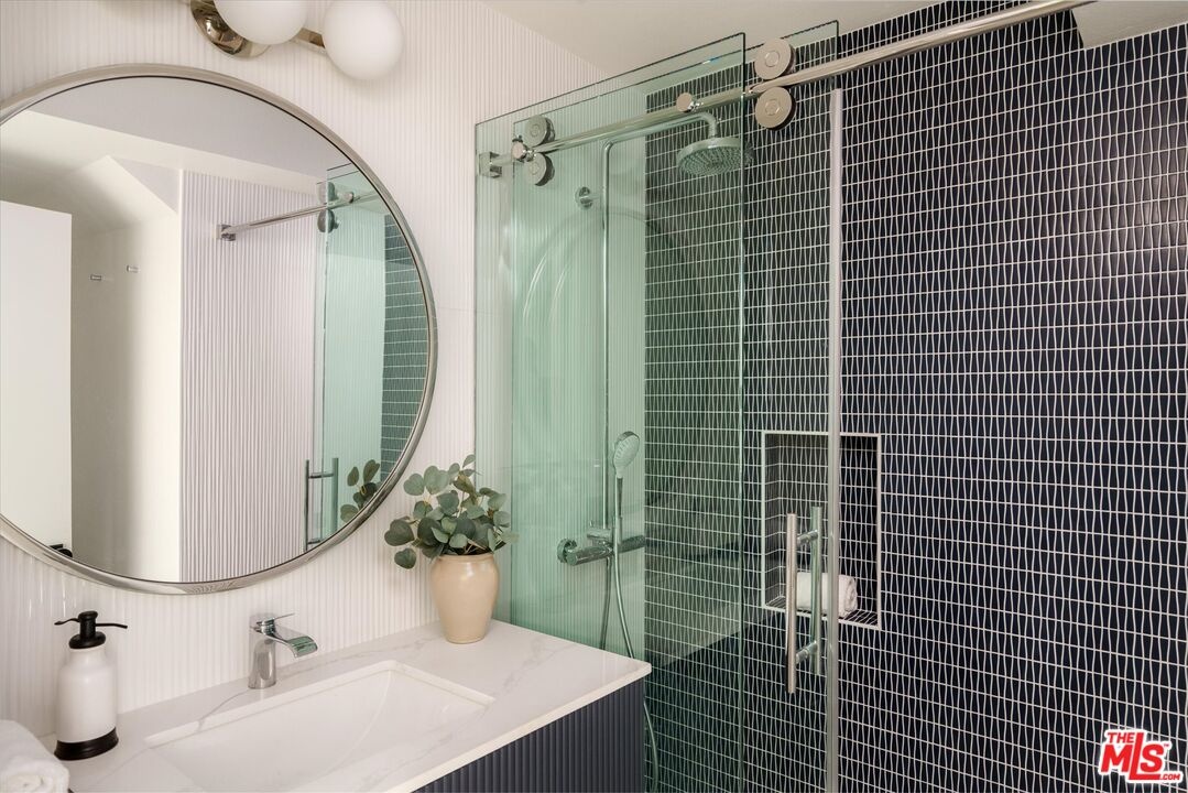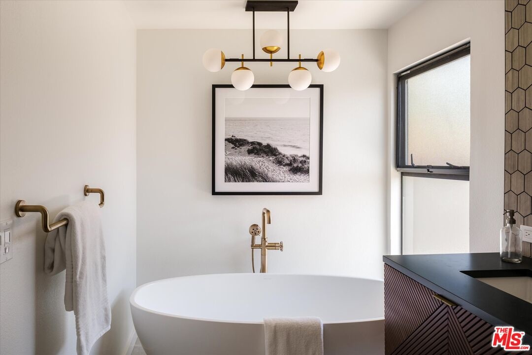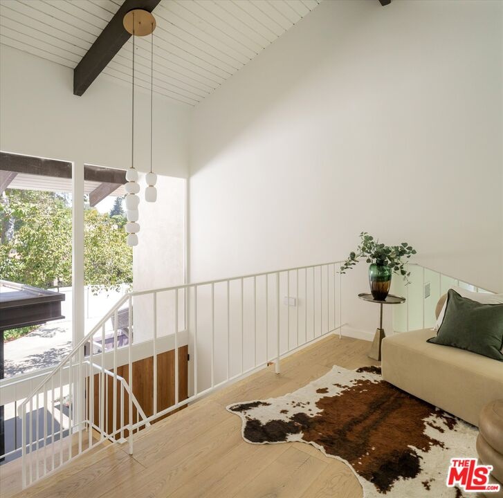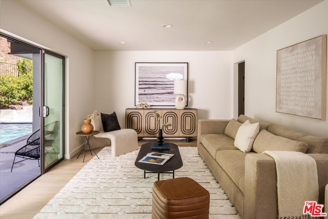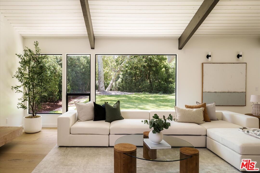 FOR LEASE for $16,900 per month OR SALE for $4,475,000! Quiet and peace is what you'll find tucked at the end of a long, gated drive on a generous flag lot in the Brentwood Hills section of Mandeville Canyon. This down-to-the-studs mid-century modern remodel is a study in quiet luxury and thoughtful living. Surrounded by hedges and flanked by your own private hillside, the property offers a sense of seclusion that's rare especially just minutes from Sunset Blvd. Vaulted ceilings create openness throughout. Two bedrooms are on the main floor, including the primary with luxurious en-suite bath and its own private patio, perfect for a morning coffee. The second features its own en-suite bath, making it an ideal guest suite, home office, or creative studio. Upstairs, three additional bedrooms & 2 full baths, plus a loft-style den create space for work, guests, study, or media. The home's scale is human, but the lot is expansive, allowing indoor and outdoor living to coexist with ease. Two large yard spaces create natural zones for entertaining. On the side, a wide flat lawn opens off the living and dining rooms, perfect for outdoor dinners, a volleyball or soccer game, or just relaxing. In the back, a totally renovated pool and patio connect to the kitchen and den, set against the hillside for added privacy. New systems including three zone HVAC, tankless water heaters, and brand new appliances by Wolf, Cove, and Sub-Zero bring comfort and convenience, while wide-plank European oak floors and clean, classic finishes keep the look grounded and timeless in mid century detail. Designer finishes and thoughtful selections throughout reflect the care that went into crafting the updated version of the home. There's ample parking both behind the gate and curbside on the neighborhood's wide streets, where underground utilities keep sightlines clear and the environment uncluttered. For those who love the outdoors, the nearby Westridge Trailhead offers a local escape with canyon paths and sweeping ocean views, perfect for morning hikes, dog walks, or just clearing your head. Within the boundaries of highly regarded public schools (Kenter Canyon Elementary, Paul Revere Middle and Palisades High School) and close to some of LA's most sought-after private campuses, this location blends the best of quiet canyon living with access to everything the Westside has to offer. Minutes from Amici, Brentwood Country Mart, the farmer's market on Graetna Green as well as the shops on Montana in Santa Monica. Originally built as the model home for the neighborhood in the early 1960s and held by the same family ever since, it's been expanded and reimagined for modern living. Though rooted in history, the home feels brand new. Only the mature trees, original MCM design, and wood-burning fireplace hint at the eras of days gone by. It's truly the best of both worlds: classic mid-century Brentwood with all the comforts and confidence of new construction. Floorplan measured by Cubi Casa. Presumed accurate but not guaranteed.