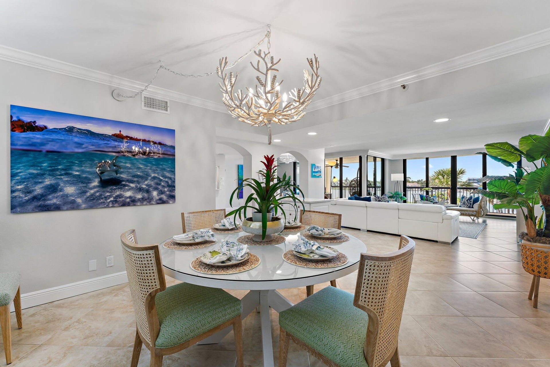 Whether you are waking up in the primary suite, preparing meals in the kitchen, or relaxing in the den, the beauty of the waterway is ever present. These breathtaking views are a constant companion and truly at the heart of the Intracoastal living experience.