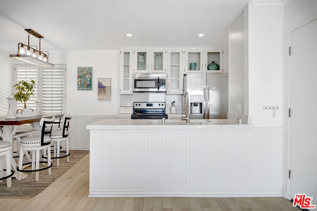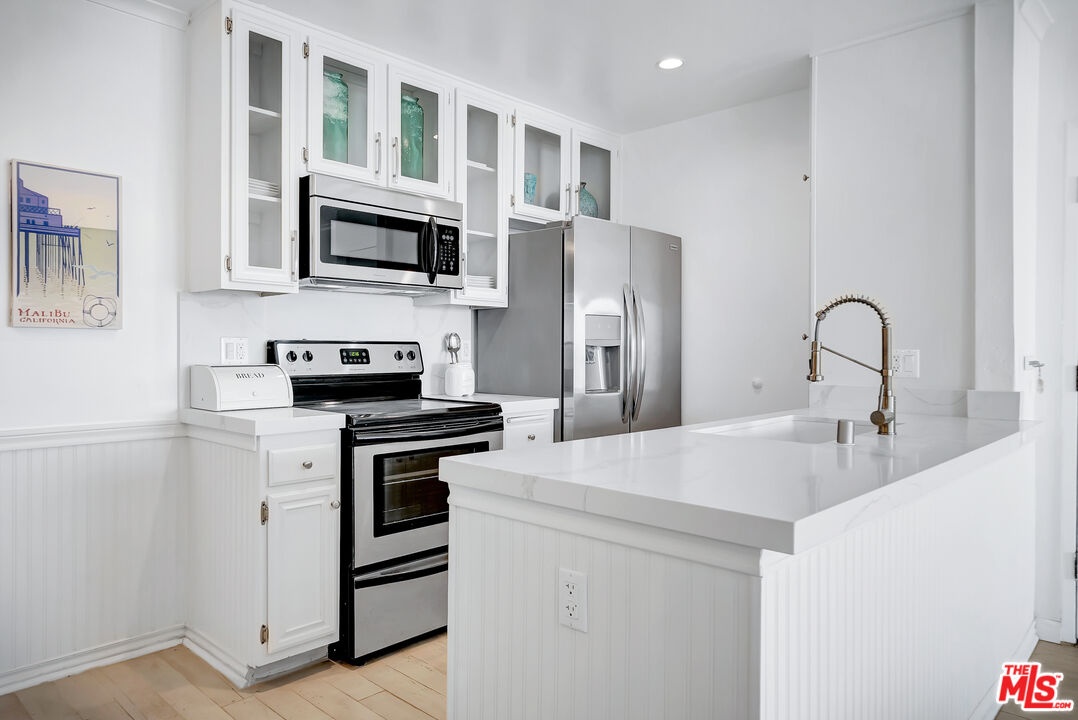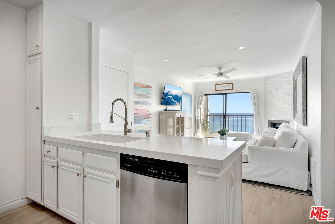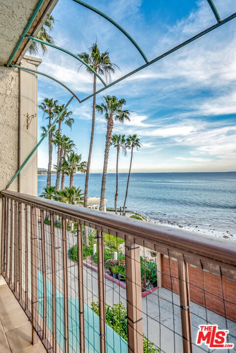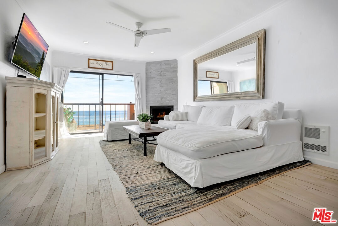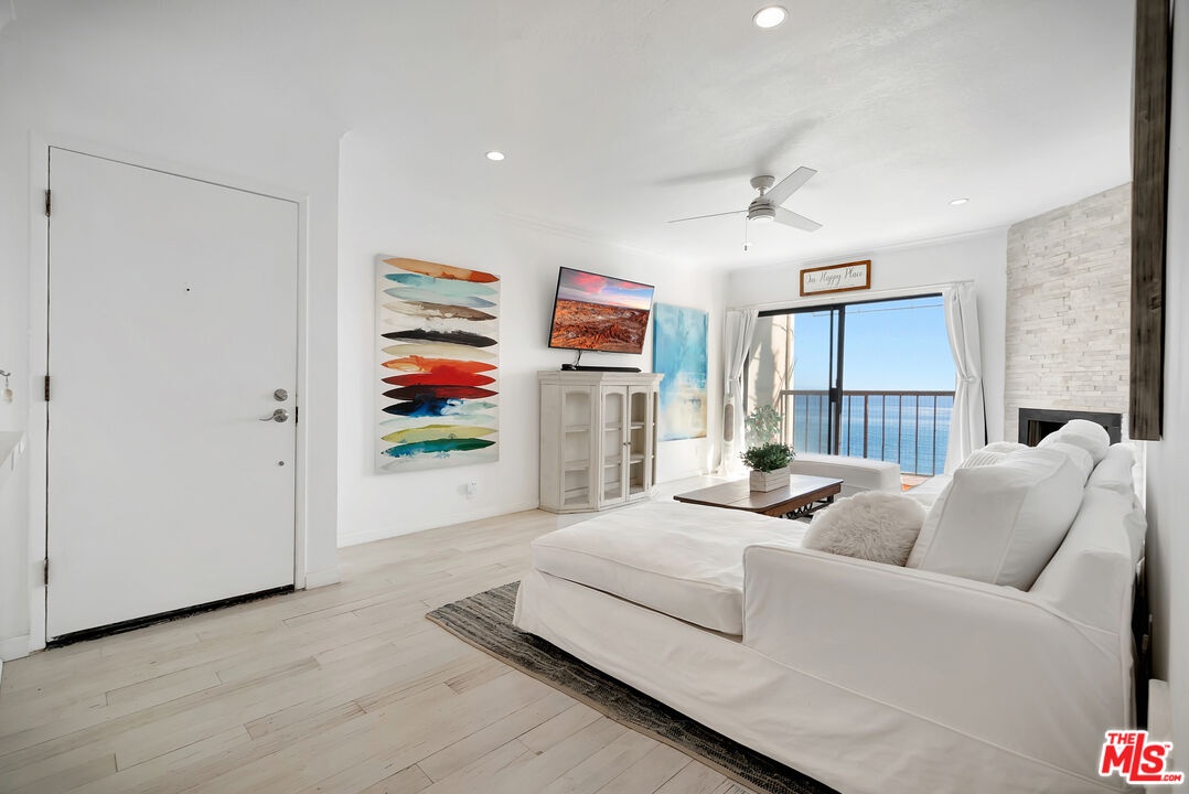 Welcome to Paradise! Your search has ended. Breathtaking oceanviews from this stunning, remodeled, top floor, spacious one bedroom, one bath condo in the front row of Tivoli Cove, D building, closest to the ocean. Fall asleep to the soothing sound of the waves and see the glorious sunrise and Catalina from your king size bed in the morning! View the Queen's necklace at night and marvel at the vast amount of stars in the sky. Sit by your cozy gas burning fireplace in the living room or relax on your sun drenched balcony with white water views. Coastal kitchen with stainless steel appliances and jaw dropping views of the ocean! Dedicated dining area accommodating seating for six. Gorgeous white, weathered ceramic wide plank flooring. Inviting glass enclosed marble shower. Ceiling fans in living room and bedroom add to the seaside breezes. Enjoy long beach walks to fabulous Paradise Cove or hit the surf at Latigo. Steps to a private beach with oceanfront BBQ's, picnic tables and volleyball net. Additional large bonus room just across walkway from the unit with wifi. Two side by side parking spaces. Gated and guarded community with onsite manager five days a week. Resort style living at it's finest with two tennis courts, heated pool, large spa, gym, sauna, and clubhouse with fireplace. Three miles from Pepperdine University and world class shopping, dining, and hiking near by. Live the dream in Malibu now.