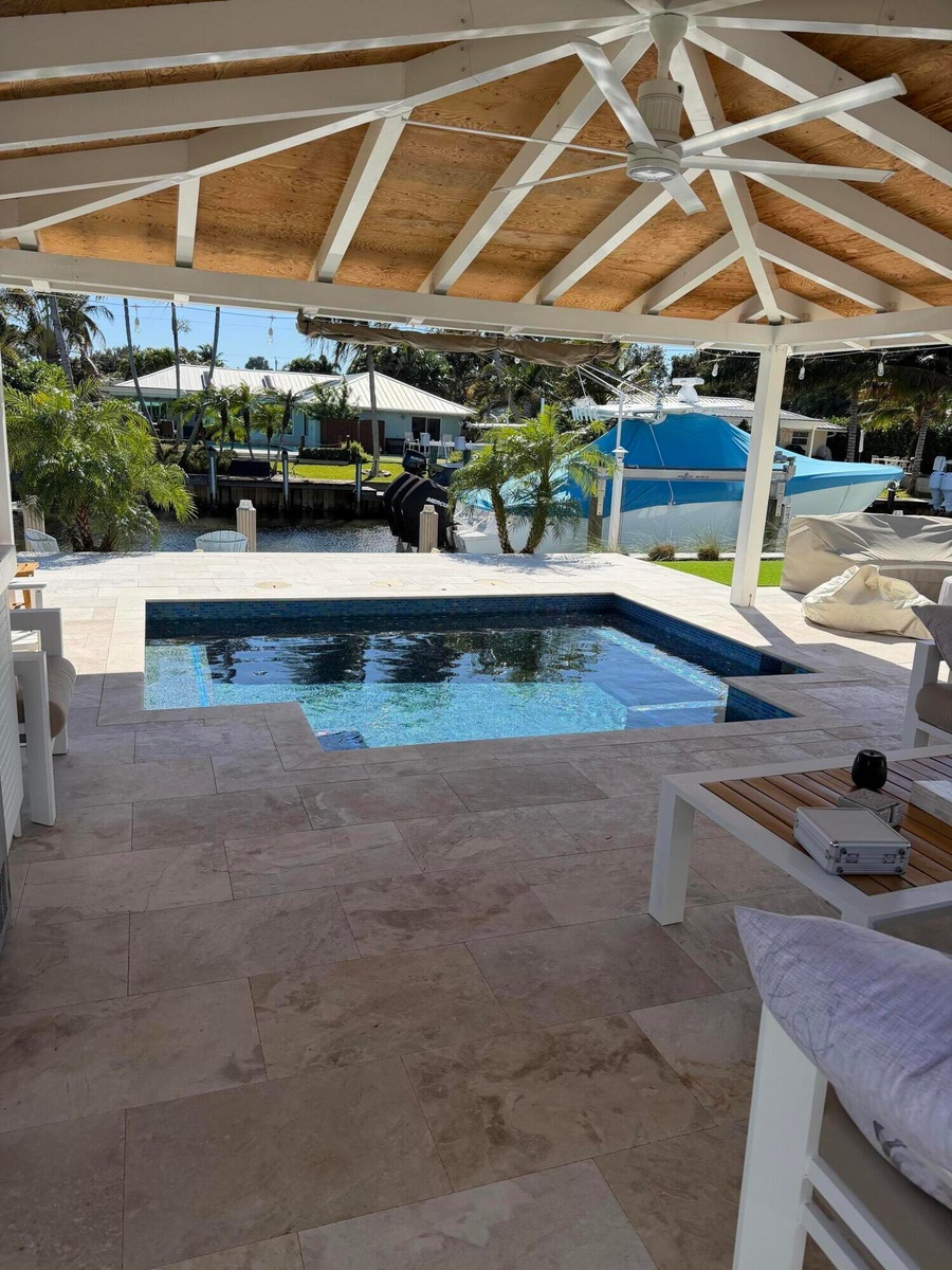 Beautiful 3/3 bedroom, 3 bath annual waterfront rental featuring a main master suite and a full size junior master bedroom - Ideal for guests. Situated on a finger canal with a private dock and lift accommodating up to a 30 foot boat. Go paddle boarding in your back yard. Enjoy the best of south Florida living just minutes away by boat to the iconic Jupiter Inlet Lighthouse. Walking distance to nearby golf course and close to the top restaurants and shopping. This home offers an open concept kitchen ideal for entertaining, seamlessly flowing into main living room. Step outside to your private back yard featuring a jacuzzi, built in barbecue, ice maker and refrigerator -perfect for relaxing or hosting while enjoying a tranquil waterfront view. PET- FRIENDLY (SUBJECT TO APPROVAL)