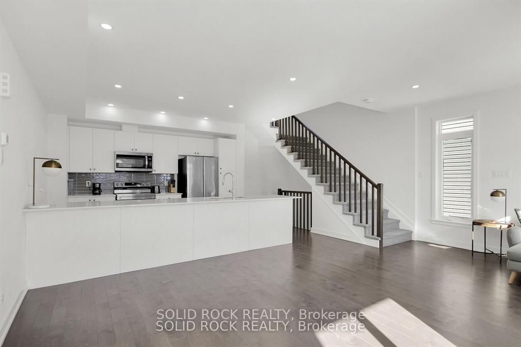 Fully furnished, nearly new 2-bedroom, 3-bath townhome built in 2023 with ~1,440 sq.ft. of modern living space. Open-concept layout featuring a quartz kitchen with island and an oversized balcony. Spacious primary bedroom with ensuite, walk-in closet, and upper-level laundry. Located in Findlay Creek near parks, trails, shopping, and quick access to Hwy 417.