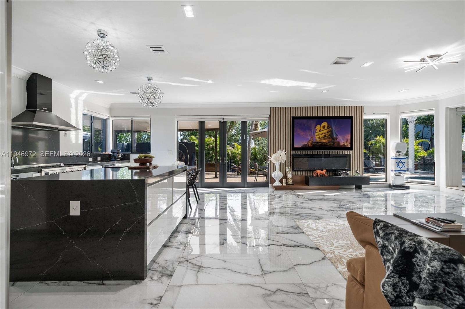 Waterfront living with private dock in the heart of Eastern Shores, between Aventura, Sunny Isles, and Bal Harbour. This exceptional 6-bedroom, 4.5-bathroom,20-feet ceiling residence offers an impressive blend of modern design, comfort, and functionality across 6,000 square feet of interior space under AC . Designed for both everyday living and grand entertaining, the home features expansive living areas, a sleek chef’s kitchen with premium appliances,Movie theater, a pool, a private dock for boats, and a luxurious primary suite with a spa-like bathroom and a private sitting area, impact windows, 2 AC units, and a 2-story. Enjoy seamless indoor-outdoor living with a resort-style backyard showcasing a heated pool, spa, and covered entertaining areas. With approximately 100+ feet of waterfront and direct ocean access, this property is a boater’s dream. Ideally located just minutes from beaches , Shoppings, Schools rate A, Sunny Isles Beach, Oleta River State Park, and premier shopping and dining, this home offers privacy, prestige, and the ultimate South Florida lifestyle.