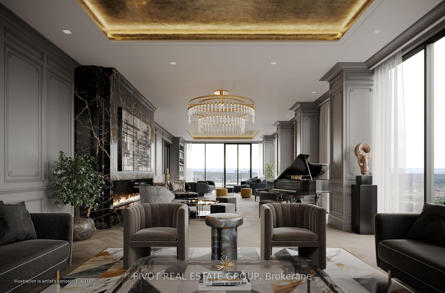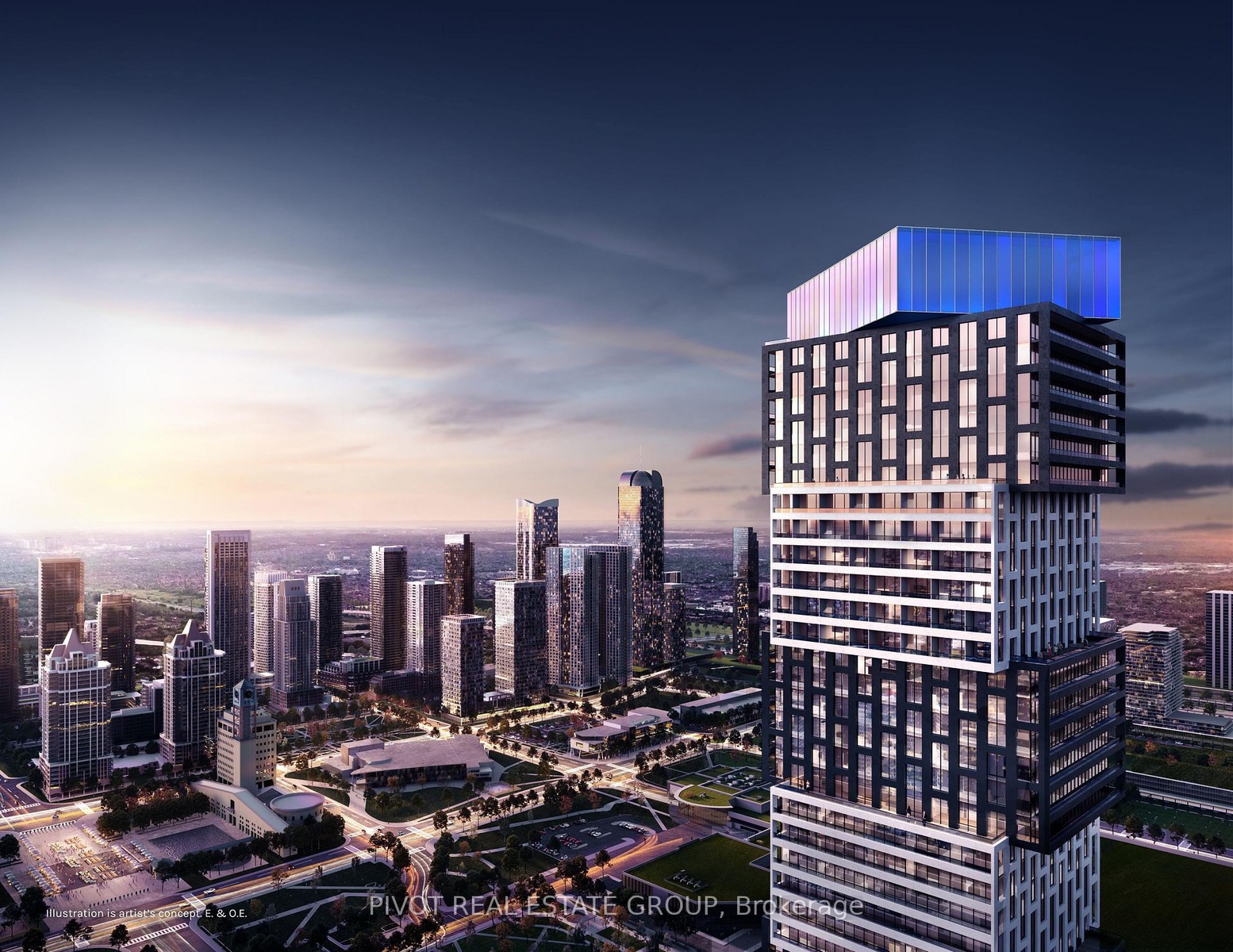 Spectacular One of Kind Penthouse Living at EX3 in the Exchange District, an award-winning master-planned community in the heart of City Centre, Mississauga. Encompassing the entire top floor of the 66-storey tower, the suite offers approximately 7,800 square feet of interior living space and 2,000 square feet of balcony spaces. Windows throughout frame sweeping 360-degree views of downtown Mississauga, views of the Toronto skyline, and Lake Ontario With 5 spacious bedrooms, 6 full bathrooms, 2 powder rooms, and a dedicated home office, this meticulously designed layout delivers exceptional comfort and sophistication. The suite opens into a grand foyer leading to a light-filled great room with multiple seating areas and access to one of two oversized balconies. Ideal for entertaining, the residence features a formal dining room, wine room, and an open-concept chefs kitchen with premium appliances, a massive island, walk-in pantry, and a sunny breakfast nook. A discreet prep kitchen adds further convenience for catering or keeping the main kitchen spotless during gatherings. The primary suite is a private retreat with a serene sitting area, dual walk-in closets, and spa-like his and hers ensuite. Each bedroom features its own ensuite bath and walk-in closet, offering privacy and comfort for family or guests, or for staffing quarters. Additional highlights include a gym room, a media room, two laundry rooms. Situated just steps from Square One Shopping Centre, transit, fine dining, and cultural landmarks, this one-of-a-kind residence offers unmatched scale, exclusivity, and convenience in Mississauga's most vibrant urban hub. Inclusive of 5 Parking Spots & 2 Lockers. Geothermal Heat Source. Images are Artist's Concepts. Taxes not yet assessed.