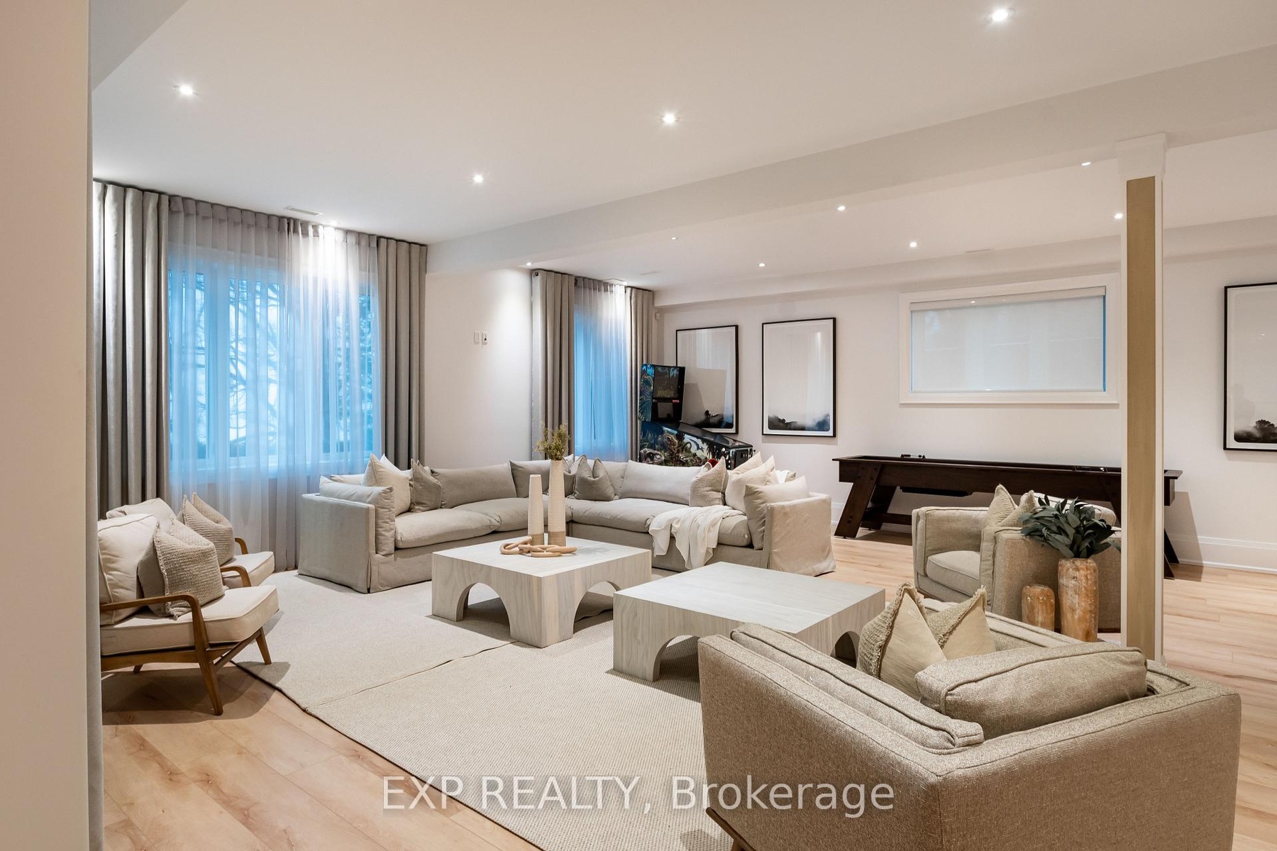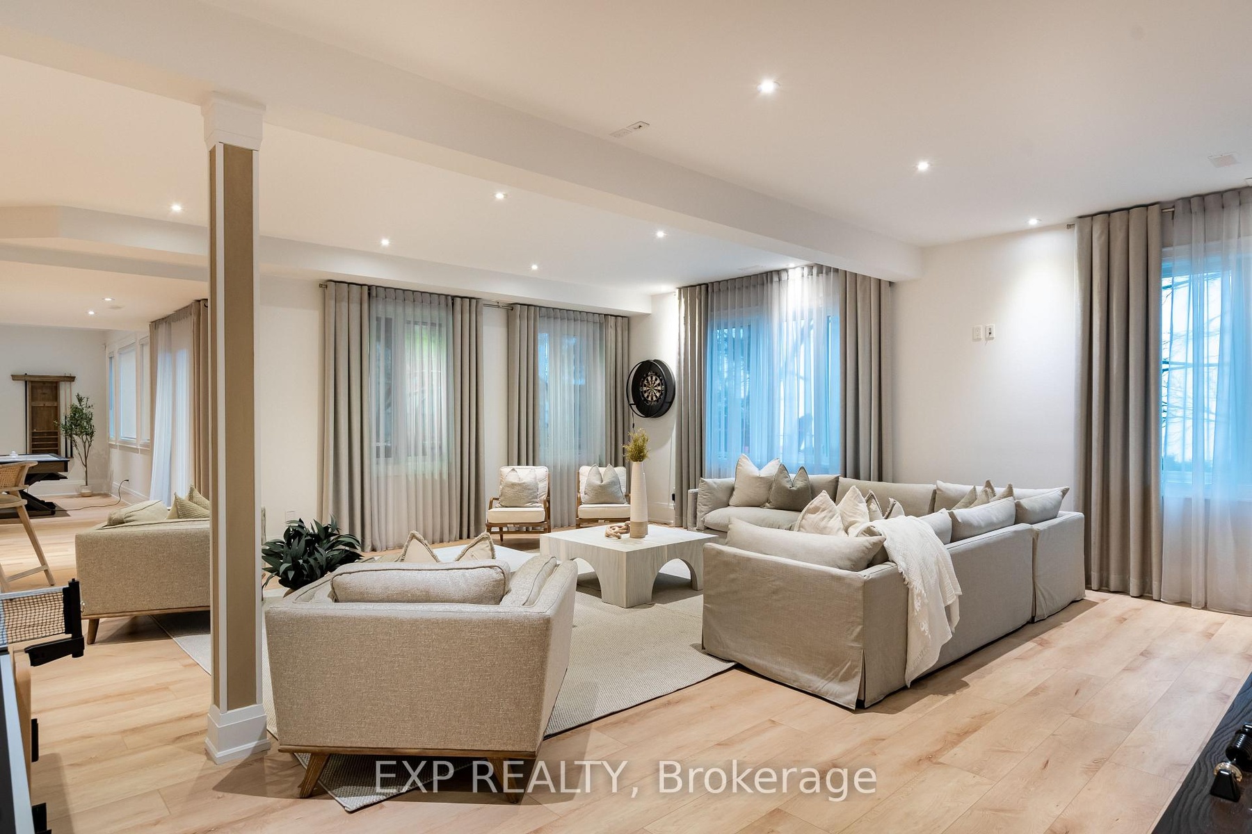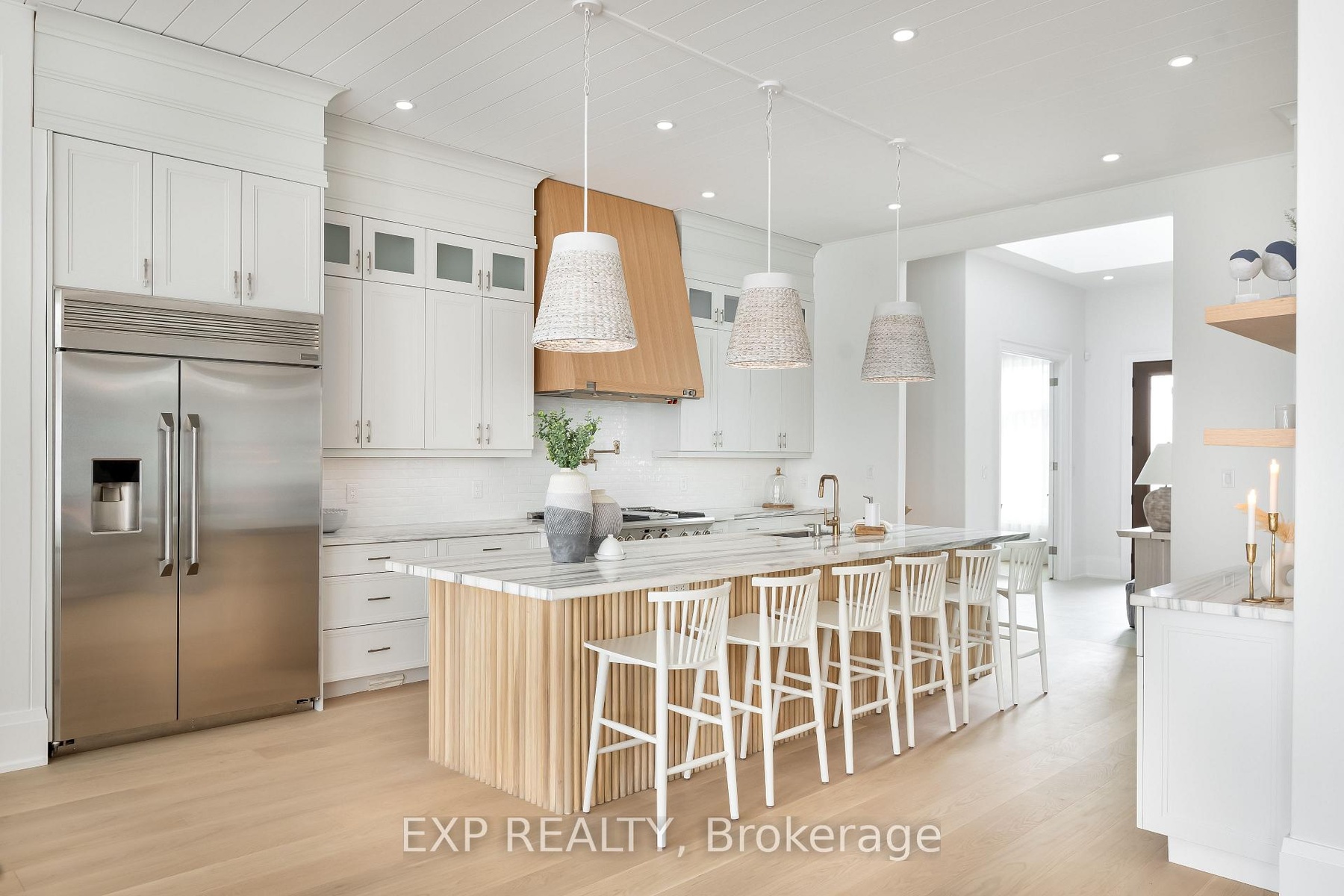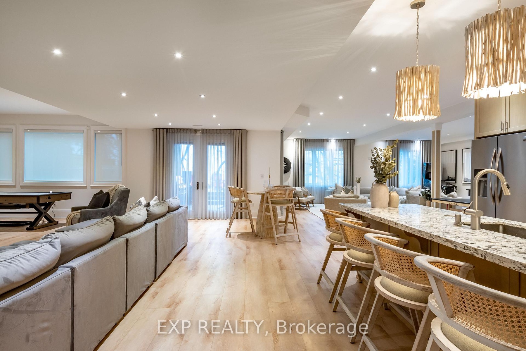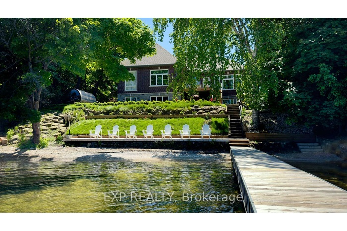 A Truly Exceptional Coastal-Inspired Luxury Waterfront Bungalow Featuring 7 Bedrooms & 8 Bathrooms, Fully-Renovated And Sold Completely Furnished, Offering Approximately 6,800 Sq Ft Of Thoughtfully Designed Living Space On Almost 80 Ft Of Sandy Lake Simcoe Shoreline With A Gradual, Family-Friendly Entry And Water Deep Enough For Boating And Docking. Reimagined From Top To Bottom By A Toronto-Based Design Studio, This Bright, Move-In-Ready Residence Pairs Refined Craftsmanship With A Designer-Created Lakehouse Aesthetic. Natural Textures, Soft Wood Tones, Custom Millwork, Designer Lighting And Siberian Engineered Hardwood Floors Are Complemented By Expansive Windows And Abundant Natural Light Throughout. The Main Level Features A Stunning Open-Concept Kitchen, Dining And Great Room - Flooded With Sunlight And Positioned To Capture Lake Views. The Kitchen Offers Custom Cabinetry, Oversized Island, Premium Appliances, And Curated Finishes. The Great Room Showcases A Statement Fireplace, Built-Ins, Coffered Ceilings And Walk-Out To Glass-Panel Deck. A Grand Foyer With Vaulted Ceiling, Formal Dining Room, Private Office And Four Bedrooms Complete The Main Floor. The Primary Retreat Includes Lake Views, Spa-Inspired 5-Piece Ensuite, And Custom Walk-In Closet. The Fully-Finished Walk-Out Lower Level Offers 9.5' Ceilings, Second Kitchen, Two Bedrooms And Private Wellness Spa Featuring Sauna And Steam/Aroma Shower - Ideal For Entertaining Or Extended Family Living. The Finished Loft Above The Oversized 3-Car Garage Includes A Kitchenette And 3-Piece Ensuite, Offering Excellent Flexibility For Guests Or Additional Living Space. Outdoor Living Is Equally Curated With Dock, Lakeside Deck, Wooden Barrel Sauna, Hot Tub And Sun-Soaked Lounge Areas Designed For Year-Round Enjoyment. Everything You See Included. A Rare Opportunity To Own A Fully-Furnished, Designer Lakefront Home With Ample Parking And Walking Distance To Shops, Golf And Amenities In The Heart Of Jackson's Point.