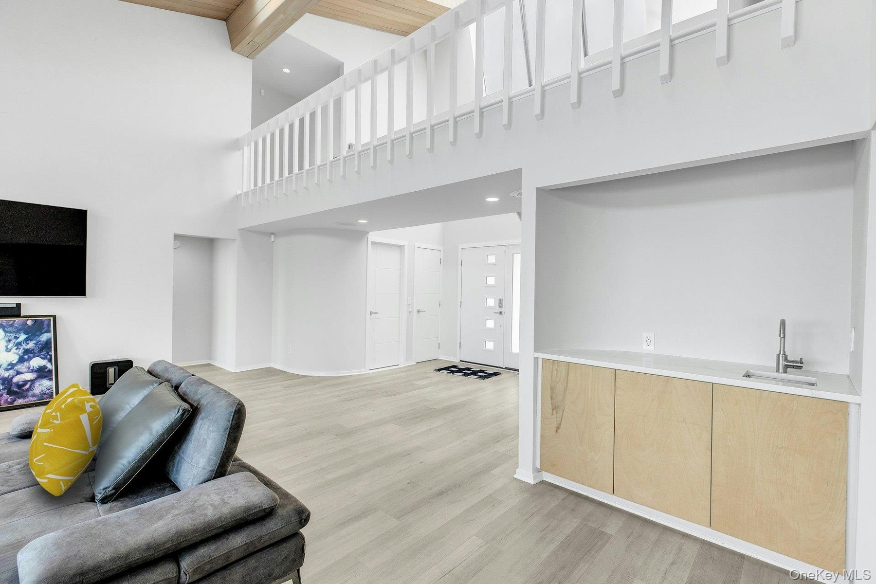 Welcome to 17 Romana Drive, a picturesque bayfront home nestled in the vibrant Tiana Shores community of Hampton Bays, NY. This stunning property, bathed in natural light, offers a harmonious blend of comfort and luxury, promising a lifestyle of tranquility and convenience.
