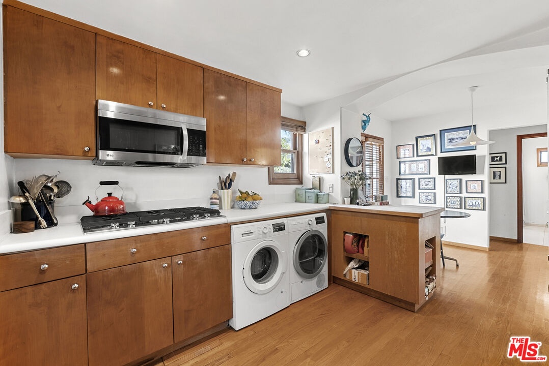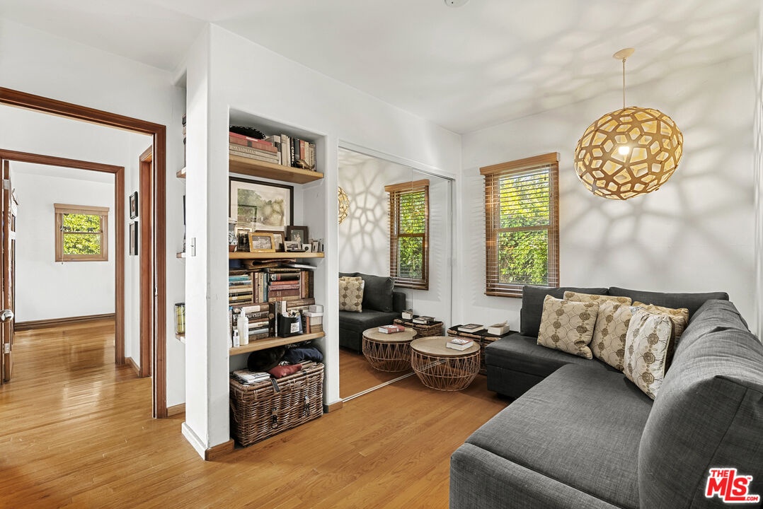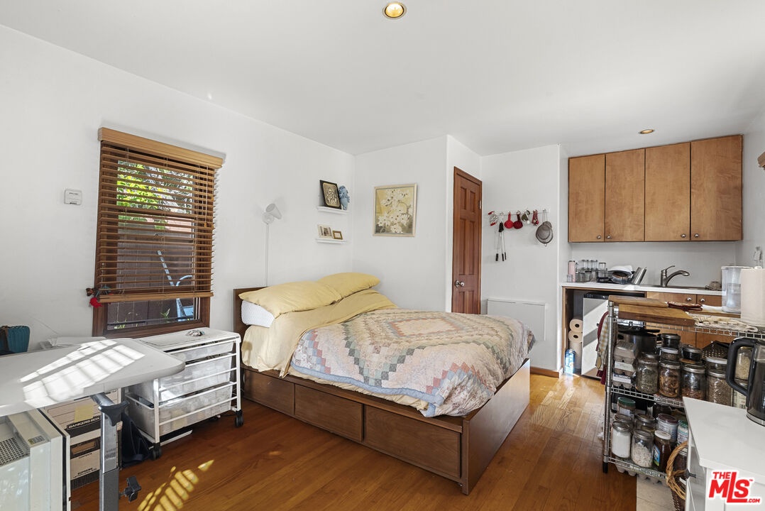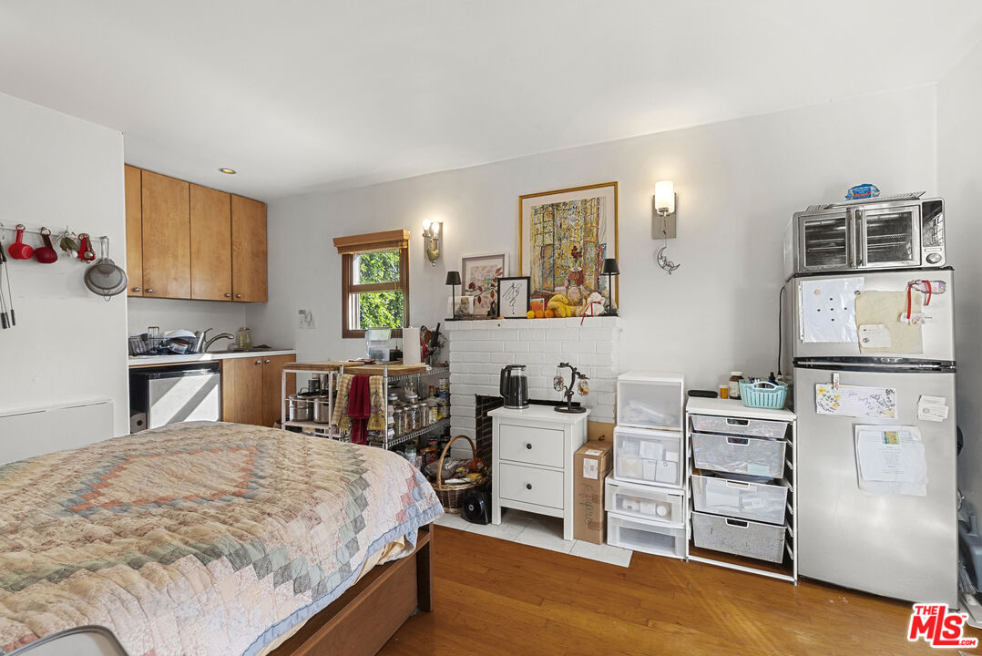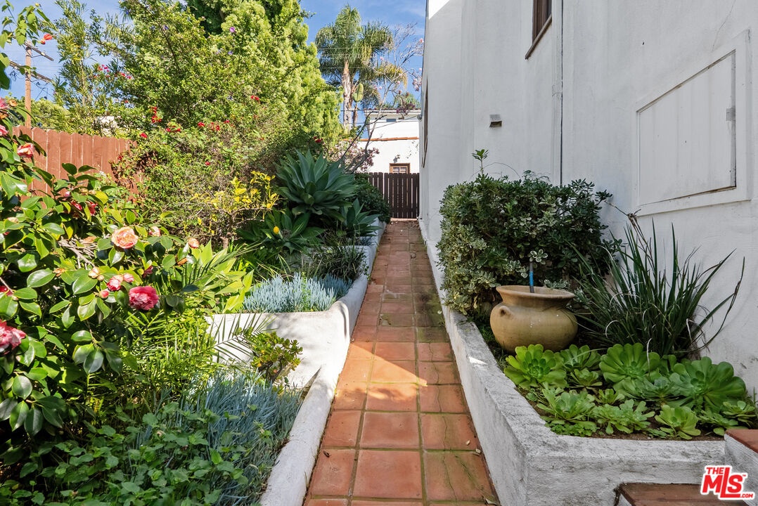 Set above the street offering exceptional privacy & light sits this pristine character-filled & remodeled Spanish gem. The main house offers 3 bedrooms, 1.75 baths, a dining area, remodeled kitchen & baths, lovely "Batchelder" wood burning fireplace in living room, gleaming hardwood floors throughout, security system, new heat & air conditioning, newer lighting & more! There is also a detached guest apartment or 4th bedroom w/ 3/4 bath, & kitchenette. Charming details throughout include arches, exposed beams, & French doors. Private garage at street is equipped with an automatic opener. Great WW location in Westwood Charter Elementary neighborhood!