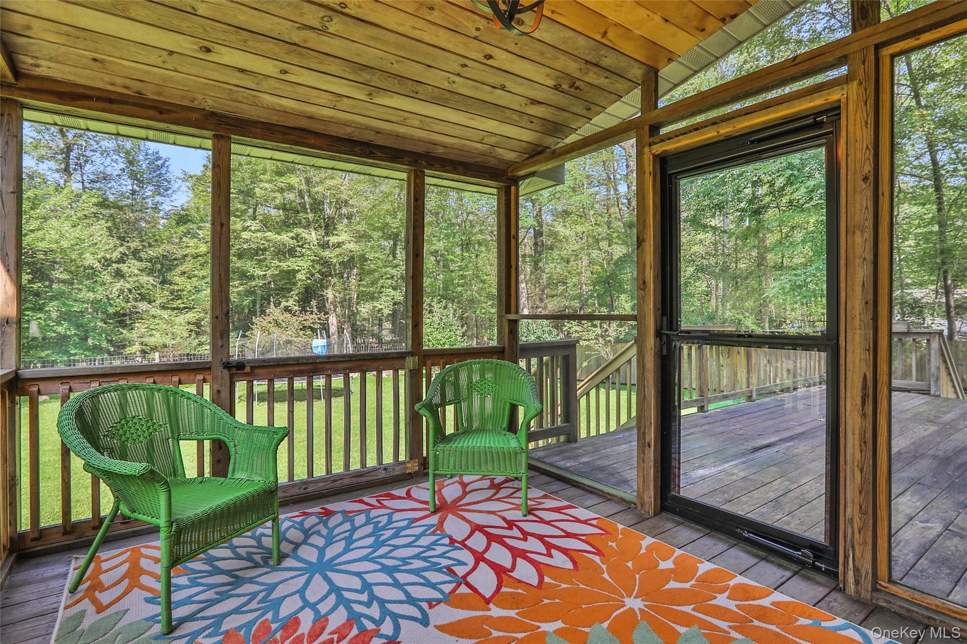Escape to this beautifully updated 3-bedroom, 2-bath Cape home located in the heart of Olive Bridge. Set on a generous lot, the residence blends modern comfort with rustic charm. Inside, you'll find beamed ceilings and elegant hardwood floors throughout, enhancing the spacious layout that's perfect for both relaxation and entertaining. The first floor features a large living/dining area, a full bath with a washer/dryer and a sun-drenched three-season room. The eat-in kitchen is a highlight, offering abundant cabinet space, an island, and a wood stove that adds warmth and character. From the kitchen, you can access the deck, which overlooks the meticulously maintained yard. Upstairs, you'll find three generously sized bedrooms with ample closet space and a walk-in closet. The full bath includes a double vanity and both a tub and a stand-up shower. There's a pull-down attic providing additional storage. The lower level offers a versatile space that can be tailored to your needs, whether for hobbies or additional living space. Step outside to find an expansive deck and a screened-in area, ideal for relaxing evenings or entertaining guests. The large, partially fenced yard is excellent for outdoor activities, and family gatherings with an oversized shed to store all your toys. The front features a charming rocking chair porch accented with IPE wood, perfect for enjoying your morning coffee. Take advantage of the nearby reservoir with hiking/biking trails, all within walking distance. This home is not just a house—it's a lifestyle. Don't miss the opportunity to make this country escape your own with lasting memories! Located just 25 minutes to Kingston, Woodstock, NYS Thruway and so much more, come take a look!
