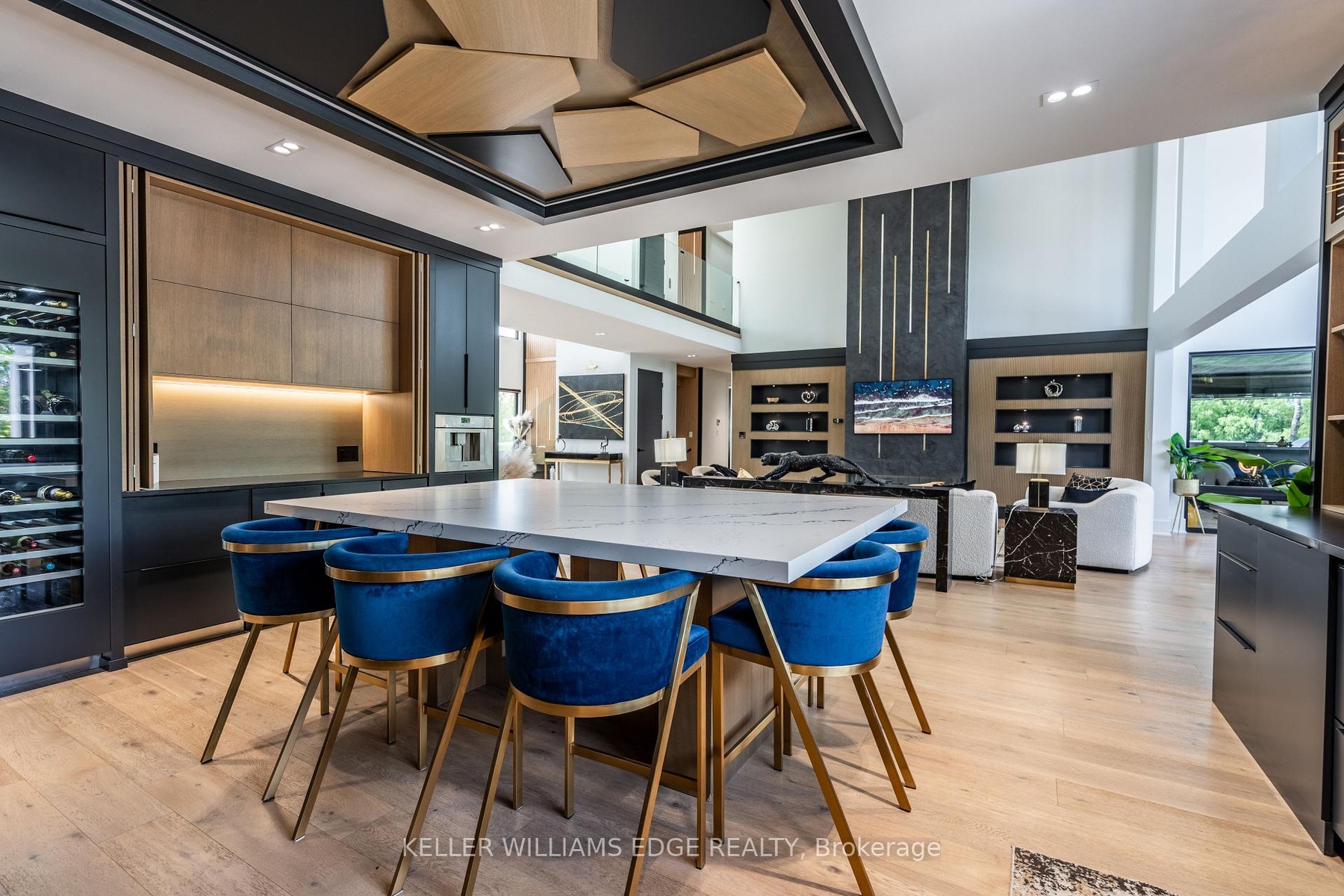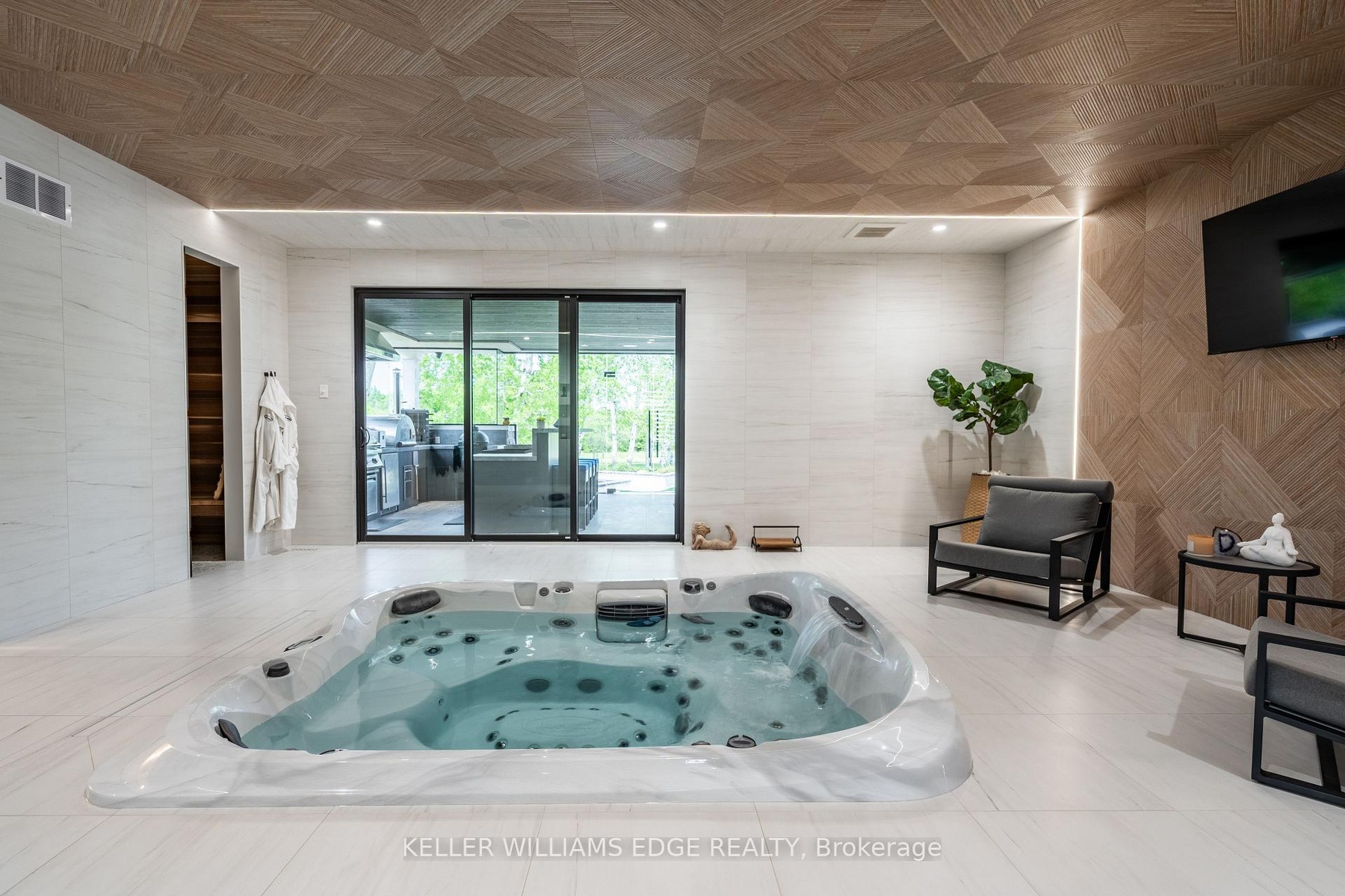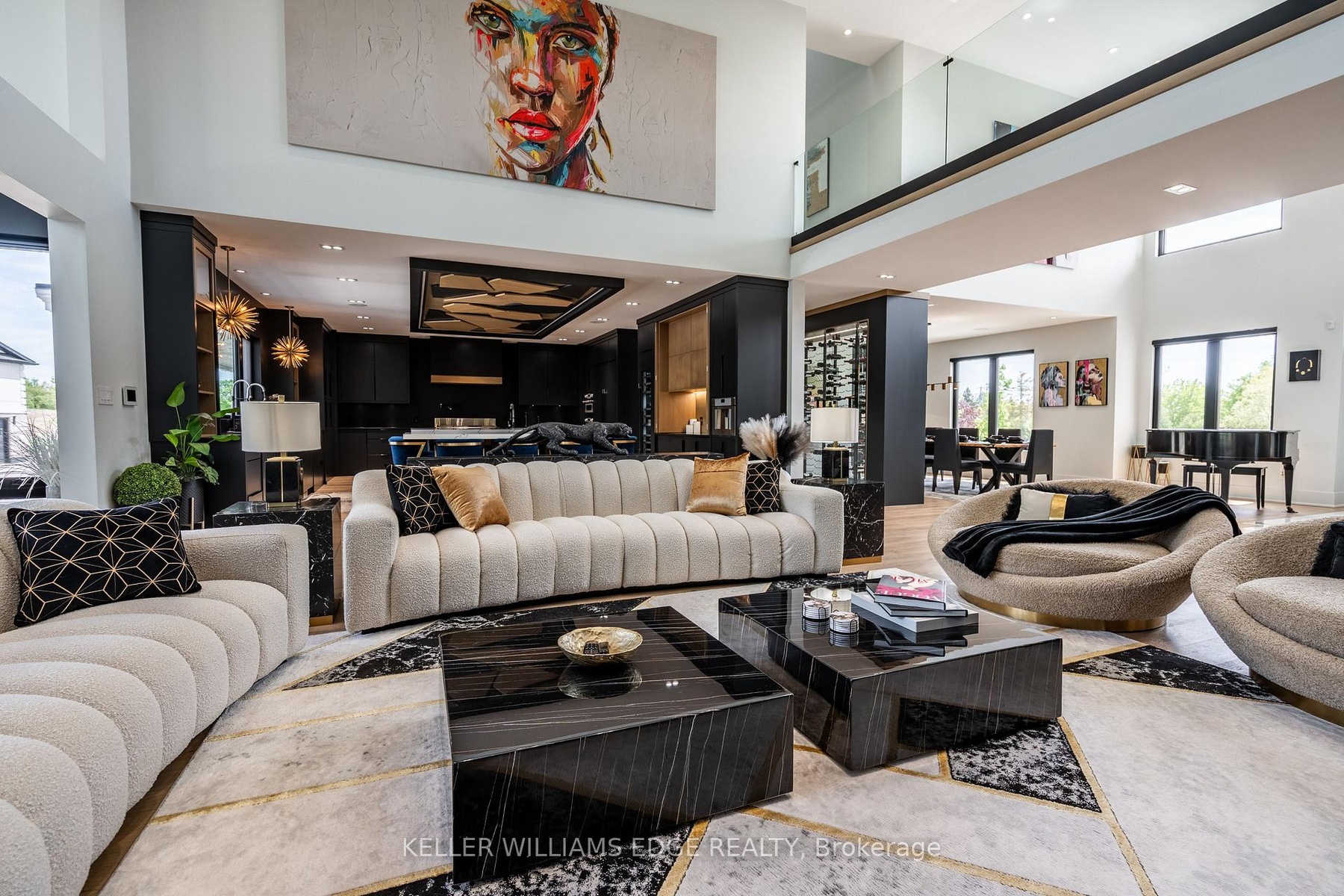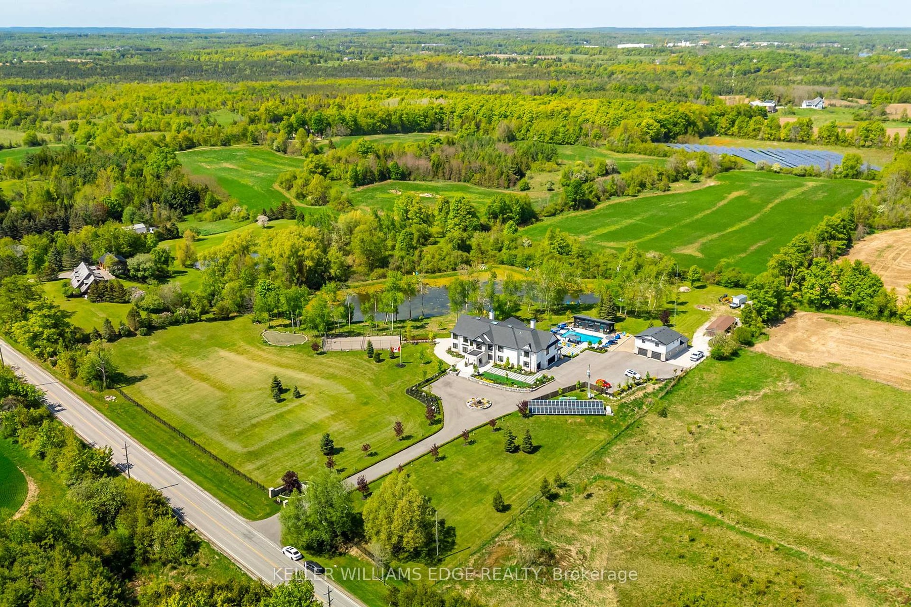 A truly rare offering. Set on 5.76 acres of private, tree-lined grounds, this custom-built estate presents an exceptional opportunity to own a secluded executive retreat minutes from the GTA. Thoughtfully designed and meticulously crafted by its original owners, the residence balances architectural presence with everyday livability, offering space, privacy, & quality that is difficult to replicate. A dramatic 22-foot foyer with a striking floating staircase creates a commanding first impression, while expansive floor-to-ceiling windows frame serene natural views & flood the home with sunshine. The layout is intentionally designed for both grand-scale entertaining and comfortable family living. At the centre of the home is a remarkable chef's kitchen featuring dual oversized islands with seating for up to fourteen, premium appliances, & seamless flow to the sunroom & outdoor kitchen, ideal for hosting, gatherings, & year-round entertaining. This estate offers an extensive collection of resort-style amenities, including a private spa with a 10-person jacuzzi, steam room, & sauna, plus a fully equipped home theatre, gym, games area, & full bar. A private elevator enhances convenience across all levels. Above the garage, a three-bed guest suite provides flexibility for extended family, guests, or live-in support. The outdoor experience is equally impressive: heated saltwater pool, two fire pit areas, tennis & basketball courts, walking trails surrounding a tranquil private pond, & multiple outdoor spaces designed for relaxation and entertaining, all within complete privacy. The property is equipped with solar & geothermal systems, full smart-home integration, & dual septic systems, reflecting a commitment to sustainability, efficiency, & long-term ownership. A rare legacy estate offering privacy, land, & lifestyle without sacrificing proximity to major urban centres. An exceptional opportunity for the discerning buyer seeking space, discretion, & enduring value.