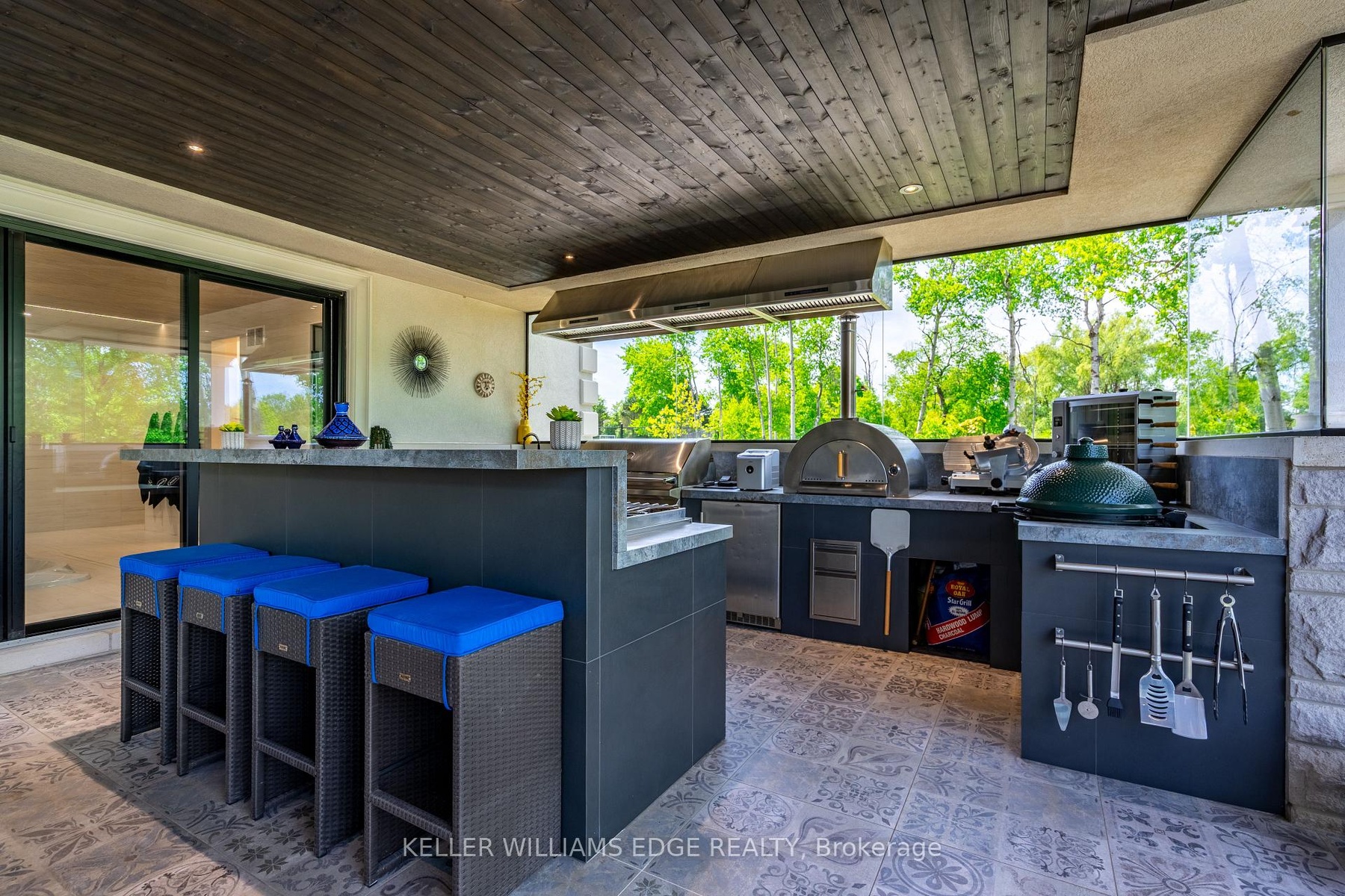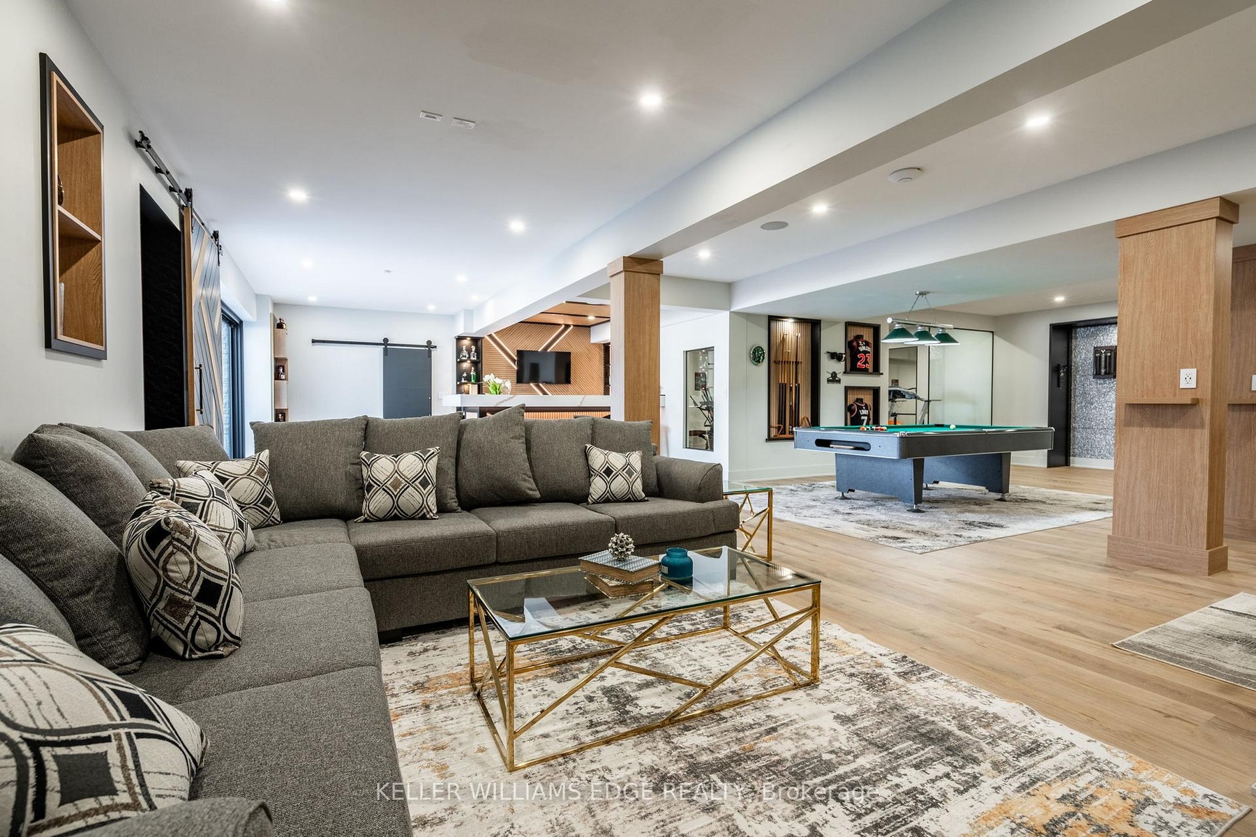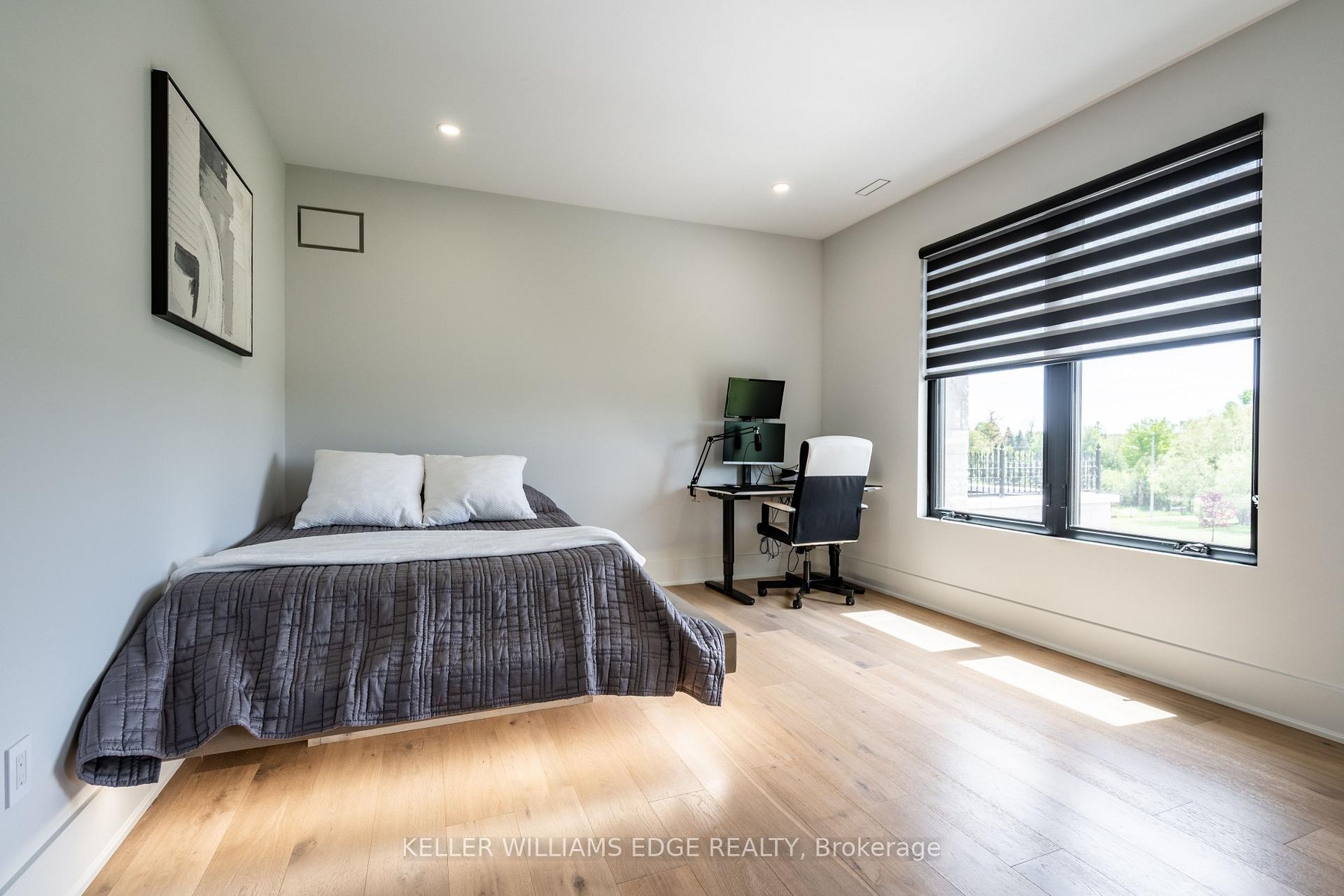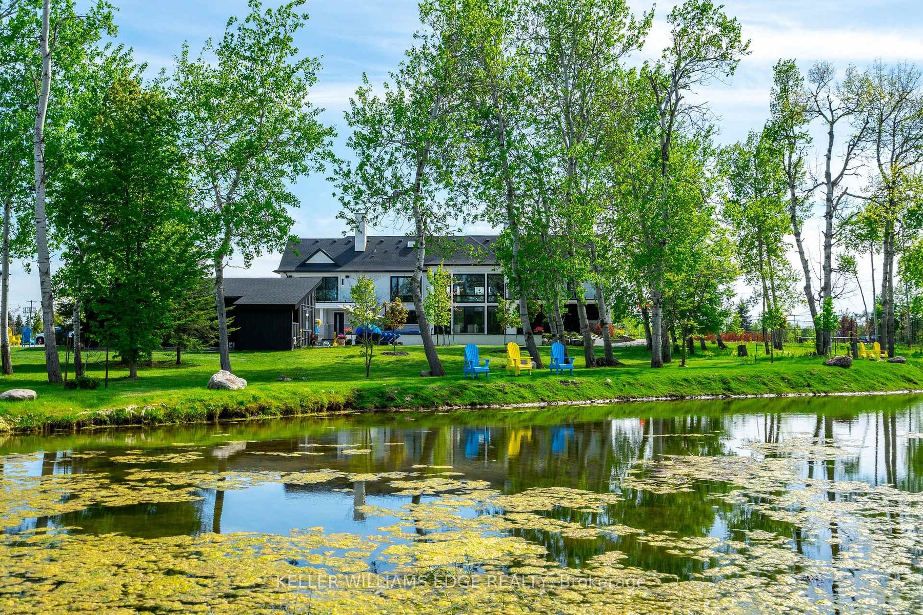 A truly rare offering. Set on 5.76 acres of private, tree-lined grounds, this custom-built estate presents an exceptional opportunity to own a secluded executive retreat minutes from the GTA. Thoughtfully designed and meticulously crafted by its original owners, the residence balances architectural presence with everyday livability, offering space, privacy, & quality that is difficult to replicate. A dramatic 22-foot foyer with a striking floating staircase creates a commanding first impression, while expansive floor-to-ceiling windows frame serene natural views & flood the home with sunshine. The layout is intentionally designed for both grand-scale entertaining and comfortable family living. At the centre of the home is a remarkable chef's kitchen featuring dual oversized islands with seating for up to fourteen, premium appliances, & seamless flow to the sunroom & outdoor kitchen, ideal for hosting, gatherings, & year-round entertaining. This estate offers an extensive collection of resort-style amenities, including a private spa with a 10-person jacuzzi, steam room, & sauna, plus a fully equipped home theatre, gym, games area, & full bar. A private elevator enhances convenience across all levels. Above the garage, a three-bed guest suite provides flexibility for extended family, guests, or live-in support. The outdoor experience is equally impressive: heated saltwater pool, two fire pit areas, tennis & basketball courts, walking trails surrounding a tranquil private pond, & multiple outdoor spaces designed for relaxation and entertaining, all within complete privacy. The property is equipped with solar & geothermal systems, full smart-home integration, & dual septic systems, reflecting a commitment to sustainability, efficiency, & long-term ownership. A rare legacy estate offering privacy, land, & lifestyle without sacrificing proximity to major urban centres. An exceptional opportunity for the discerning buyer seeking space, discretion, & enduring value.