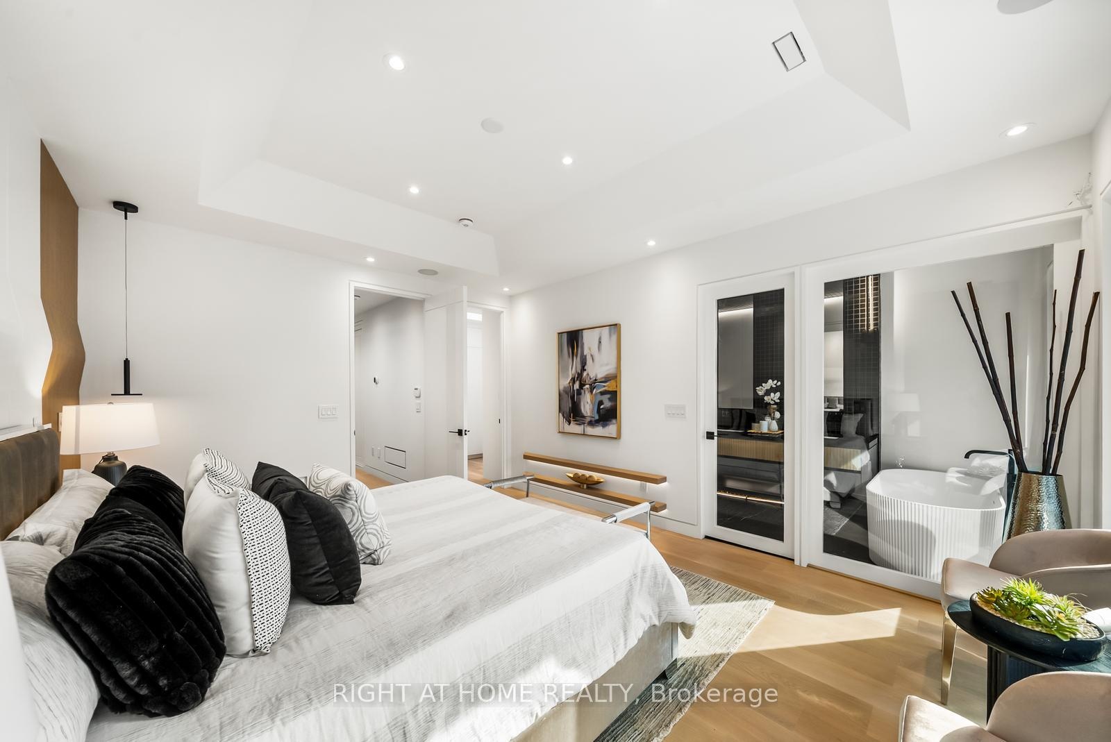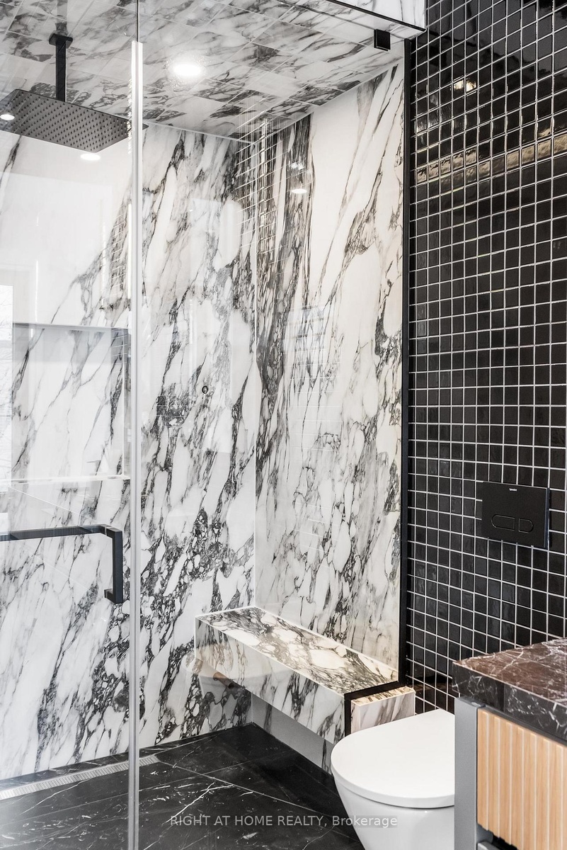 Welcome to 74B Rathnelly Ave - a brand-new, never-lived-in, custom-built luxury home in the prestigious Republic of Rathnelly one of Toronto's most in-demand neighbourhoods, minutes to Yorkville and close to some of the best private and public schools in Canada. A truly rare offering with exceptional design, craftsmanship, and high-end finishes throughout.Featuring German-imported Schüco aluminum windows and doors with triple-glazed glass, wide-plank white oak flooring, and a sleek trimless modern design with drywall-groove detailing. Impeccable interior detailing includes custom wall paneling and millwork, a statement mono-beam staircase, glass railings throughout, and upgraded strip lighting/fixtures.Chef's kitchen with custom-painted cabinetry, premium Sub-Zero & Wolf appliances, and natural stone countertops including Super White. Natural stone carries throughout the home (vanities, basement bar, fireplace), highlighted by a dramatic triple-sided marquee fireplace. Spa-inspired bathrooms feature CariMali Italian fixtures and wall-hung Duravit toilets, plus Italian tile and slab finishes with a strong focus on the Italian-slab basement.Enjoy a two-level, double-height heated basement with large rec room and bar area. Exterior impresses with high-quality linear brick wrapping the sides/rear/walkout, extensive interlock (including interlock driveway), and a standout snow-melt heated driveway, front porch, and rear walkout. Entertain on the composite deck and enjoy a large backyard rarely found in the area. Integrated heated garage (extremely rare in the neighbourhood), two furnaces + two A/C systems, high-efficiency spray-foam insulation, and smart security/speaker and central vacuum system.