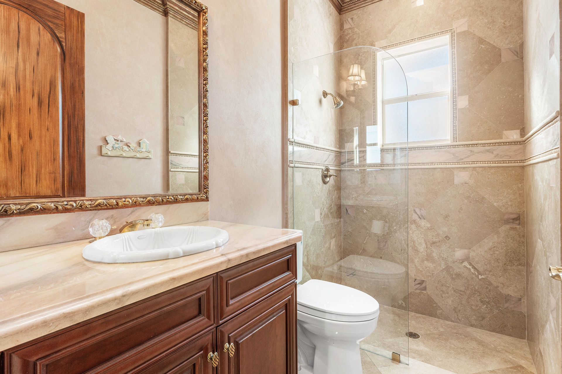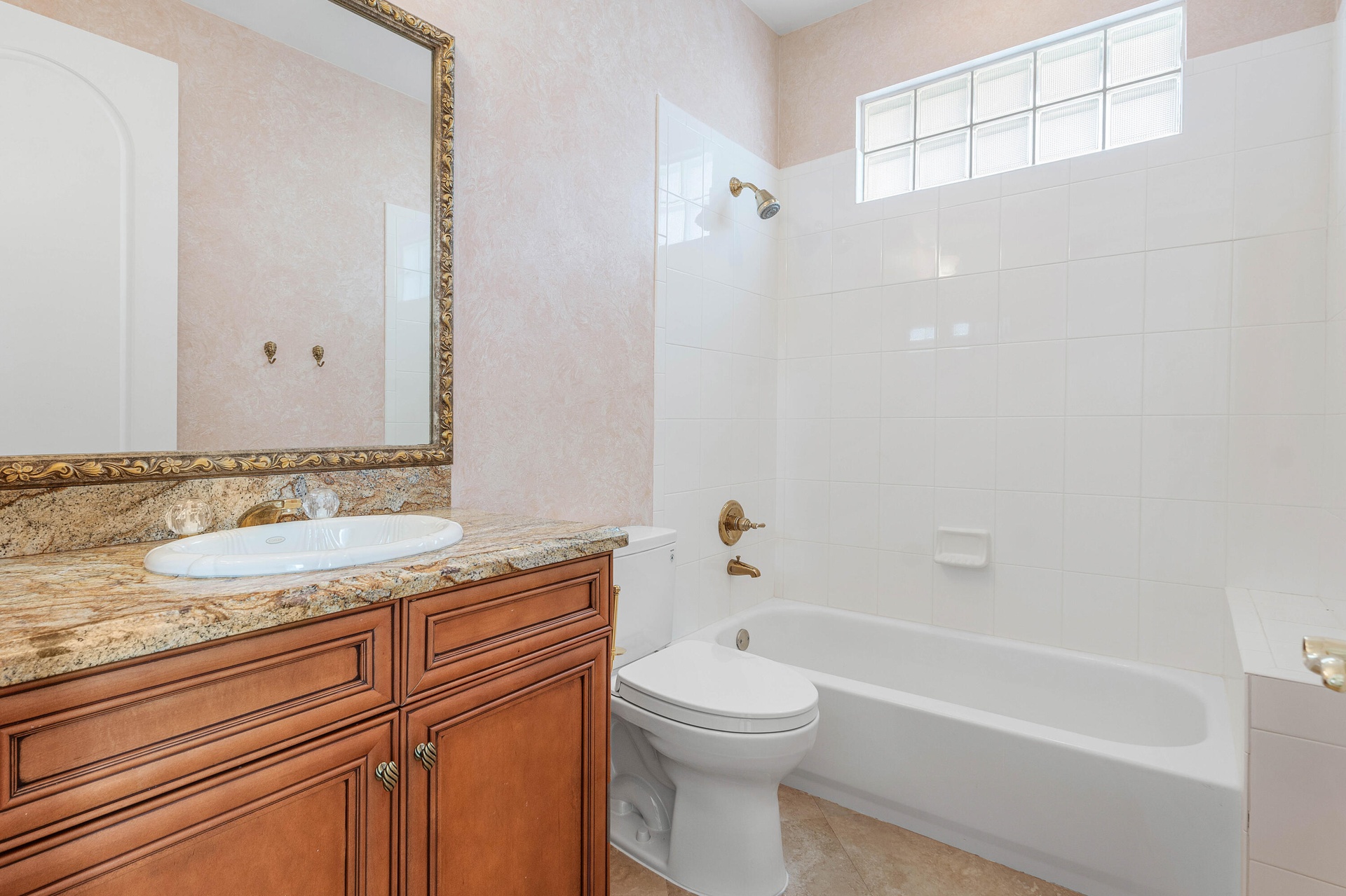 This exceptional 4 Bedroom, 4.1 Bath Home in Mizner Country Club has immediate Golf Equity Available! This beautifully maintained 4-bedroom, 4.1-bath residence is perfectly situated on an expanded lot, offering both privacy & elegance. With immediate Golf Equity available for purchase, this is an exceptional opportunity to step into the country club lifestyle. Enter to find gorgeous marble floors throughout, creating a seamless flow. The home features impact glass windows at the front & accordion hurricane shutters in the rear, & a whole-house 48K generator. This home also features an expanded driveway for added convenience, newer A/C units (none older than 4 years), & perimeter surveillance cameras for enhanced safety. The downstairs guest suite/office includes additional windows, bringing in natural light & offers an inviting space for visitors. Enjoy upgraded finishes throughout, including all new commodes & a well-appointed layout that balances open-concept entertaining spaces with private retreats. Mizner Country Club offers resort-style living w/an 18-hole golf course, tennis & pickleball courts, a fitness center, pilates, spa, resort style pool, kids splash area, & dining venues. Active social calendar w/events for all ages. There is 24/7 security, beautifully landscaped grounds, and family friendly amenities.