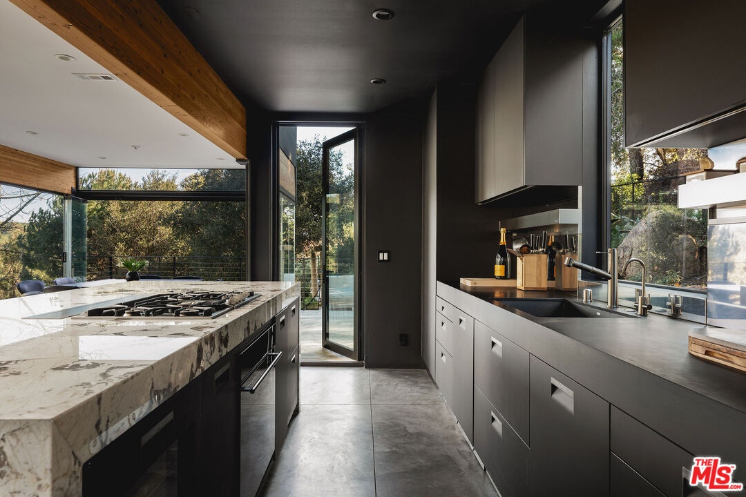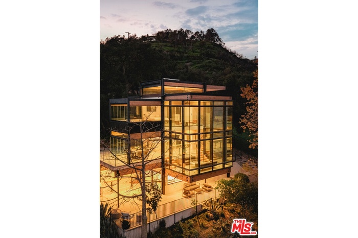 A striking expression of Southern California modernism, 2315 Live Oak Meadows Road is a rare architectural residence designed by Finn Kappe, set on an acre in the secluded hills of eastern Malibu. Framed by mature oaks and canyon terrain, the glass-wrapped home offers an exceptional sense of privacy, light, and connection to nature-while remaining remarkably accessible, just a six-minute drive down Las Flores Canyon to PCH, Malibu's beaches, and the area's most sought-after dining and lifestyle destinations. Walls of glass, dramatic volumes, and layered indoor-outdoor spaces define the home's architecture. Natural light moves throughout the residence, capturing canyon and hillside views and reinforcing a seamless dialogue between the interior and its natural surroundings. Multiple terraces, decks, and outdoor living areas extend the home into the landscape, creating an environment that feels both expansively open and deeply private. The residence is currently configured as two bedrooms and three bathrooms, arranged in an open, modern layout ideal for both everyday living and entertaining. The main living spaces are anchored by a custom Arclinea kitchen with bespoke Gaggenau appliances and a sculptural marble block island, opening directly to a custom deck and outdoor entertaining areas. Concrete floors with radiant heat, integrated lighting, and immersive audio-visual systems support a refined yet relaxed living experience. The home underwent a comprehensive down-to-the-studs renovation in 2018, preserving its architectural integrity while integrating modern systems and curated finishes. Improvements include commercial-grade glazing throughout, a new roof, new electrical and plumbing systems, all-new septic plumbing, re-imagined bathrooms with custom slab and tile work, custom interior and exterior railings, an oversized pivot entry door, a full Lutron lighting system, a dedicated home theater, embedded speakers, and dual-zone HVAC. All interior and exterior wood surfaces were professionally sanded and re-stained. The fully fenced acre features a gated drive, landscaped grounds, and a collection of mature trees and plantings that reinforce the home's peaceful, retreat-like setting. The property also offers potential opportunities for a future swimming pool and for conversion of the existing carport into a garage or possible guest house (buyer to verify). Tucked away in a quiet hillside enclave yet moments from Carbon Beach, Nobu, Soho House, and central Malibu, 2315 Live Oak Meadows Road presents a rare opportunity to own a true architectural residence where design, landscape, and location converge.