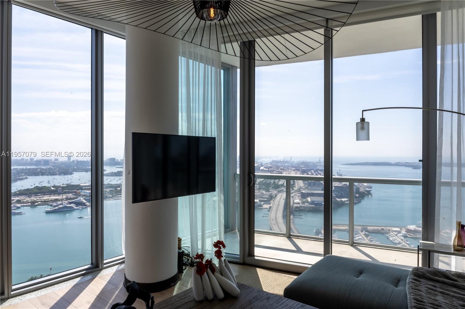 Experience Marina Blue’s coveted 08 line, known for its sweeping, unobstructed views spanning Sunny Isles, Miami Beach, Key Biscayne, Edgewater, Brickell, and Downtown Miami. One of only three residences crowning the building’s uppermost waterfront tier, this high-floor home offers a rare panoramic vantage point seldom available.