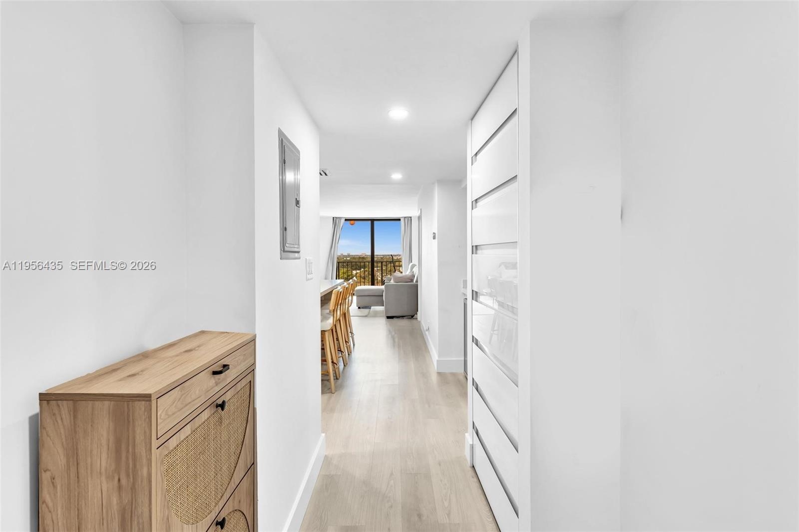 Upgrades of $200K+. #1109 displays classic lines, mono-neutral tones and products to endure time. Samsung appliances, tankless water heater and AC <2 years old; Insigna wine cooler. New electric panel w/ 95% new electrical; all new plumbing; Impact doors, engineered white oak wood floor. Bike storage in basement level for 2 bikes; add'l unit storage 6th floor; Ammenities include 2nd floor activities room with billiards, ping pong, clubhouse, community room. 1 covered pkg; B17+ visitor parking; laundry on unit floor (W-D not allowed in units). WIFI included in HOA. Parking garage improvements wrapping up. 90 day rentals allowed. ESA/Service Animals WELCOMED. Promenade Beautification Planning is underway by City MB. No assessments. Call LA, 24 hr notice. Appts only.