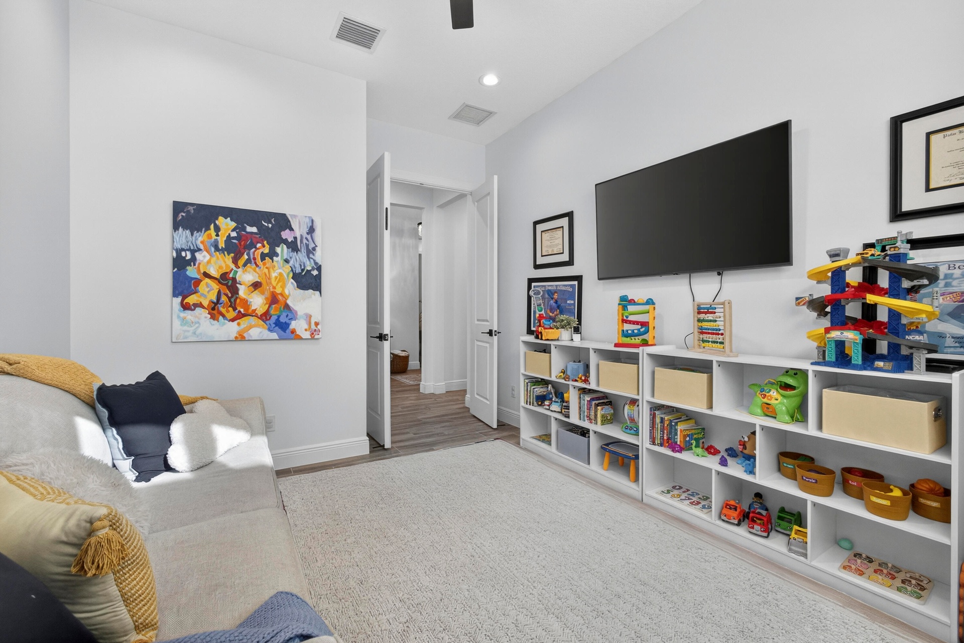 If you're searching for a fully upgraded, move-in-ready home where every detail has been thoughtfully considered, 12676 Nautilus Circle delivers a truly turnkey living experience in one of Palm Beach Gardens' most desirable communities. This beautifully upgraded 3-bedroom, 2.5-bath residence with a dedicated office/den is located in the sought-after community of Avenir Palm Beach Gardens and offers refined finishes and meaningful enhancements throughout. The open-concept layout is enhanced by custom window treatments, custom hardwood wainscoting in the dining room, and a well-designed kitchen with ample storage, under-cabinet lighting, and subtle statement finishes. Designer light fixtures from RH, Pottery Barn, and Arhaus elevate the home's aesthetic, while custom storage solutions are thoughtfully integrated throughout. The living spaces are further complemented by built-in in-ceiling speakers in the living room and exterior Sonance speakers, creating a seamless environment for everyday living and entertaining. The primary suite serves as a relaxing retreat with custom his-and-hers closets and a well-appointed bath. Step outside to a private backyard oasis featuring a stunning marble infinity-edge pool with electric heater, low-maintenance turf, and extensive upgraded landscaping surrounding the property. The covered lanai includes a retractable solar screen and a fully built-in summer kitchen with quartzite countertops, grill, trash pullout, and beverage refrigeratorideal for effortless indoor-outdoor living. Further enhancements include a 24KW Generac whole-house generator, epoxy-coated garage floors with functional storage and fitness space, a fully fenced backyard with an extended fence line, and numerous other thoughtful upgrades throughout. Residents enjoy access to Avenir's impressive East Clubhouse, featuring a resort-style pool, state-of-the-art fitness center, tennis and pickleball courts, and beautifully designed social spacesdelivering an exceptional Palm Beach Gardens lifestyle.