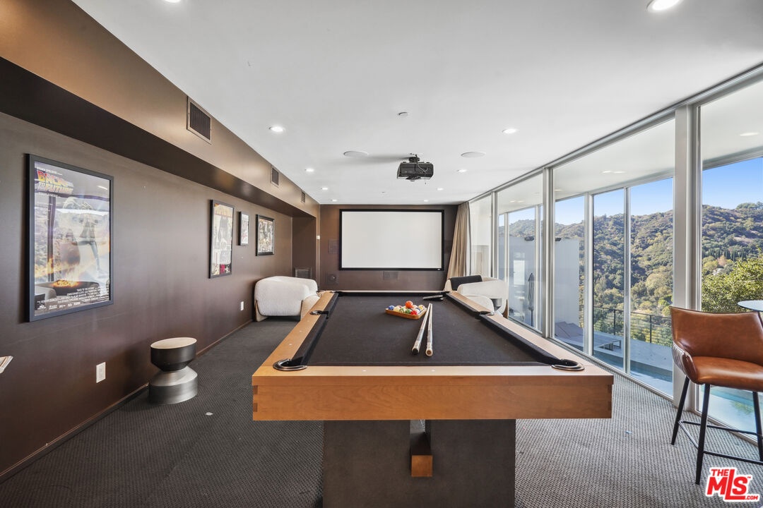 Suspended above the city within one of Beverly Hills' most exclusive, celebrity-favored gated enclaves, 9716 Oak Pass Road is a striking contemporary estate offering exceptional privacy, architectural distinction, and breathtaking panoramic views. The community is gated, and the residence itself is further secured behind its own private gate and drive, creating a rare and dramatic sense of arrival. Spanning approximately 6,244 square feet across three dramatic levels, this modern sanctuary is wrapped in walls of glass that capture canyon vistas from nearly every room, delivering a seamless indoor-outdoor lifestyle throughout. A signature architectural highlight is the glass-enclosed skybridge hallway suspended above the infinity-edge pool, serving as a sculptural centerpiece on the main level and elevating the home to true statement-level design. The residence offers a total of four bedrooms, including an expansive and private primary suite retreat with commanding views, oversized walk-in closets, and a spa-inspired bath. Three additional guest bedroom suites provide exceptional comfort and privacy. Designed for both refined daily living and elevated entertaining, the home features a gourmet chef's kitchen, sophisticated formal and informal living areas, a private executive office anchored by a dual-sided fireplace, and a dedicated private theatre/media room. Multiple view terraces and decks extend the living experience outdoors, while the floating infinity-edge pool appears to merge with the skyline, creating a resort-style setting high above Beverly Hills. Set among notable neighbors within an elite and discreet hillside enclave, this exceptional contemporary residence delivers a rare combination of privacy, prestige, and iconic architecture on one of Beverly Hills' most coveted streets.