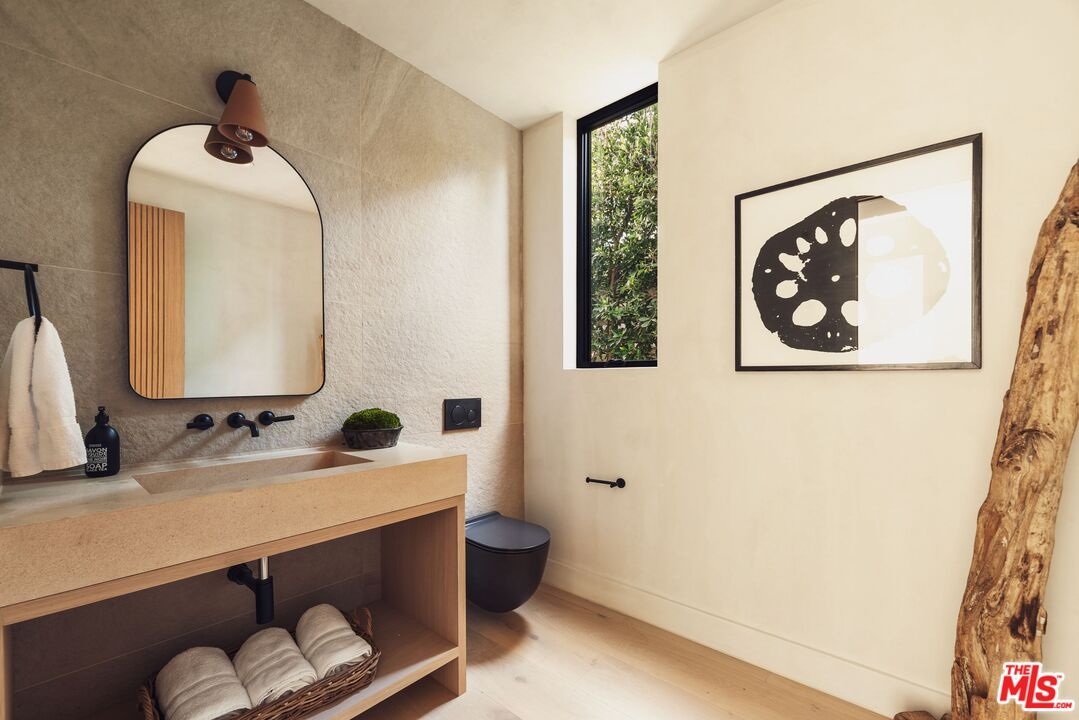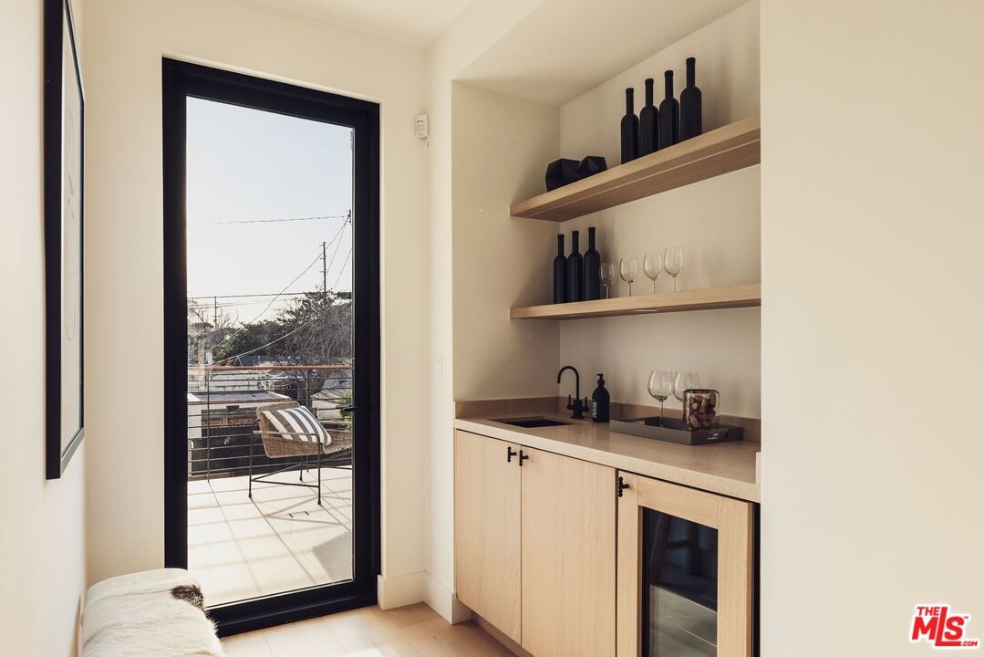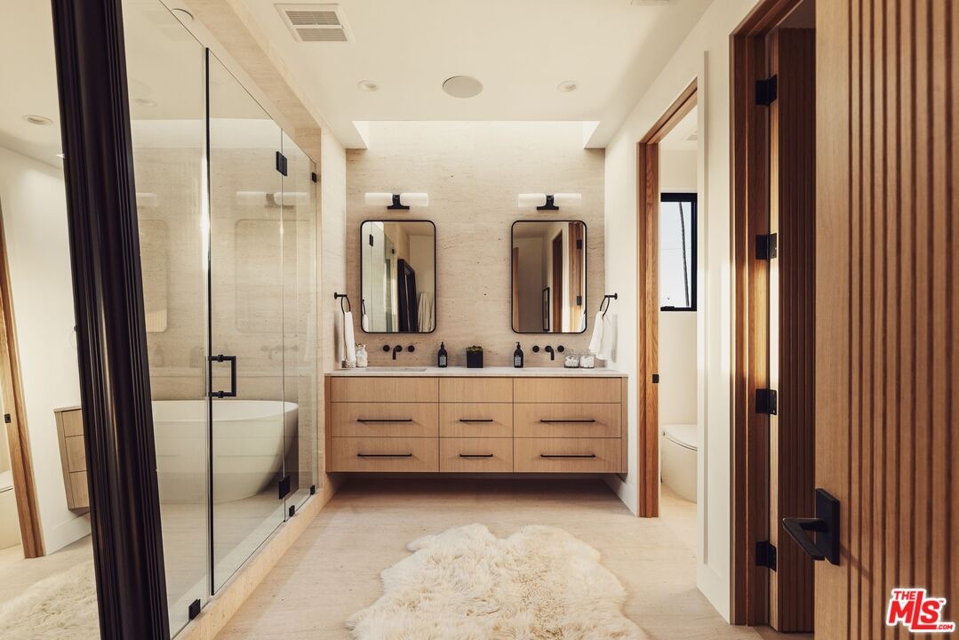 Located in the highly desirable east of Lincoln neighborhood in Venice, this quiet, tree-lined enclave is one of the Westside's most coveted residential pockets, offering rare privacy just moments from the coast. Designed for modern coastal living, this newly constructed residence blends warm organic materials with clean architectural lines to create a relaxed yet elevated atmosphere only blocks from the beach. A dramatic entry opens to a light-filled open layout with oversized Italian porcelain flooring, a media lounge, formal dining area, and a chef's kitchen featuring Wolf and Sub-Zero appliances, custom cabinetry, a walk-in pantry, and an oversized island anchoring the fireplace-adjacent living space. Expansive retractable glass doors open seamlessly to a resort-style backyard with a custom pool and spa, built-in outdoor dining, and a detached guest house with corner pocket doors ideal for a studio, office, gym, or guest retreat, all surrounded by mature ficus hedges for exceptional privacy. Floating French oak stairs lead to a sun-drenched primary suite with a private terrace, spa-inspired bath, custom bar, and a sleek European-style walk-in closet, while three additional en-suite bedrooms, a central lounge, and a laundry room complete the upper level. Thoughtfully curated with high-end designer finishes throughout, this smart home features integrated lighting, sound, security, and climate systems along with energy-efficient infrastructure for modern living. Set on a rare oversized lot near Abbot Kinney, Rose Avenue, Erewhon, and the Venice Boardwalk, the home seamlessly balances architectural distinction with coastal convenience, offering a refined setting for both entertaining and everyday living.