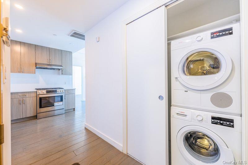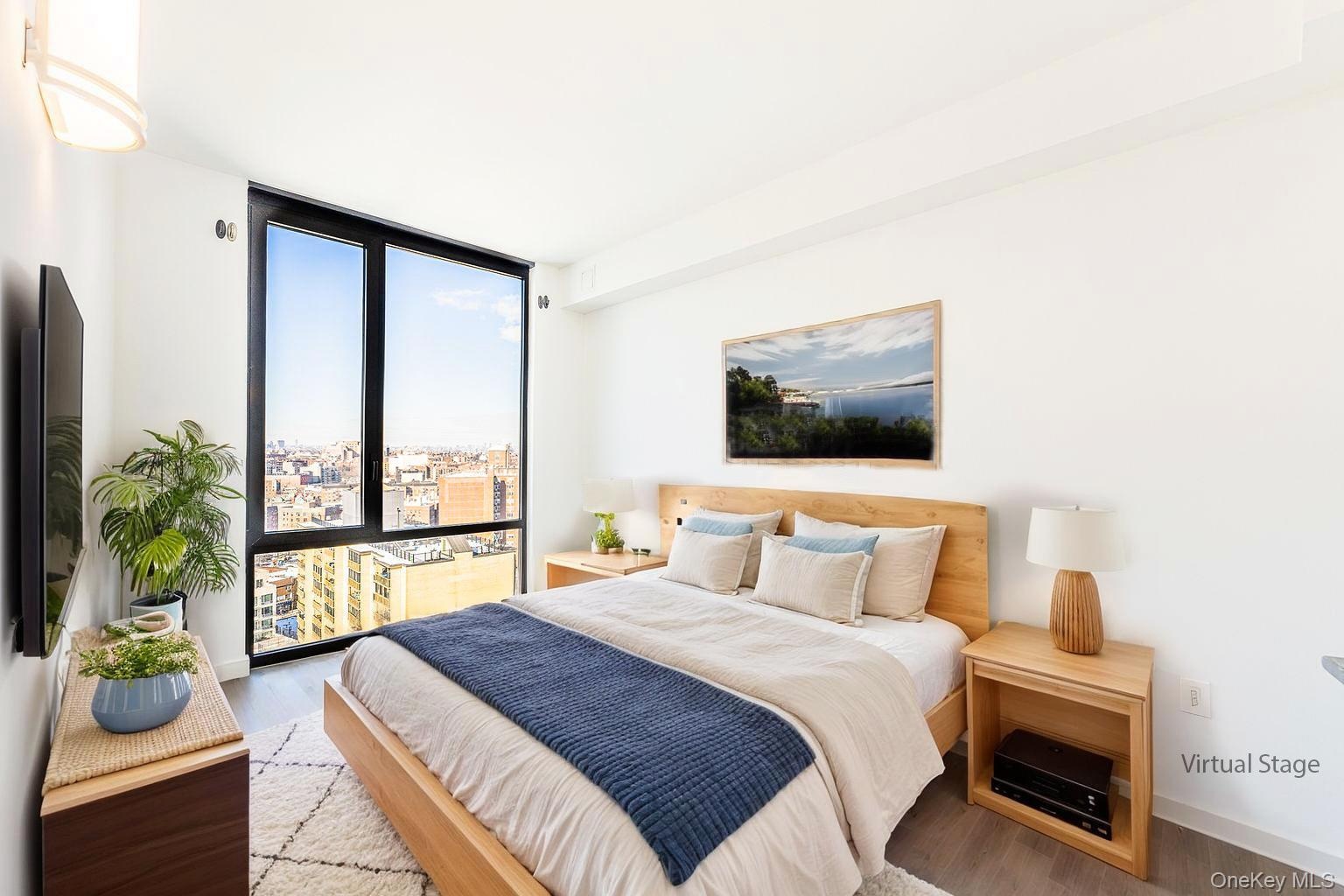 This well-proportioned two-bedroom residence features a highly functional layout, with the private living and work space thoughtfully separated from the kitchen and bathroom. Situated on a high floor, the unit offers floor-to-ceiling windows, a skyline city exposure, abundant natural sunlight, and open, unobstructed views. The building enjoys an exceptional location. Just one block away are multiple bus and subway lines (Q88, Q58, M & R trains). It is only a few blocks from Queens Center Mall, Costco, IKEA, Target, and other major retail destinations. Surrounded by restaurants, supermarkets, and schools, the neighborhood offers outstanding convenience for daily living. The unit features a modern design with oversized floor-to-ceiling windows, high ceilings, LED lighting, and a spacious private balcony. The interior is finished with brand-new hardwood floors throughout. The contemporary kitchen is equipped with stone countertops, Bosch appliances, and a dishwasher. Additional highlights include an energy-efficient central air conditioning system with digital thermostat, as well as an in-unit washer and dryer. All utilities are included except electricity. Small pets are allowed. Building amenities include doorman, elevators, fitness center, rooftop terrace, bicycle storage, and on-site parking.