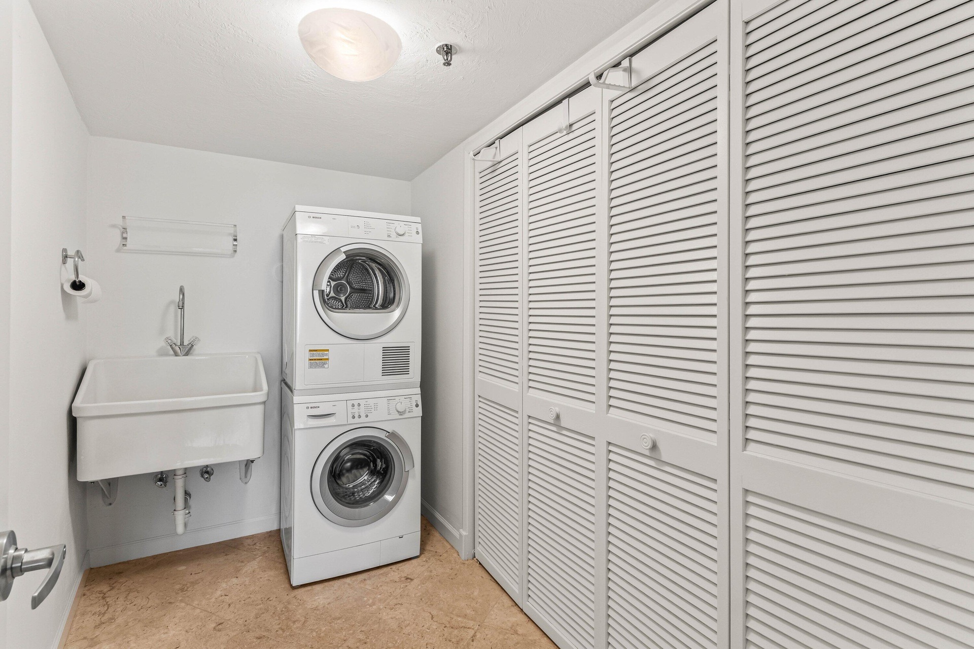 Waterfront home with direct views of the Atlantic Ocean and Intracoastal from all main rooms. Spacious 3BR/2.5BA condominium encompasses 2,119 square feet with east and west exposures. Corner residence features 2-private wraparound balconies with sunrise to sunset vistas. Renovation includes updates throughout with impact glass, travertine flooring, fresh paint and carpet. Gourmet open kitchen showcases quality cabinetry, stone countertops and stainless-steel appliances. The 3360-building provides 24-hour doorman, onsite manager and garage parking. Resort-like amenities include beach access, saltwater pool, tennis courts and fitness center. Short distance to Par 3 golf. Recently completed concrete restoration assessment including numerous building upgrades was paid by the seller.