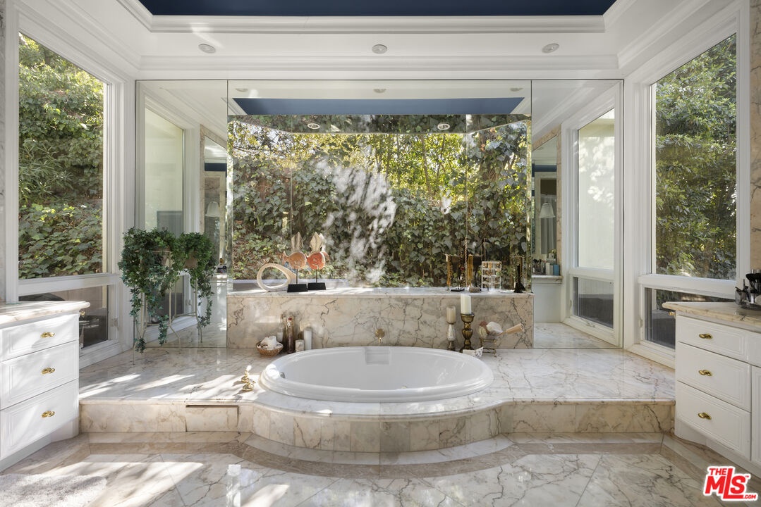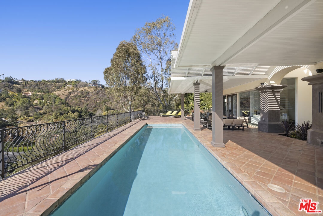Tucked away on a secluded driveway, this stunning home offers a perfect blend of elegance, privacy, and convenience. Situated just minutes from Westwood Village, Beverly Hills, and major freeway access, this property is a serene oasis that offers it all. The residence boasts an open floor plan with soaring high ceilings and expansive floor-to-ceiling windows that frame breathtaking views of the mountains, city, and a beautifully landscaped backyard with a pool and spa. The formal living room, complete with a cozy fireplace, seamlessly flows into a casual family room off the kitchen, creating ideal spaces for both entertaining and everyday living.The modern kitchen features a central island, top-of-the-line appliances, and a bright eating area, making it a chef's delight. A grand formal entry and a stylish powder room enhance the luxurious ambiance. Each bedroom is equipped with its own ensuite bathroom, including the master suite, which offers a fireplace, a spa-inspired master bath with a Roman-style sunken tub, and a peaceful retreat feel. Additionally, this property includes two separate ADUs (Accessory Dwelling Units) that can be incorporated into the lease, offering versatility for guests, office space, or extended family. With a two-car garage and ample guest parking, the home ensures both convenience and comfort. This Bel Air property offers unparalleled privacy and sophisticated living.