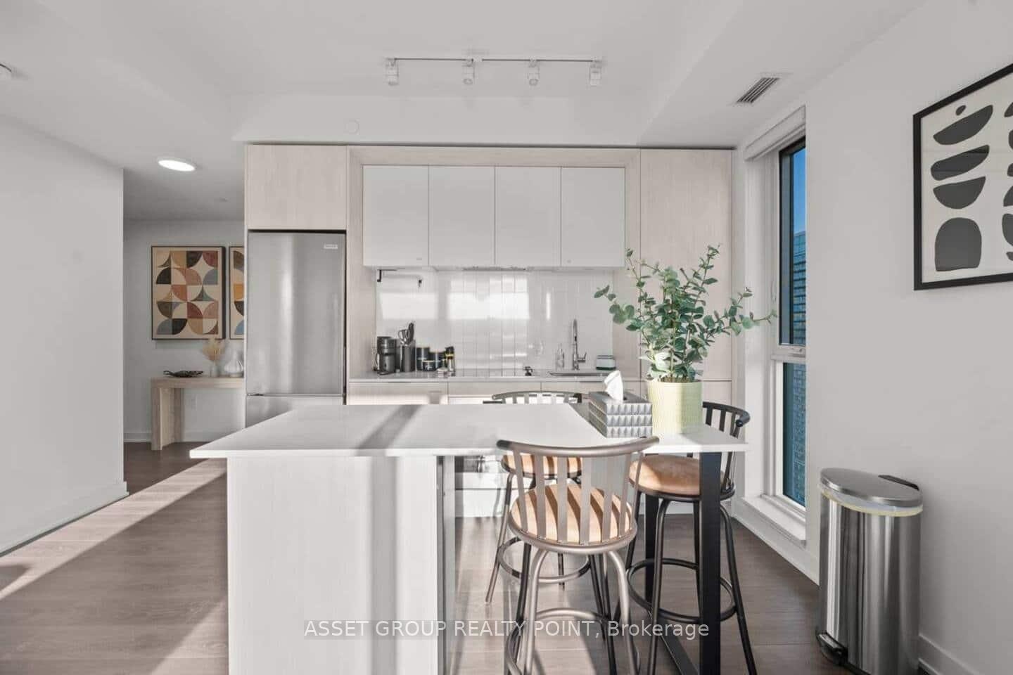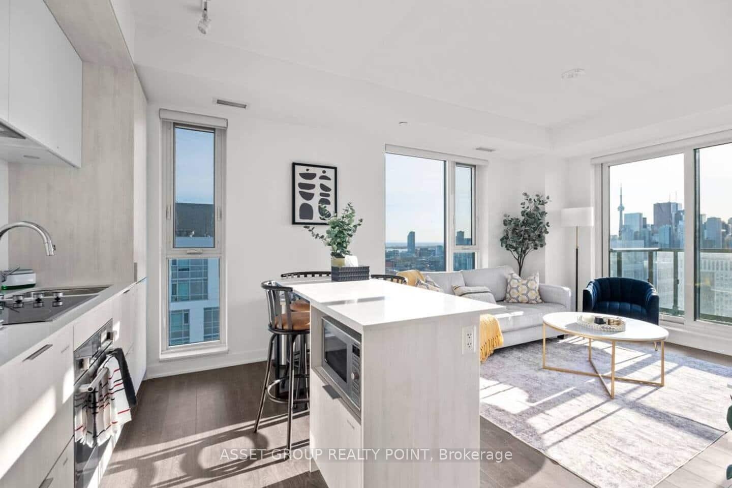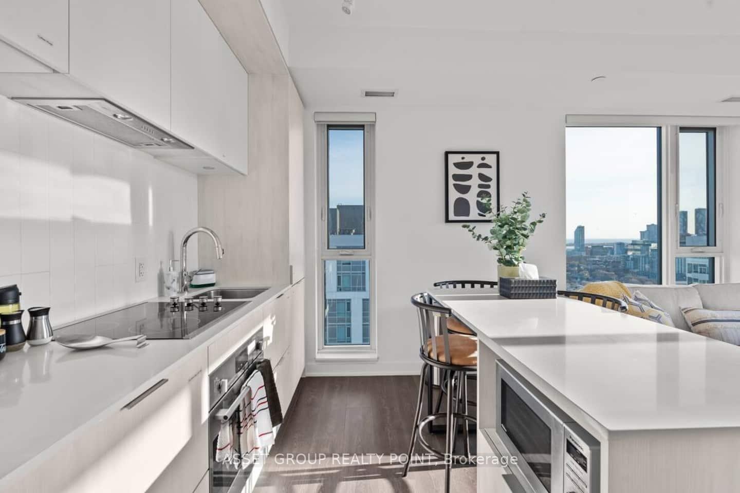 Welcome to 130 River St #2803, a FULLY FURNISHED 2-bedroom, 2-bath corner suite offering panoramic southwest views of Toronto's skyline and lake. Floor-to-ceiling windows, 9' ceilings, and refined finishes create a bright, modern atmosphere. The open kitchen features quartz countertops, built-in stainless-steel appliances, and elegant cabinetry-perfect for cooking or entertaining.Relax in the primary bedroom with a private ensuite and mirrored closets, or step onto your spacious balcony to unwind with sunset views. Enjoy the convenience of 1 parking, 1 locker, and resort-style amenities including a fitness centre, rooftop terrace, co-working lounge, and 24-hour concierge.With the Dundas streetcar and DVP at your doorstep, plus Riverdale Park and downtown's best just minutes away, this suite blends sophistication, comfort, and city living at its finest.