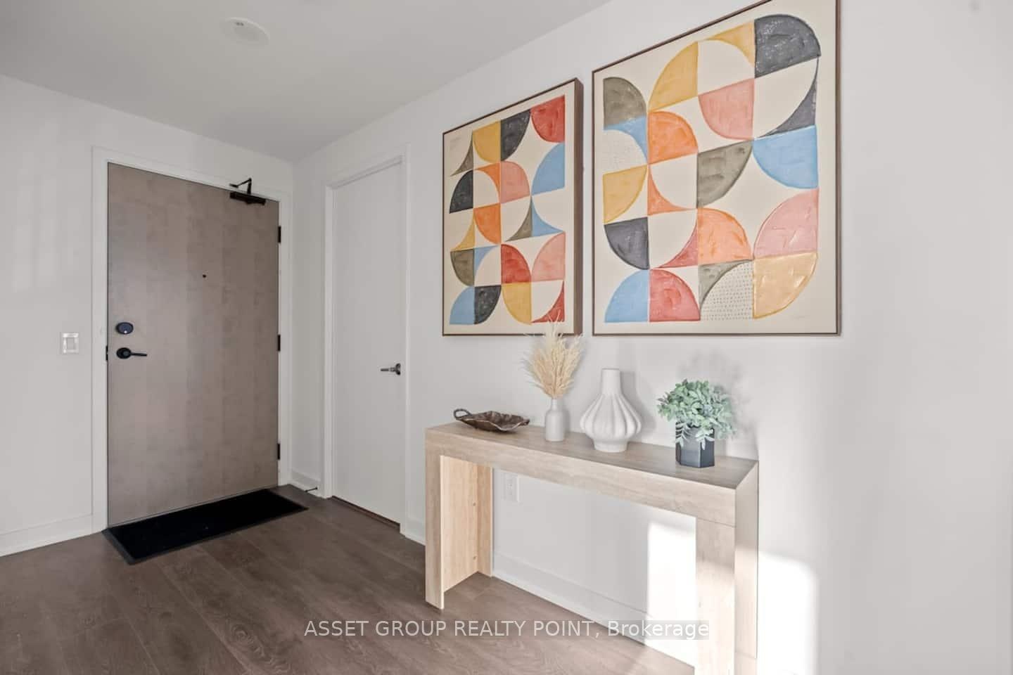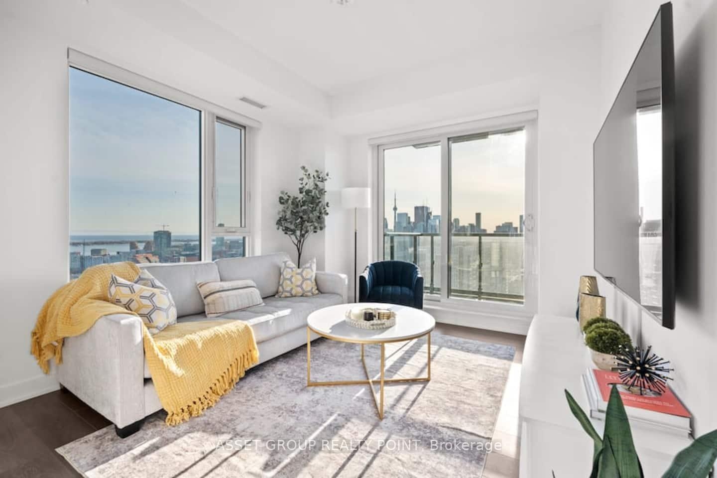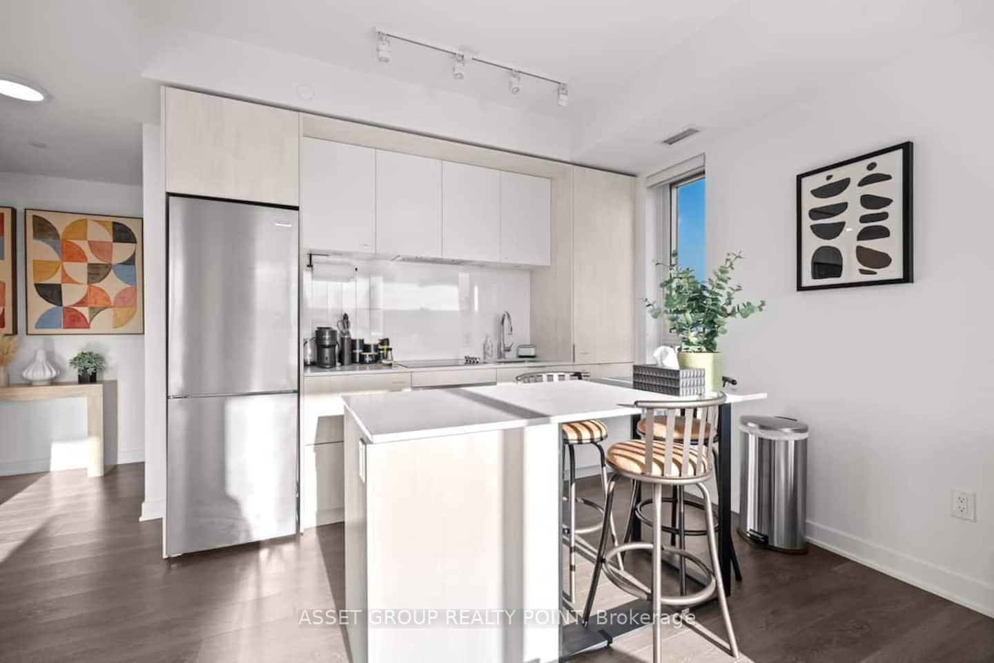 Welcome to 130 River St #2803, a FULLY FURNISHED 2-bedroom, 2-bath corner suite offering panoramic southwest views of Toronto's skyline and lake. Floor-to-ceiling windows, 9' ceilings, and refined finishes create a bright, modern atmosphere. The open kitchen features quartz countertops, built-in stainless-steel appliances, and elegant cabinetry-perfect for cooking or entertaining.Relax in the primary bedroom with a private ensuite and mirrored closets, or step onto your spacious balcony to unwind with sunset views. Enjoy the convenience of 1 parking, 1 locker, and resort-style amenities including a fitness centre, rooftop terrace, co-working lounge, and 24-hour concierge.With the Dundas streetcar and DVP at your doorstep, plus Riverdale Park and downtown's best just minutes away, this suite blends sophistication, comfort, and city living at its finest.
