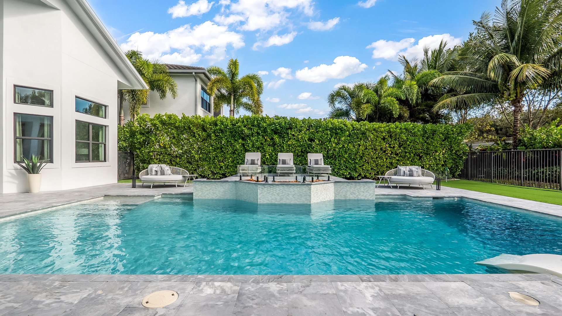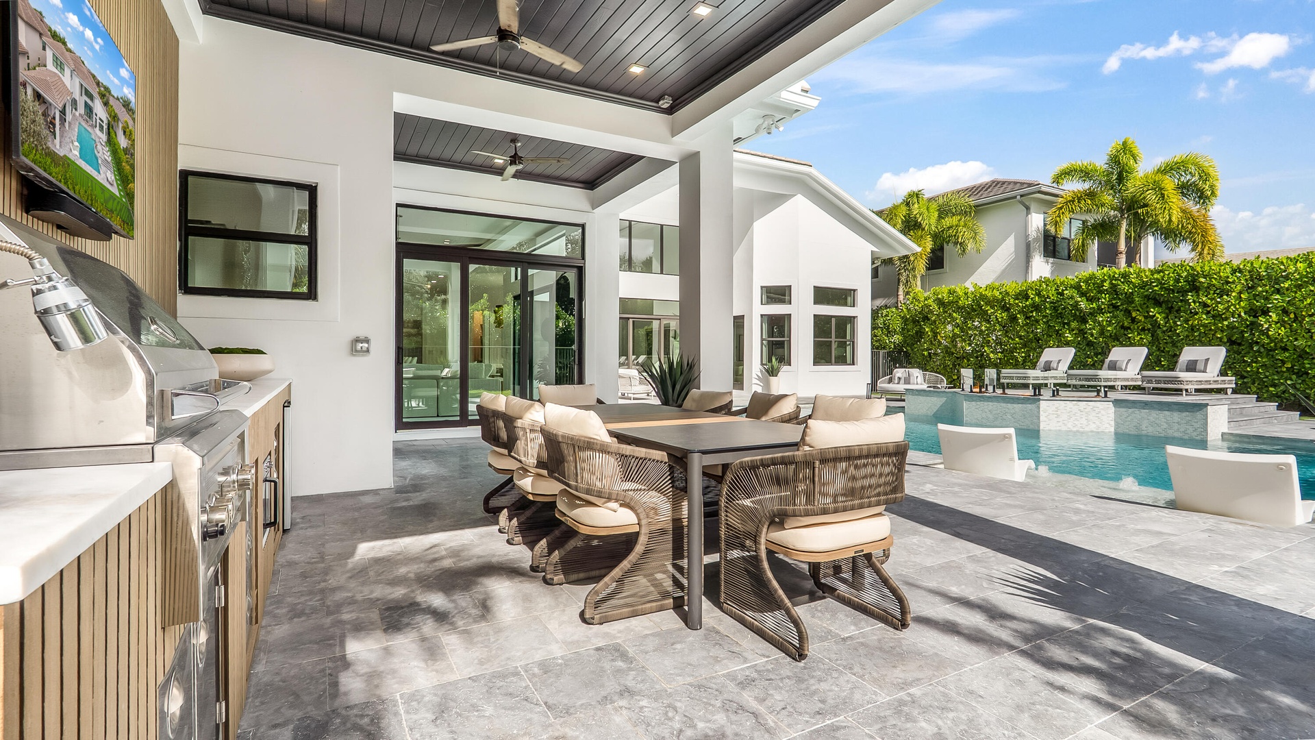 The backyard is a true resort style oasis, perfectly positioned on an extremely private south facing lot with no rear neighbors. Designed for entertaining and relaxation, the outdoor space features a fully upgraded pool, an expanded covered summer kitchen with grill and pizza oven, outdoor fireplace, putting green, new turf, lush landscaping, and a full exterior lighting package. Whether hosting gatherings or enjoying quiet evenings, this backyard delivers the ultimate Florida lifestyle.