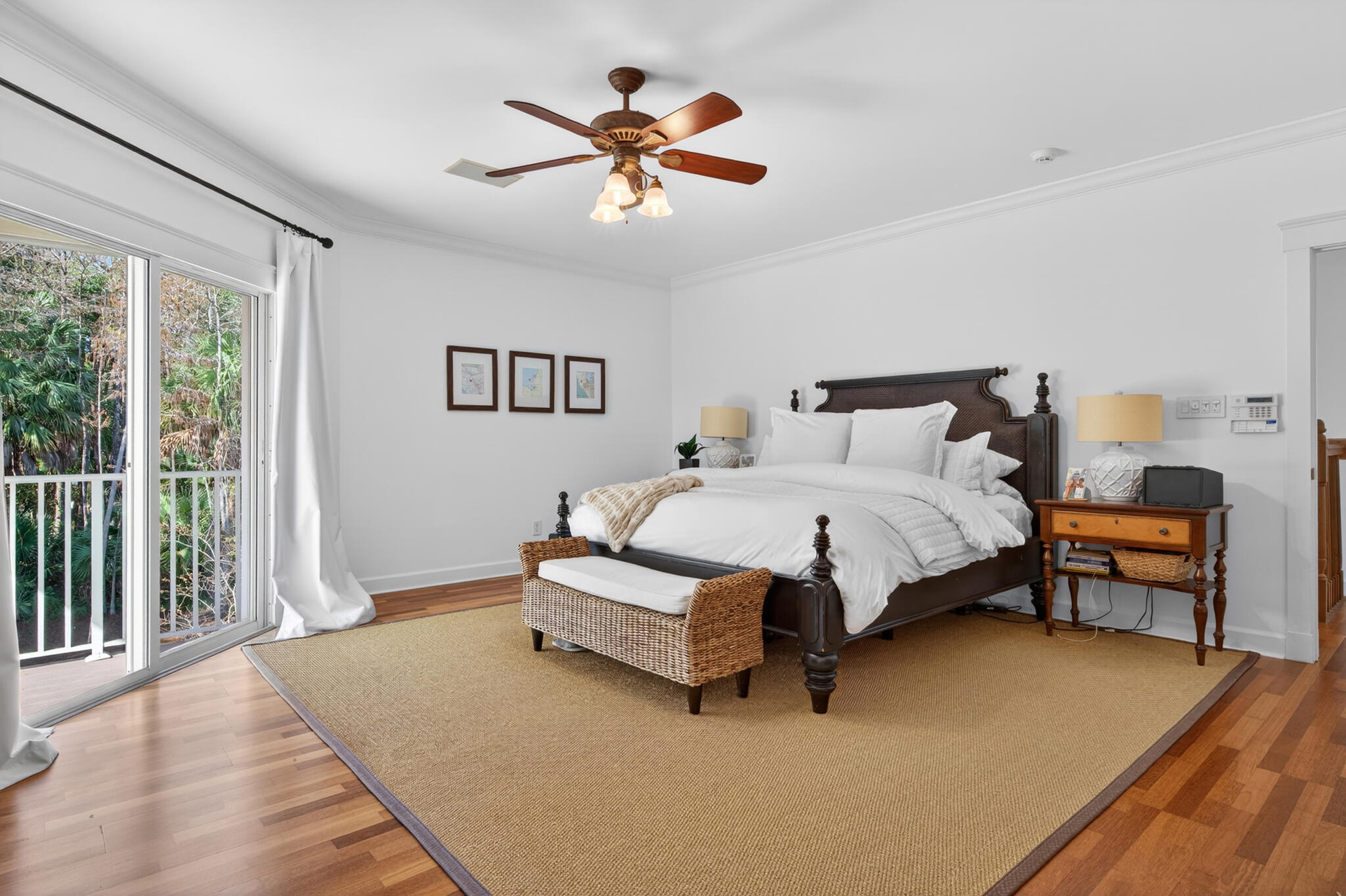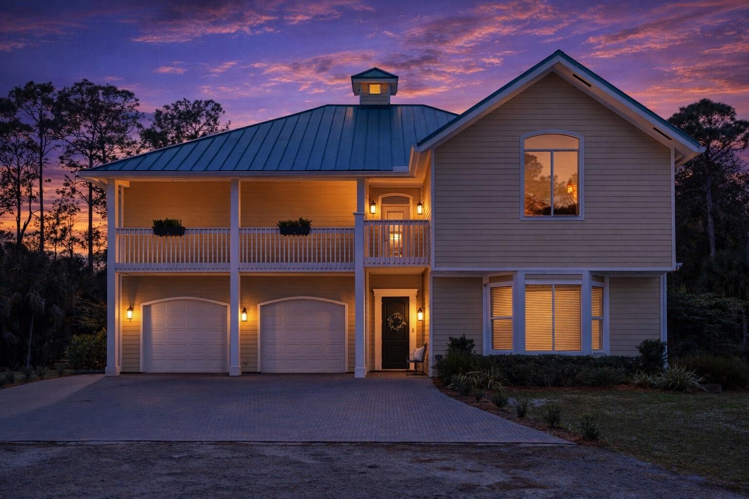 The home's striking exterior, featuring a metal roof and multiple balconies — makes a memorable first impression. Inside, soaring ceilings, rich hardwood flooring, and an abundance of natural light create an open, airy atmosphere that feels both luxurious and welcoming.