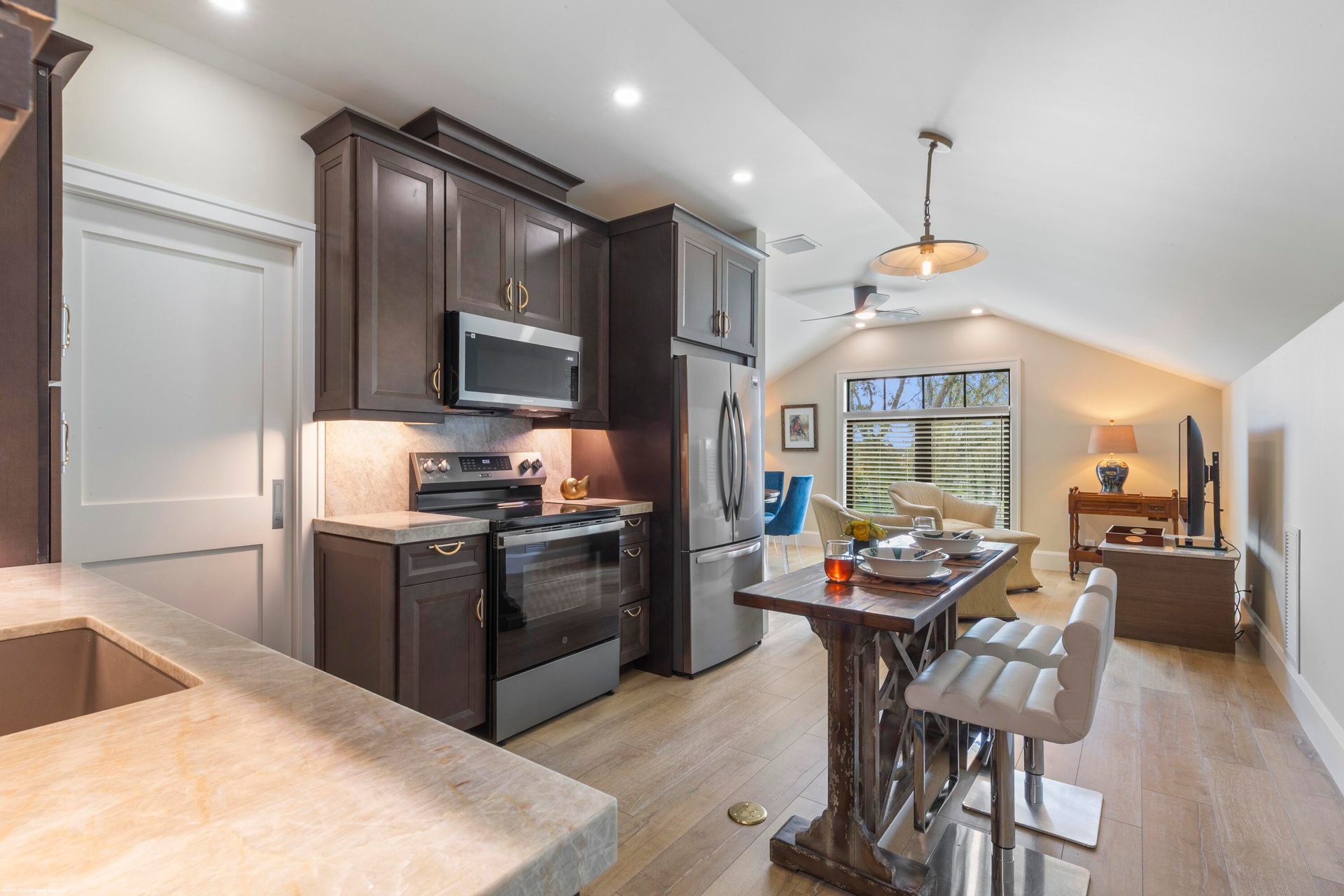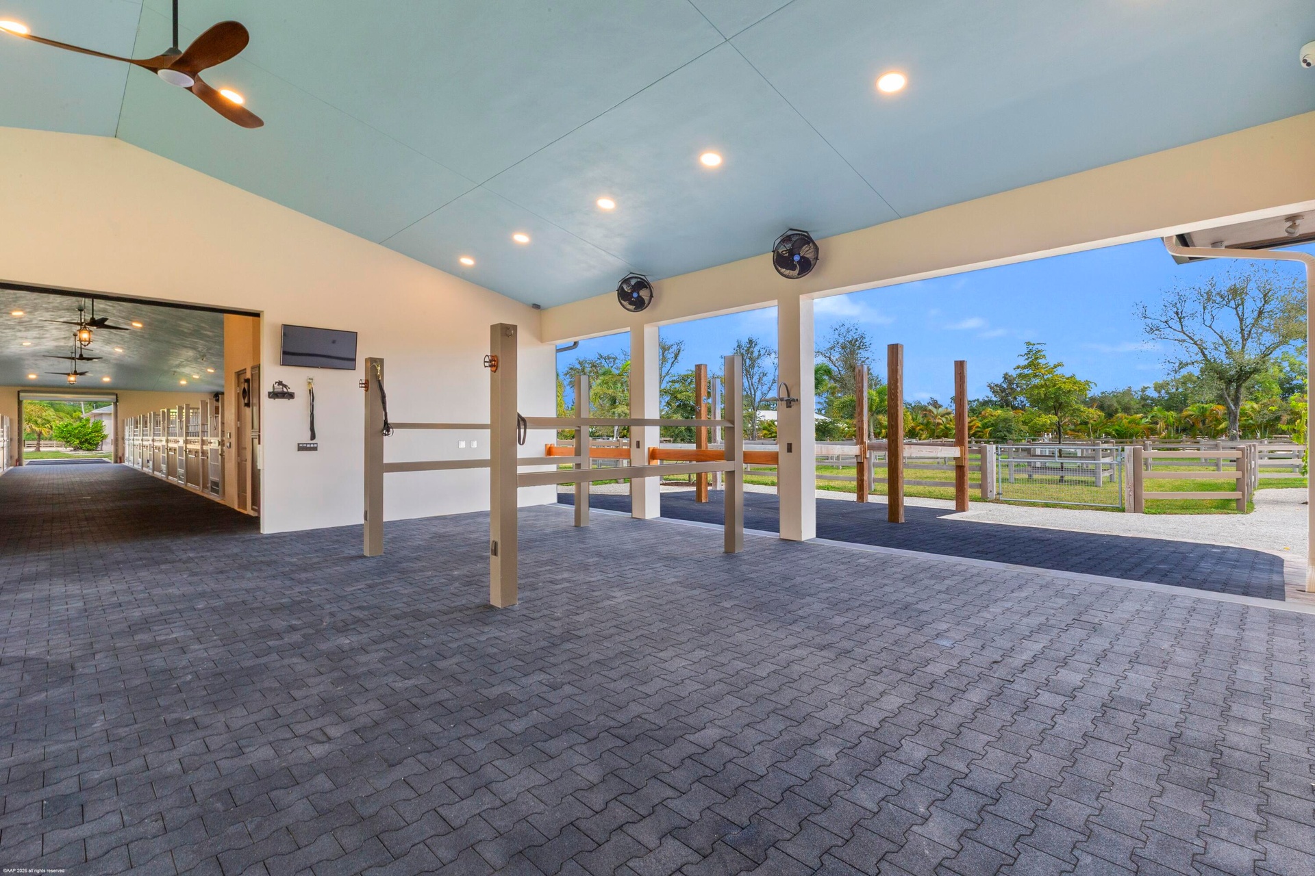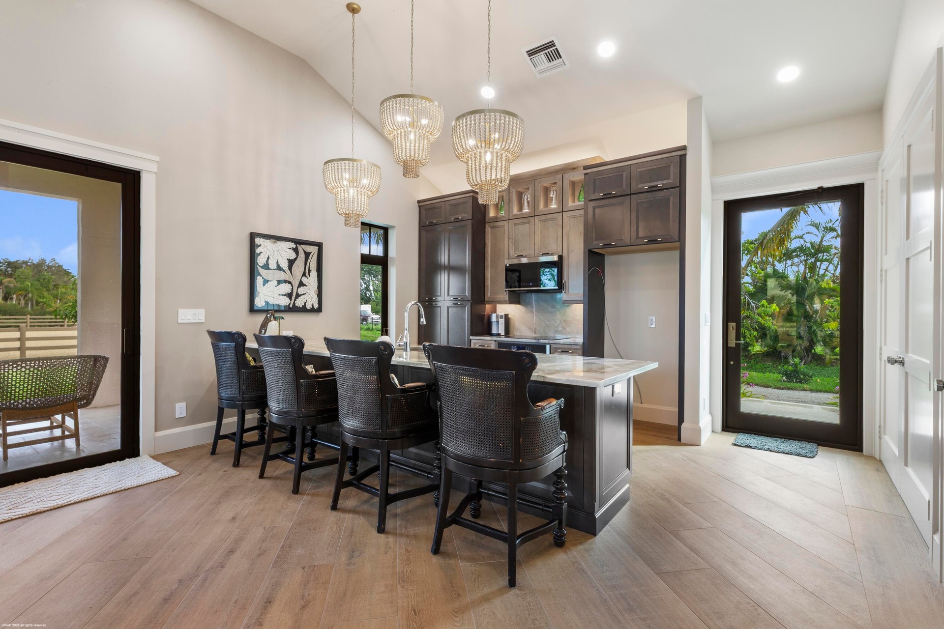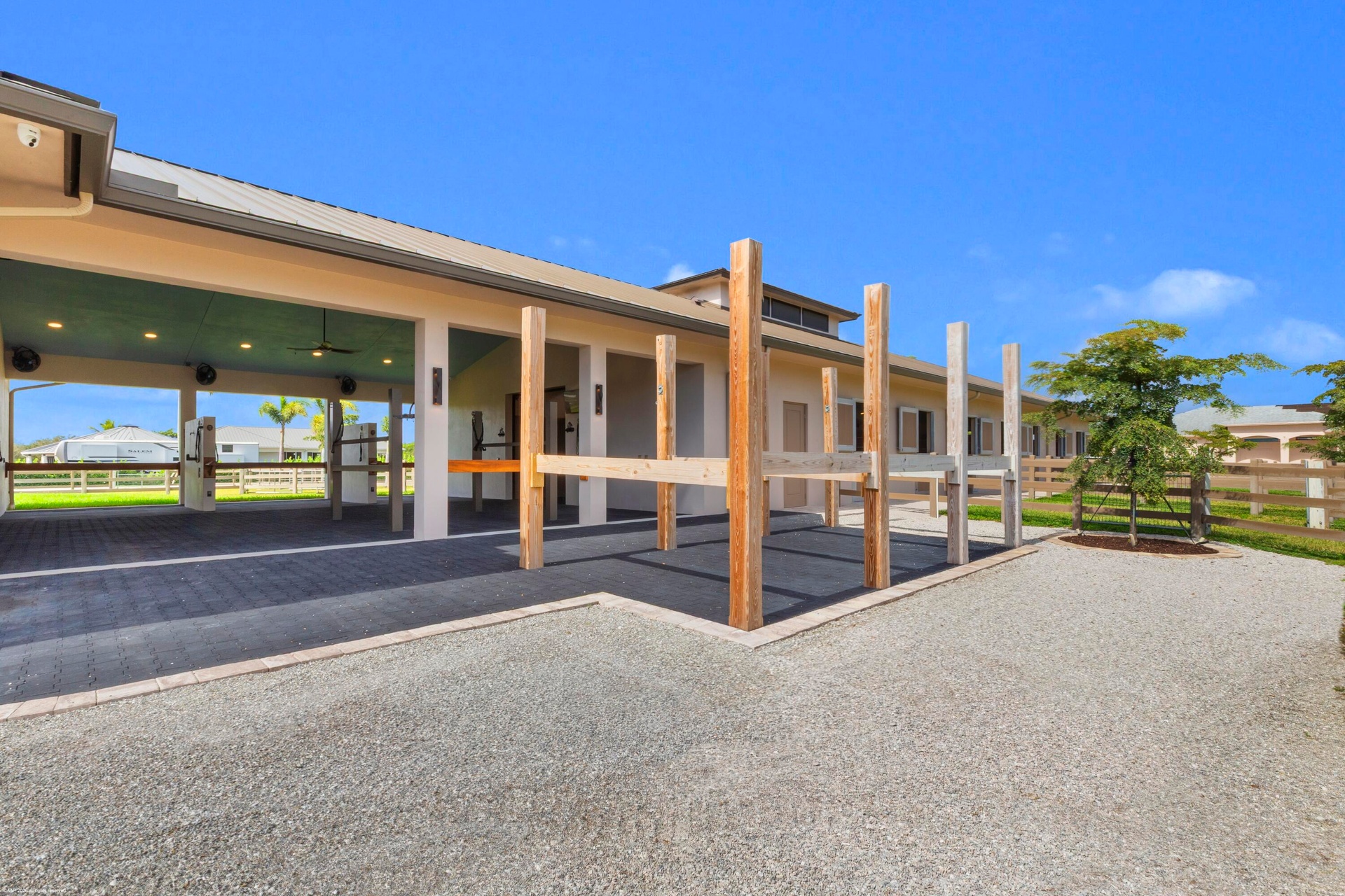 features a comfortable lounge and an adjoining office with 2 tack rooms, laundry and feed room plus oversized hay and shavings storage room. All details were designed for the comfort of your horse and happiness of the rider. Luxury features include Comfort Mats with a stall drainage system, Equi -faucets, brushed aluminum one-of-a kind stall fronts and Dutch doors with no maintenance Polywood. The fabulous new guest cottage features 12ft ceilings and exotic quartzite counters in the custom kitchen overlooking an expansive porch, with views of the riding arena. Professionally interior designed, this house offers luxury and comfort. Two separate gated entrances allow for easy entrance for horse trailers and driveway access. Ideally located within hacking distance to the showgrounds and a short drive to Wellington. The hard work has already been done..... Your dreams are only steps away from being realized.