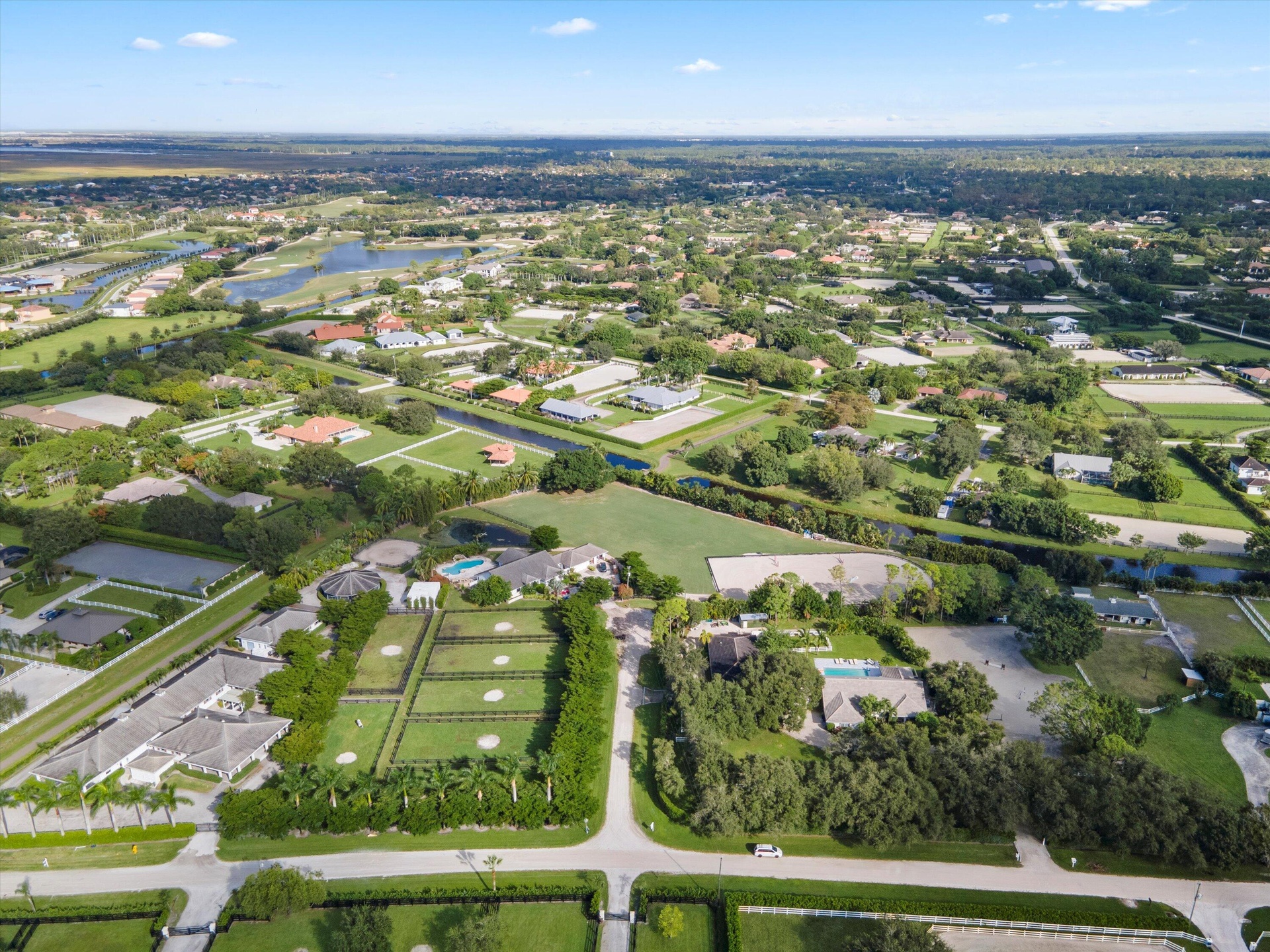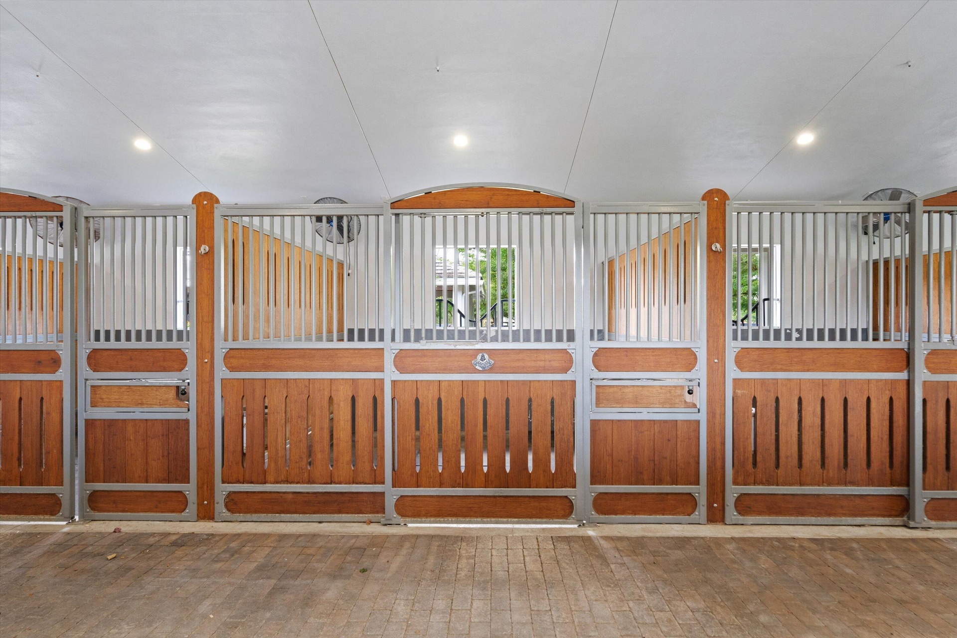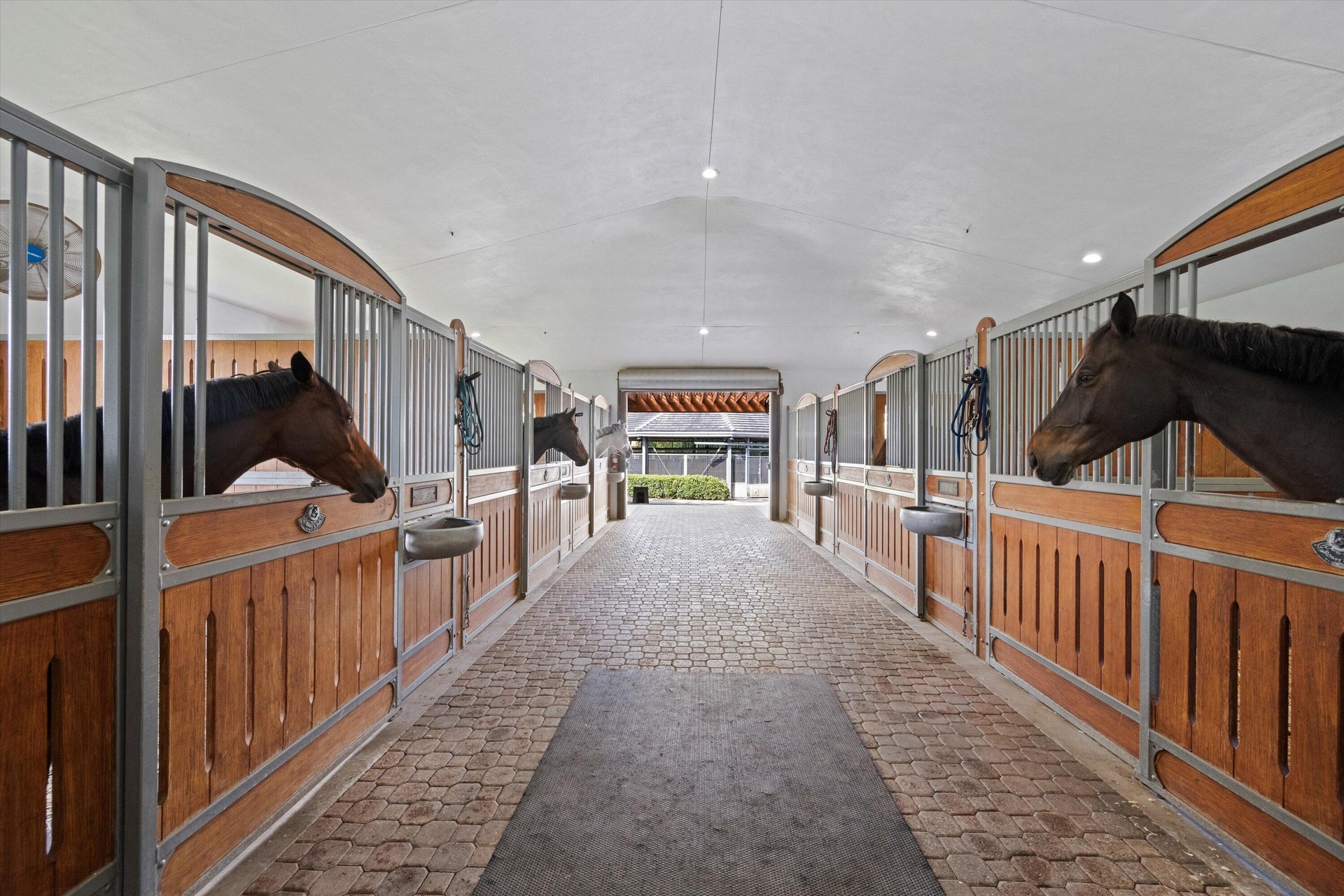 This 6-acre equestrian estate in Saddle Trail, is a top-tier facility for the professional equestrian, featuring 3 premium barns, with 14,10 & 6 stalls respectively. All have extensive wash/groom stalls, feed rooms and tack rooms and feature Rower & Rub stalls. This facility comes with a solid lease income history. The arena is 115' x 215' fiber mix sub-irrigation with an adjacent 1 acre+ turfed grand prix field providing the ultimate in home site training. The 5 bedroom 3.5 bath pool home has a dedicated entrance. In total the property has 4 different entrances and great flow. The owners lounge with bathroom & kitchen provides a large social space. 7 large irrigated paddocks and a Kraft 6 horse covered walker. Property sits on the horse trail and is a true 15 min hack to WEF.