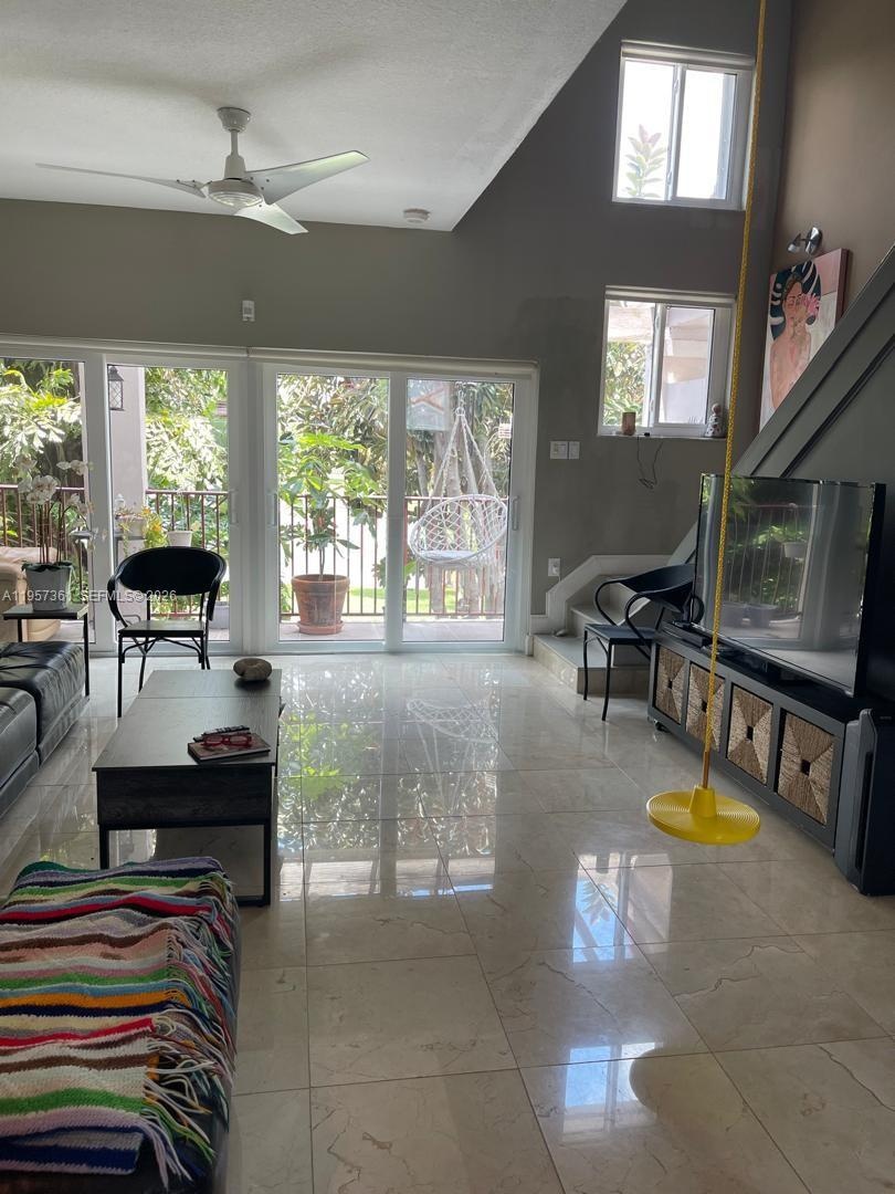 Gorgeous and fully updated 3-bedroom, 2.5-bathroom home with direct lake views, located in the highly desirable Hammocks community. This unique lake view three-story townhouse features a one-car garage and impact windows, marble floors throughout. The first floor offers a spacious primary suite with a sitting area and a beautifully updated primary bathroom featuring dual sinks and a shower. The second floor showcases an open-concept living and dining area, an updated kitchen, and elegant marble floors, along with both front and back balconies overlooking the patio and the lake. The third floor includes two additional bedrooms and a versatile open space ideal for a studio, office, or den. Enjoy a good-sized fenced patio with a porch and terrace, ideal for outdoor living ********ASSOCIATION FEES INCLUDES INSURANCE AND THE AMOUNT OF PROPERTY TAXES INCLUDES A LOAN OF YGREEN FOR IMPACT WINDOWS IN THE AMOUNT $2504.66 EVERY YEARS SO THE REAL PROPERTY TAXES IS AROUND $4,274.*******The Hammocks community offers resort-style amenities, including a large lake with a 5-mile walking and biking trail, small beach areas, swimming pools, tennis courts, and a gym. A must-see home—you will absolutely love it!