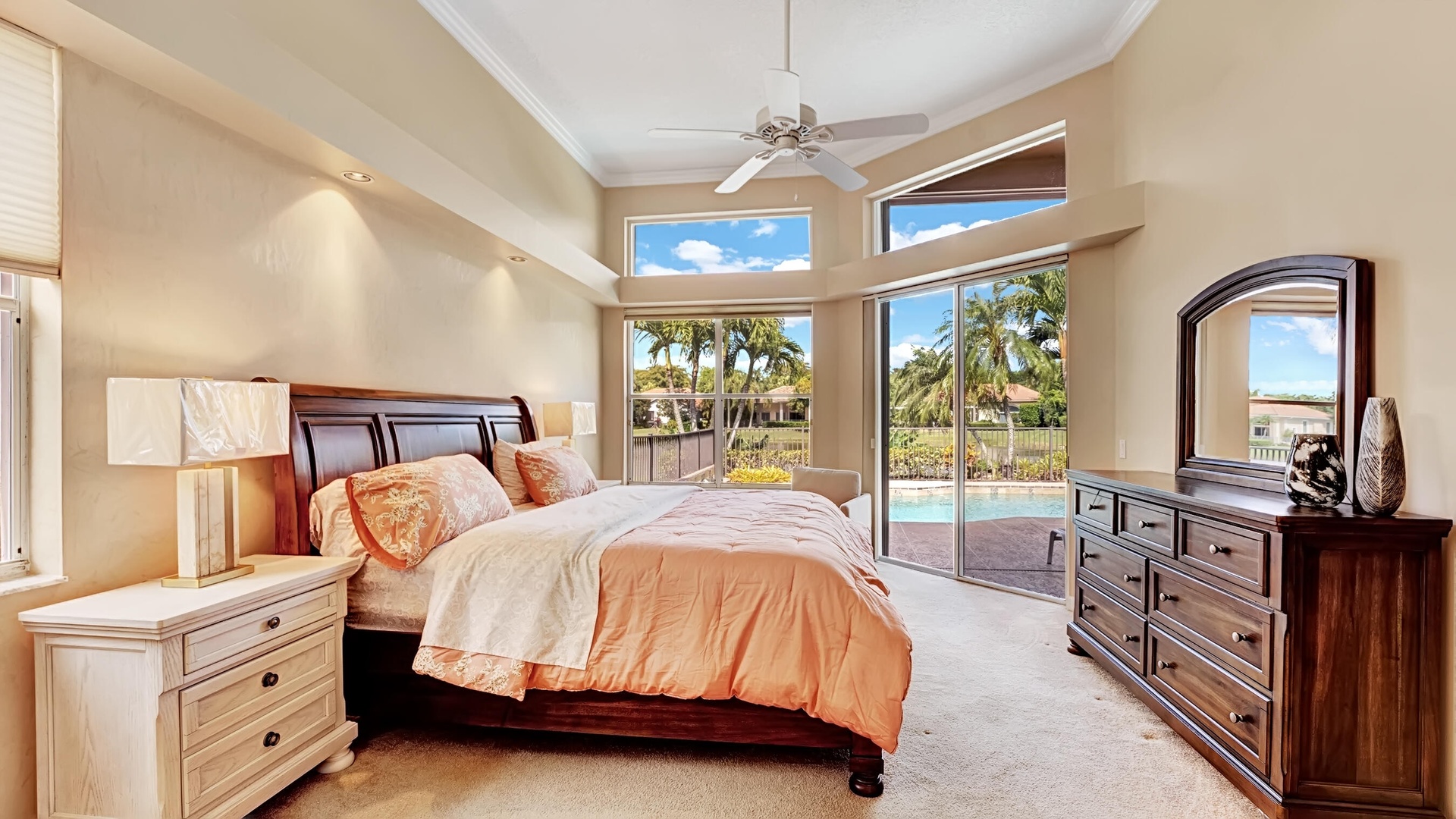 Rarely available for rent in The Island is this stunning home in PGA National! Surrounded by preserves, serene lakes, and world-class golf courses, this gem is perfectly situated. As you step inside, you're greeted by breathtaking views of the pool and lake, vaulted ceilings, and an inviting open floor plan. The master suite located on one side of the home, features large windows and sliding glass doors that open to the pool and patio, offering picturesque lake views. The en-suite bathroom has been beautifully renovated with a spacious walk-in shower, dual vanities, and a custom oversized linen closet for ample storage. On the opposite side of the house, the second and third bedrooms share a Jack and Jill bathroom. The versatile 4th bedroom overlooks the pool and opens to the living room. The third full bathroom conveniently doubles as a guest and cabana bath for the pool area. Enjoy stunning pool and lake views from every living area in this meticulously maintained home. Conveniently located near shopping, dining, medical facilities, sports fields, green markets, coffee shops, and endless activities throughout Palm Beach County. Don't miss out on this beautiful, well-maintained home that offers the perfect blend of luxury, comfort, and convenience!