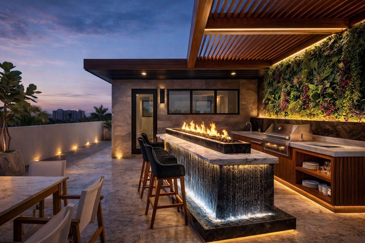 - Oversized Island Seating 8+ with Seamless Indoor–Outdoor Alignment.