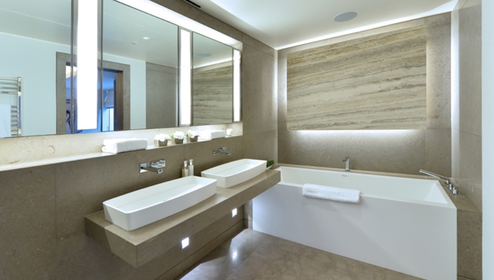 The two luxurious bathrooms are crafted from Galina limestone and silver travertine, evoking a serene and indulgent atmosphere. Both bedrooms are generously proportioned, and the apartment benefits from two private terraces, providing rare and highly desirable outdoor space.