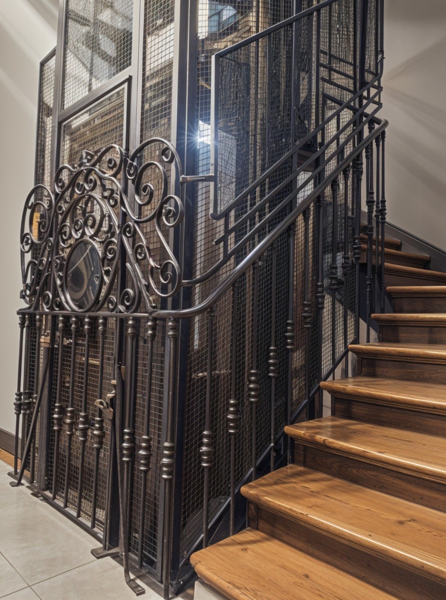 The designer kitchen includes a breakfast area and a discreet service entrance with freight elevator and staff quarters, ensuring both comfort and functionality.