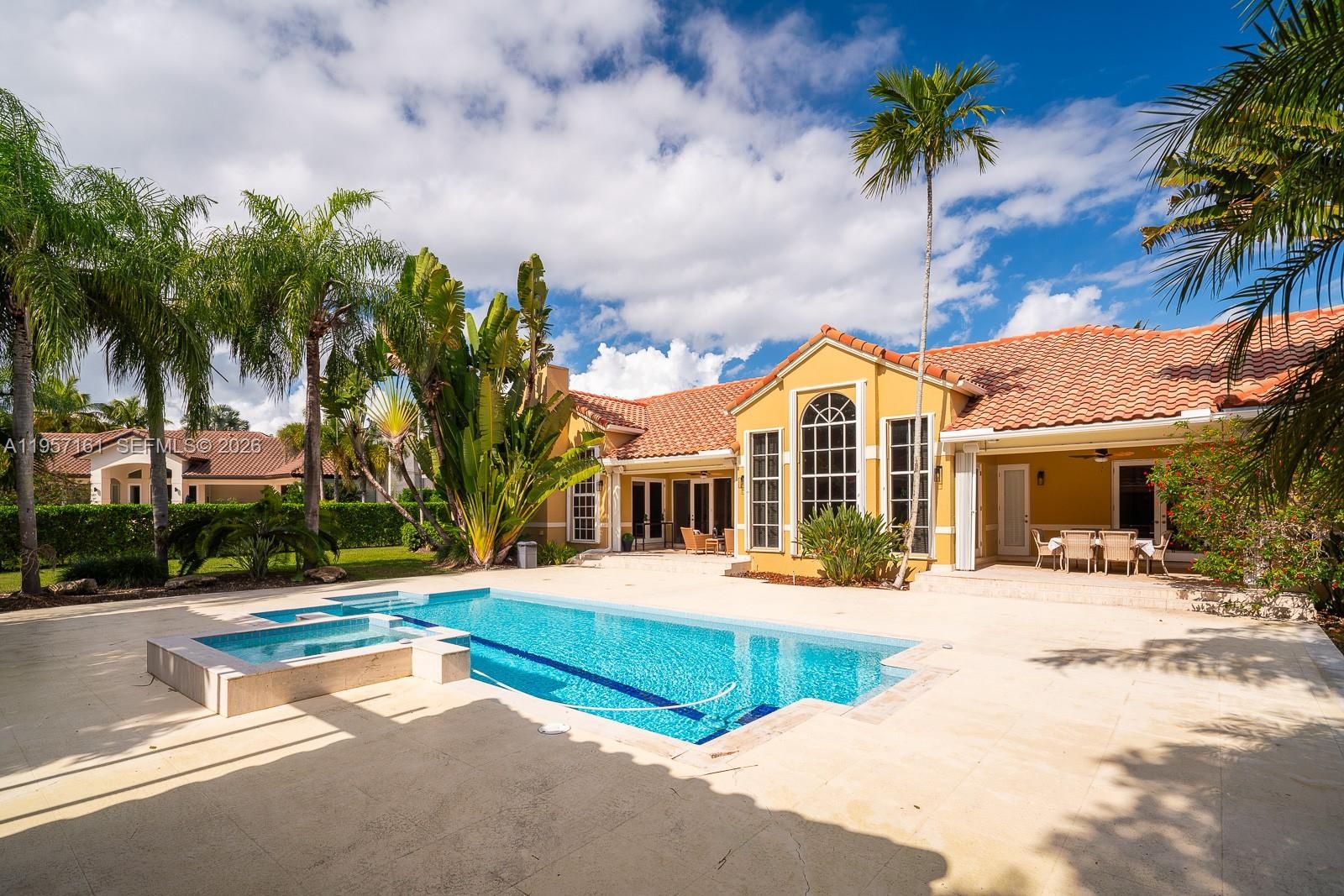 Step into timeless elegance in this Tuscan inspired estate, perfectly set on a lush 31, 888 SF lot with a heated saline swimming pool designed for year round enjoyment.