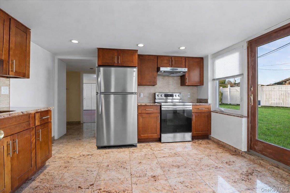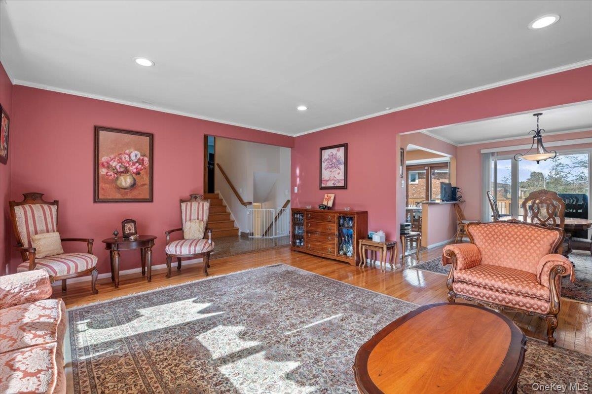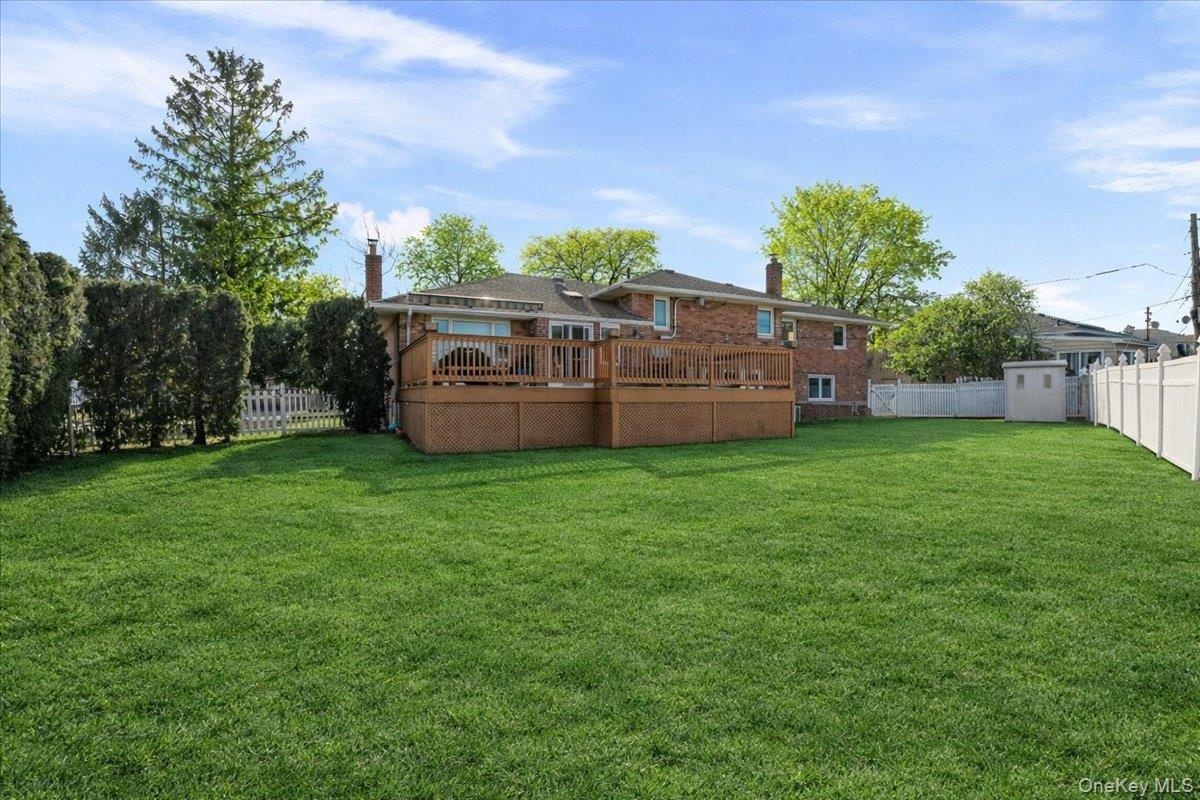 Located in the Salisbury Estates section of Westbury, this expansive and thoughtfully designed residence offers a substantial layout across multiple levels, featuring six bedrooms and four full bathrooms. The main level showcases hardwood flooring and a well-balanced flow between rooms, anchored by an eat-in kitchen with custom cabinetry, granite countertops, stainless steel appliances, and generous counter space, opening seamlessly to the surrounding dining and living areas. Granite is featured throughout the home, including the kitchen and foyer, adding continuity to the interior spaces, while sliding doors lead to the rear deck and yard for effortless indoor-outdoor living. The upper level includes well-proportioned bedrooms, highlighted by a primary bedroom with an updated full bathroom, along with a spacious additional living area that provides separation and versatility for everyday living or relaxation. The lower level offers an apartment-style layout with a separate entrance, multiple rooms, and a full bathroom, creating flexibility for extended living or guest accommodations with proper permits; doorways throughout this level are wide, providing ease of access. A finished basement adds a spacious sitting area, utility space, and a dedicated room ideal for a home office, complemented by a two-car garage and an oversized property with convenient access to shopping, major roadways, and local amenities.