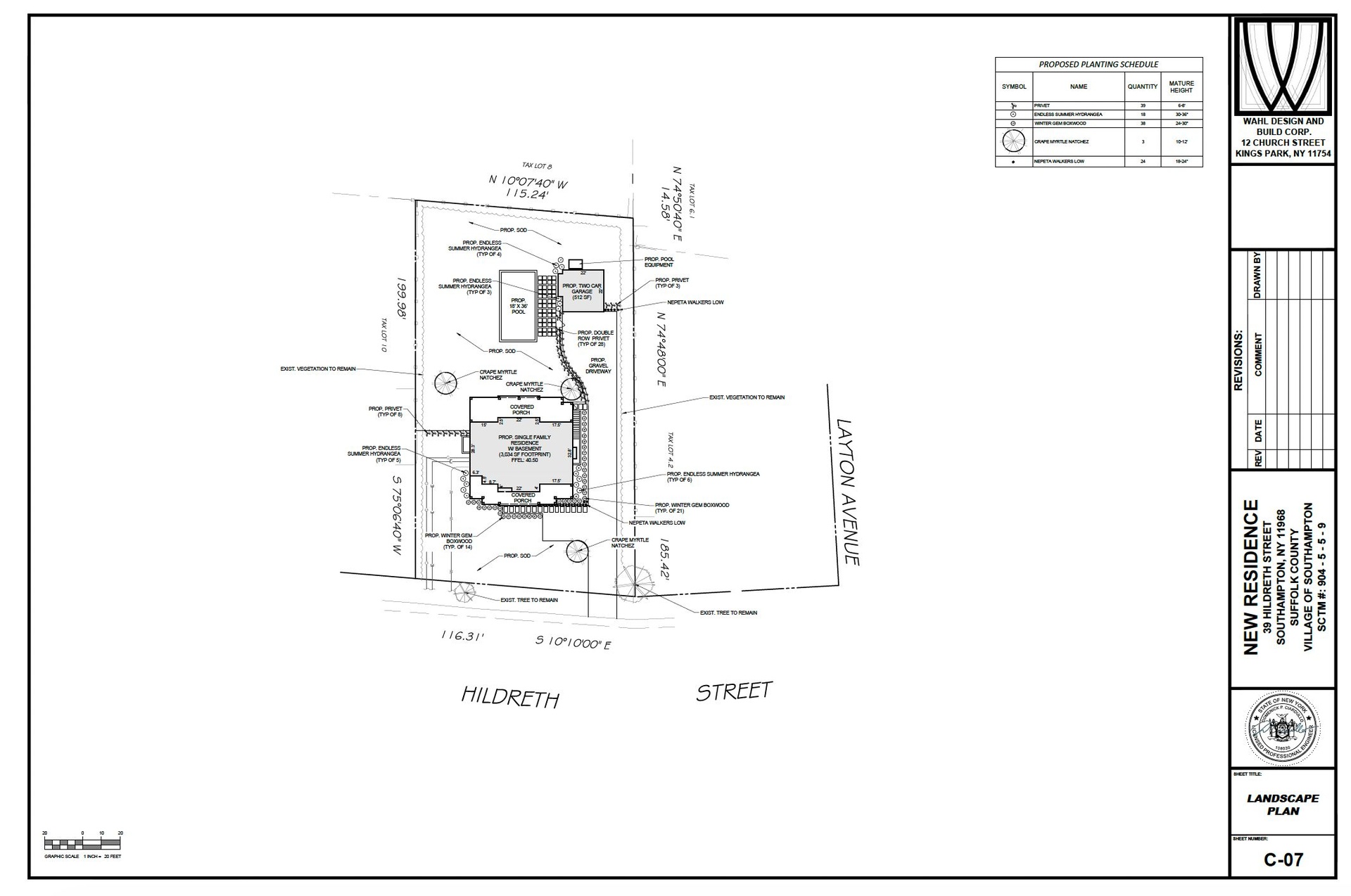 Outdoors, the approved site plan showcases a resort-style setting with an 18’ x 36’ heated pool, lush lawns, gravel drive, and curated plantings that provide both beauty and privacy. Every element has been designed to maximize the property’s Village setting while maintaining a sense of retreat.
