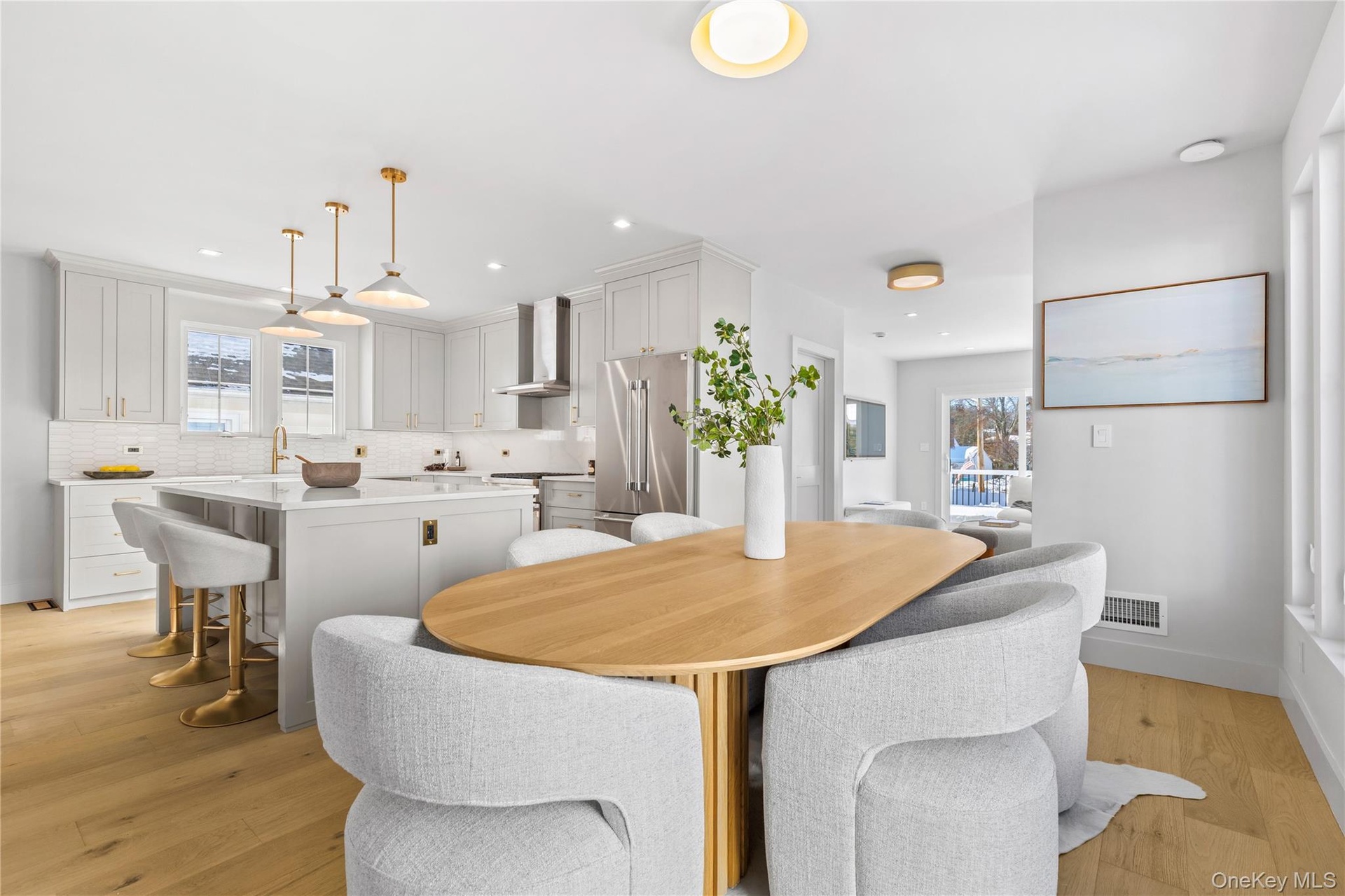 Welcome to this expanded and redesigned 4-bedroom, 3.5-bath home in Port Chester, masterfully completed by an experienced NYC developer with a focus on quality, function, and modern luxury. The home features a thoughtfully designed open layout with 7” wide plank hardwood flooring throughout, creating a seamless flow between living, dining, and entertaining spaces. At the heart of the home is a striking chef’s kitchen outfitted with a full Thermador appliance package, custom cabinetry, and sleek countertops—perfect for both everyday living and hosting. A desirable first-floor bedroom with a private ensuite bath offers flexible living options, ideal for guests, extended family, or a home office. Natural light fills the home through Pella windows and doors, while sliding doors lead to a level and fully enclosed backyard designed for easy outdoor living. Enjoy entertaining on the composite deck, complemented by landscape lighting and a full sprinkler system for low-maintenance living. Upstairs, the spacious primary suite offers a spa-like bath and generous closet space, while additional bedrooms are well-proportioned and thoughtfully finished. All 3.5 bathrooms have been completely renovated with designer tile, modern fixtures, and refined details. An exceptional opportunity to own a thoughtfully designed home offering sophisticated, city-level craftsmanship in Westchester!